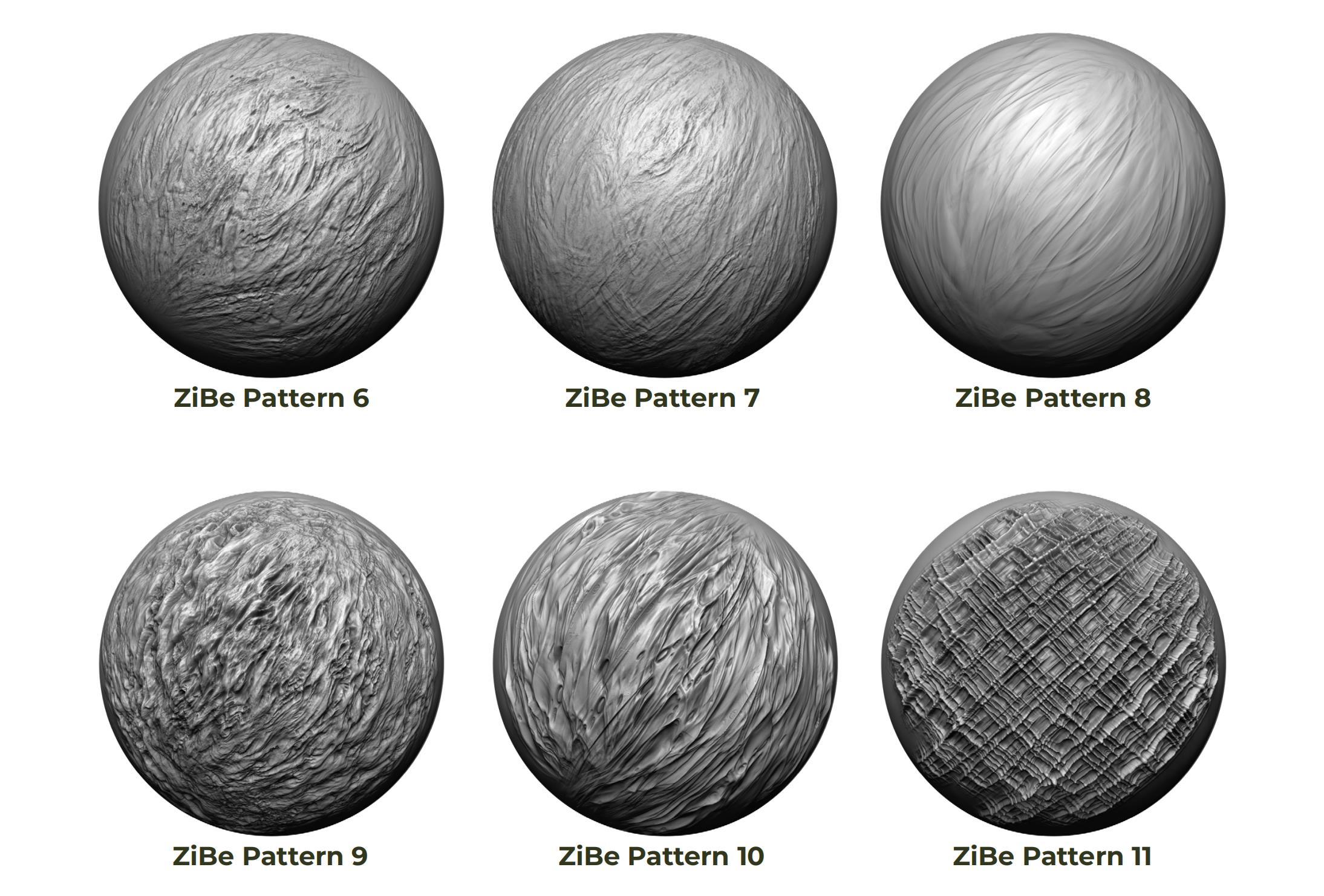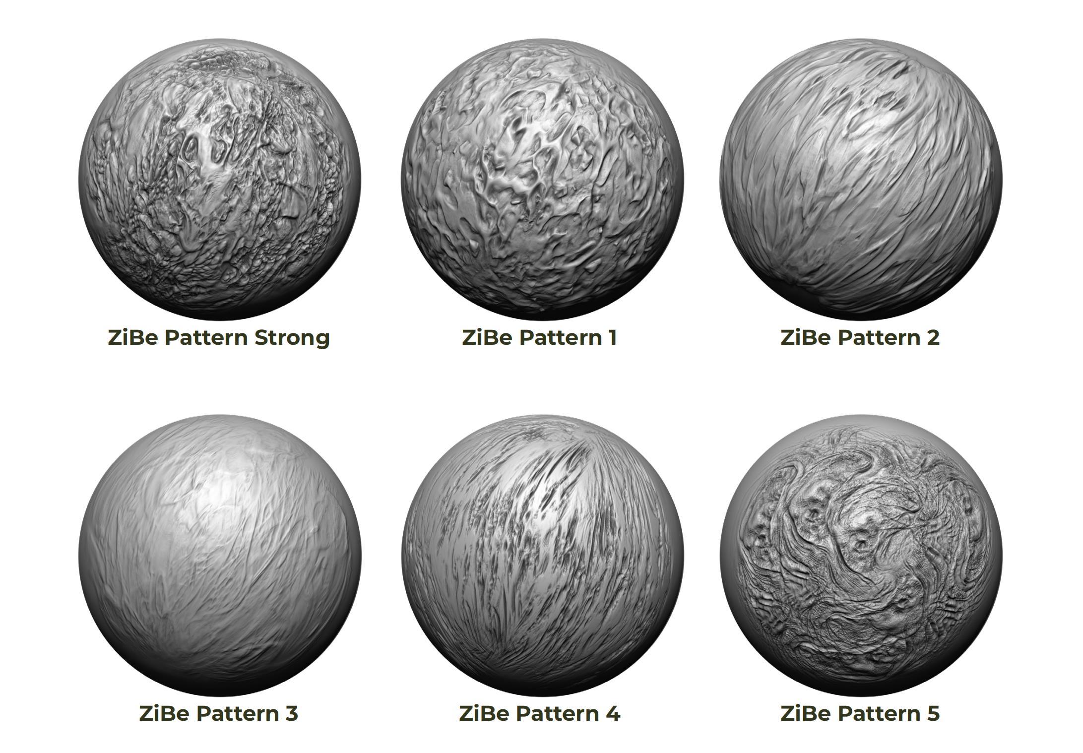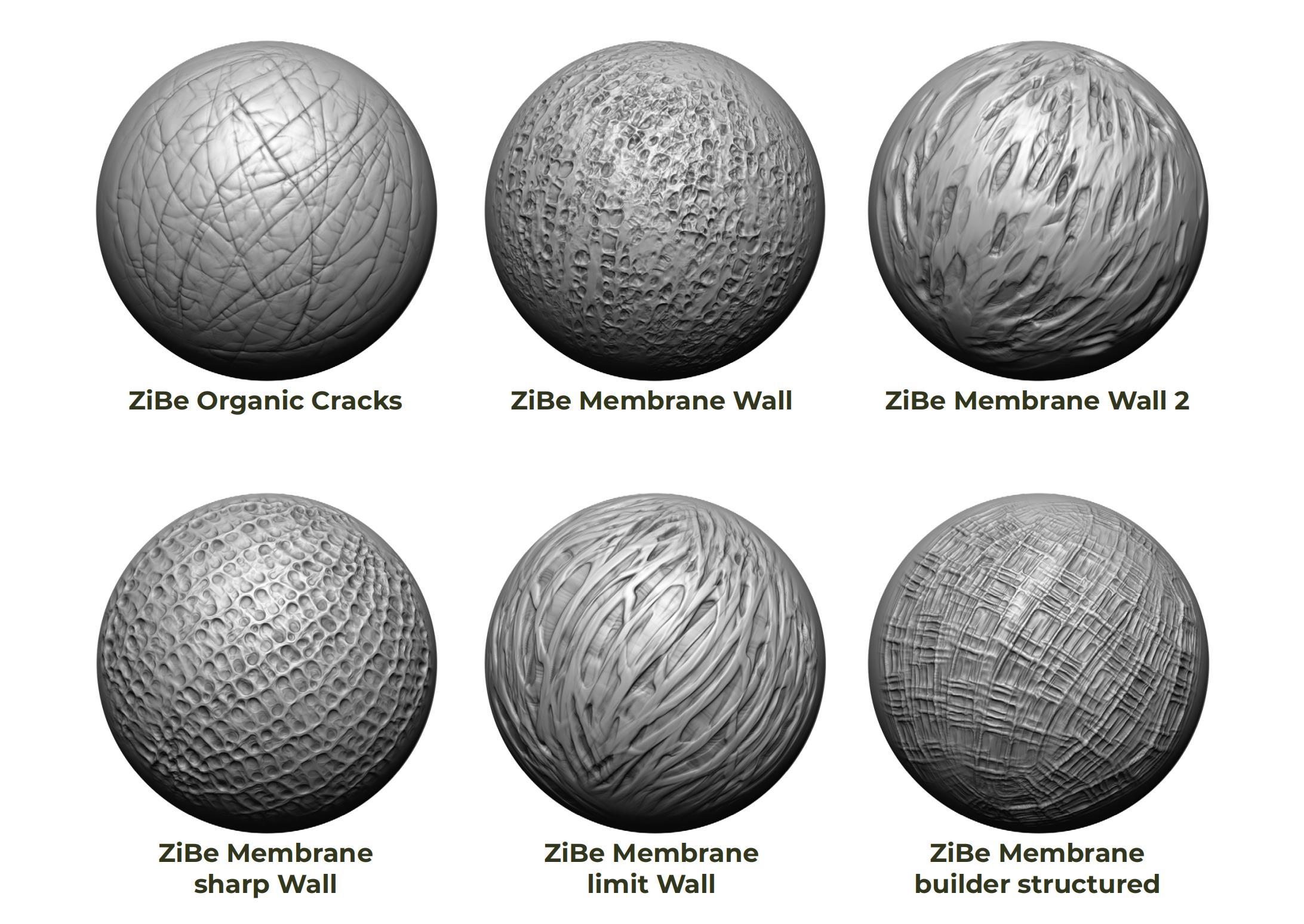 - 4. 奖励材料:此包还包括 35 个 ZBrush 表面噪声预设,可为您的网格添加更多细节,以及 11 个自定义 MatCaps,它们与笔刷效果配合得很好