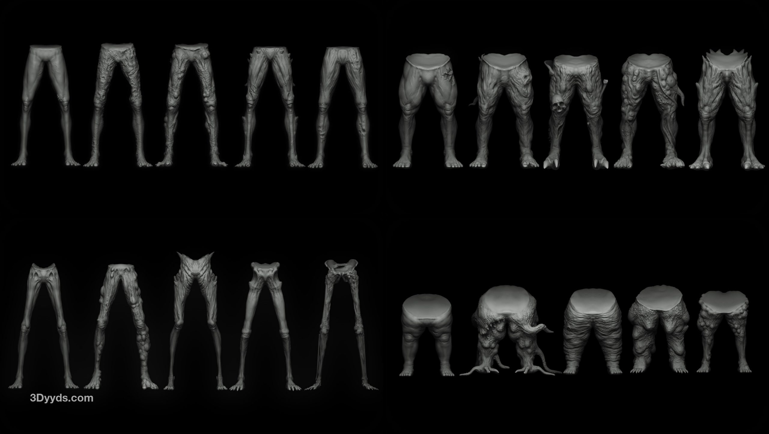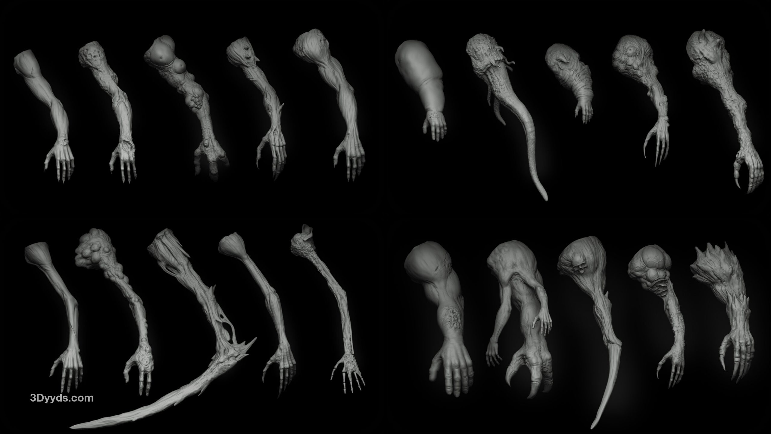 - 4 个 Zbrush 主文件,包括上述所有部分,组织在文件夹中。