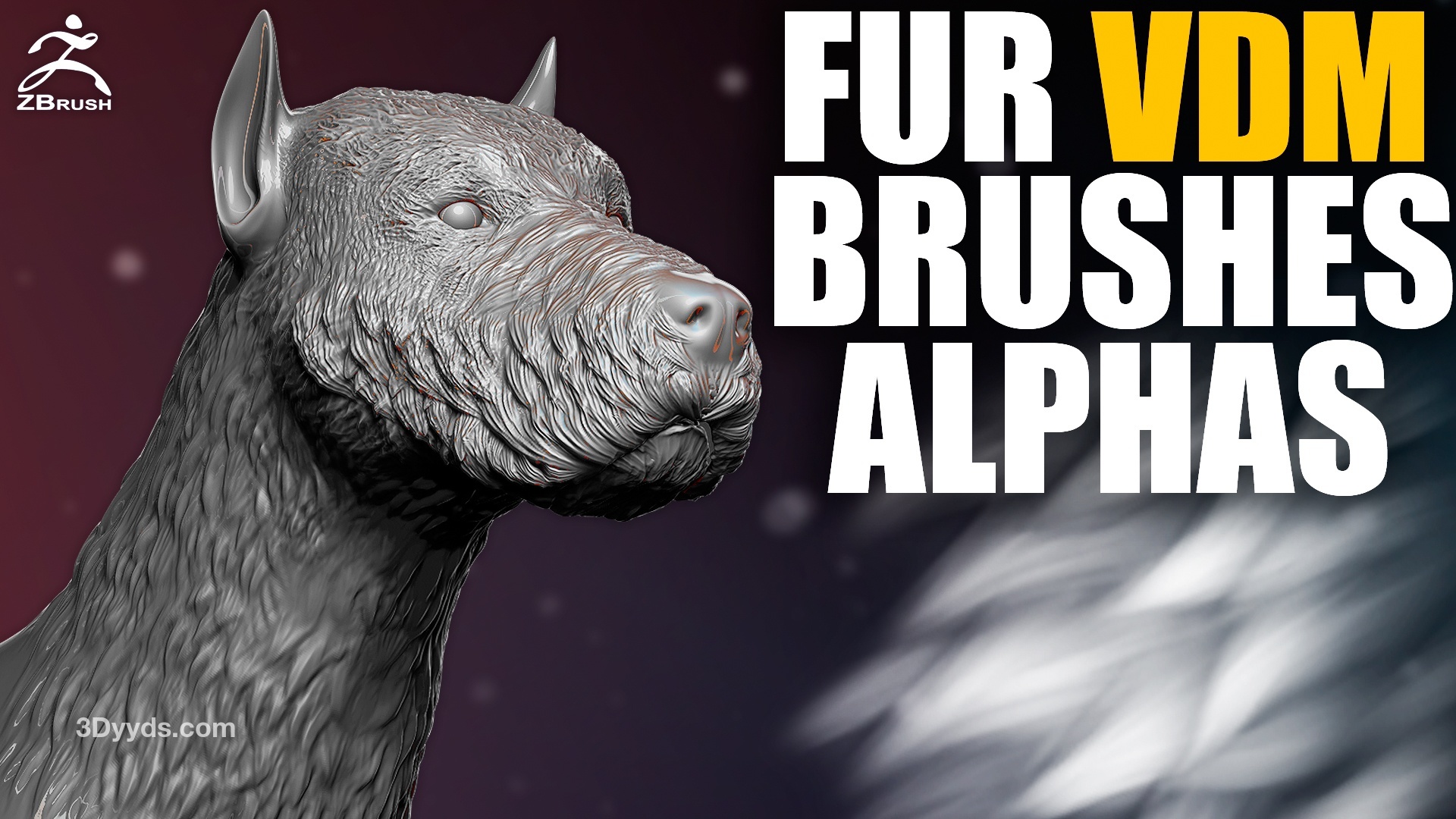 zbrush320-14款动物狗狼犬类生物毛皮细节VDM笔刷