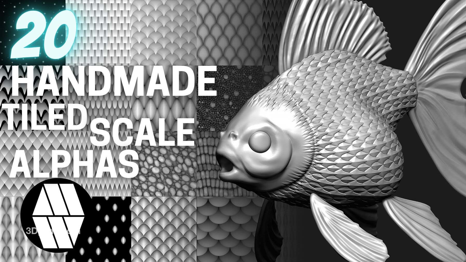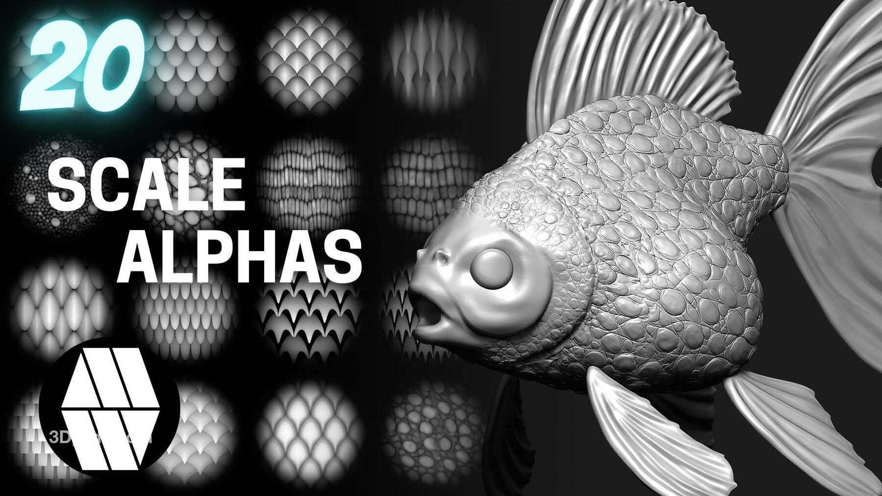 20 个自定义制作的鳞片Alpha 和 20 个 Alpha 图章