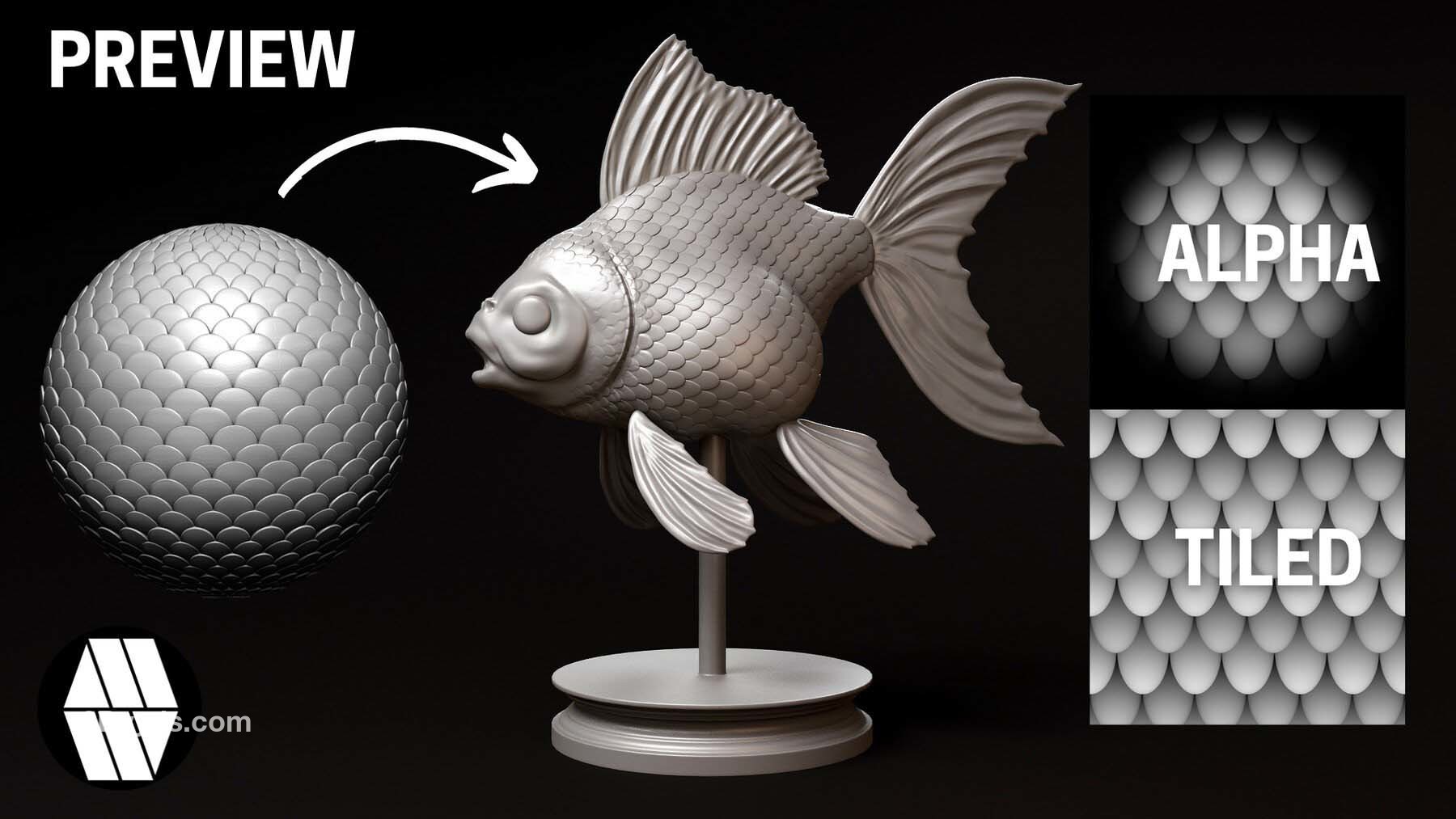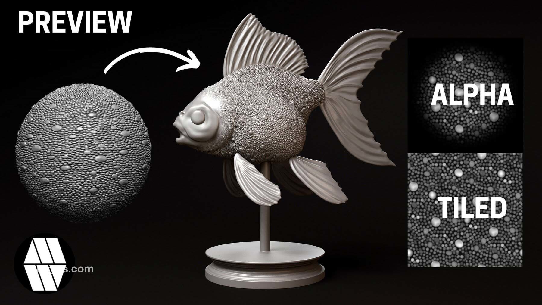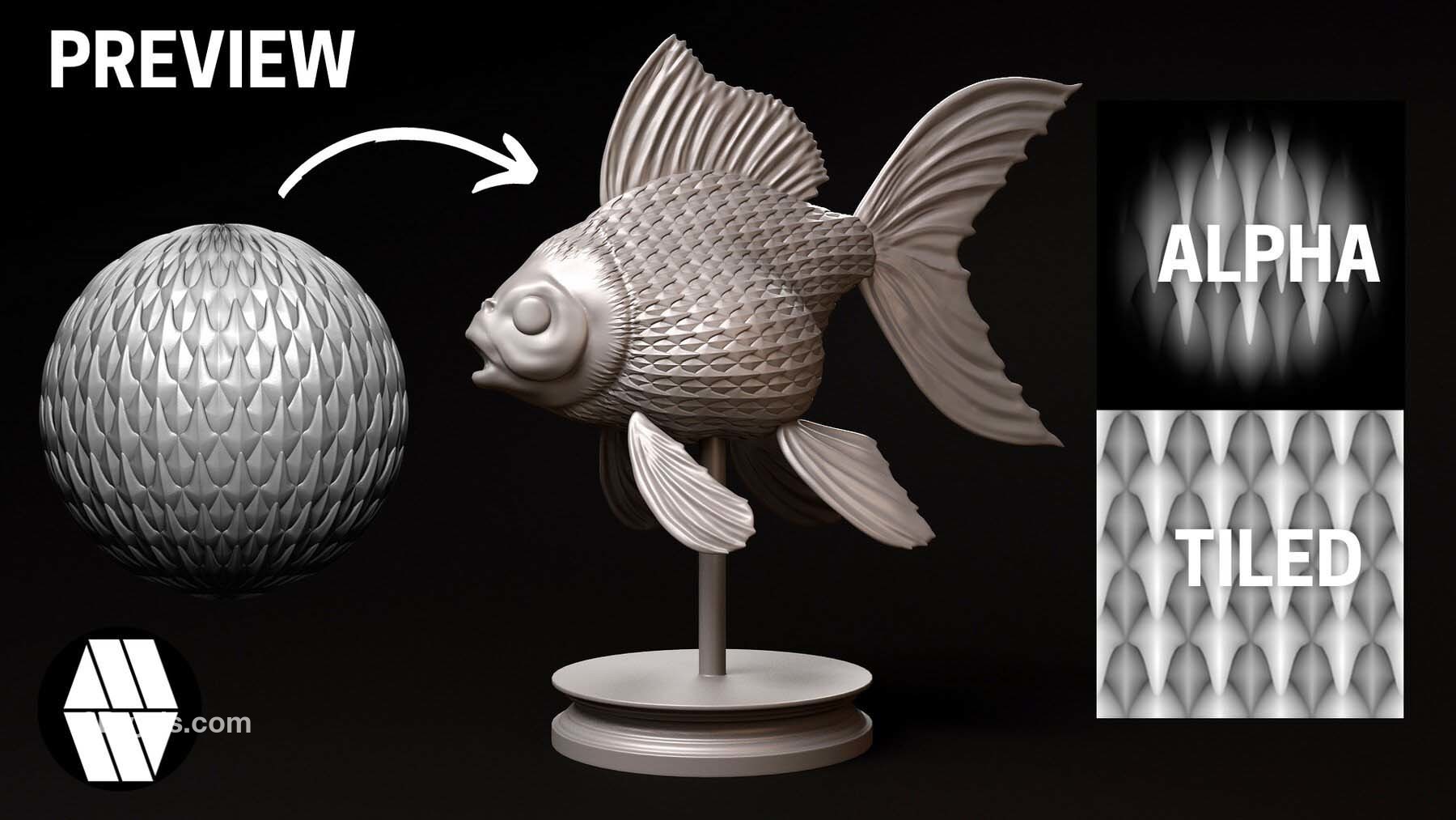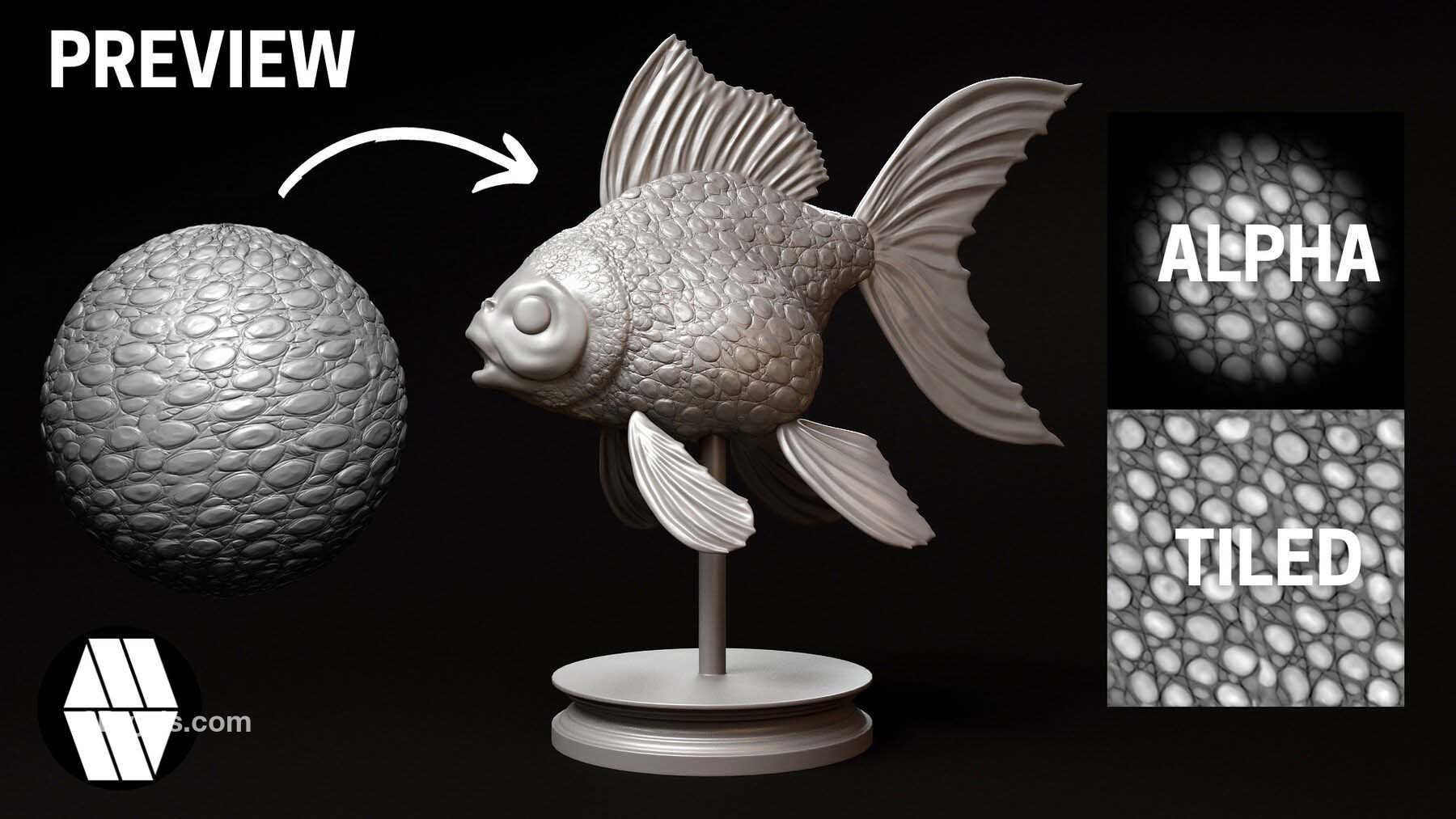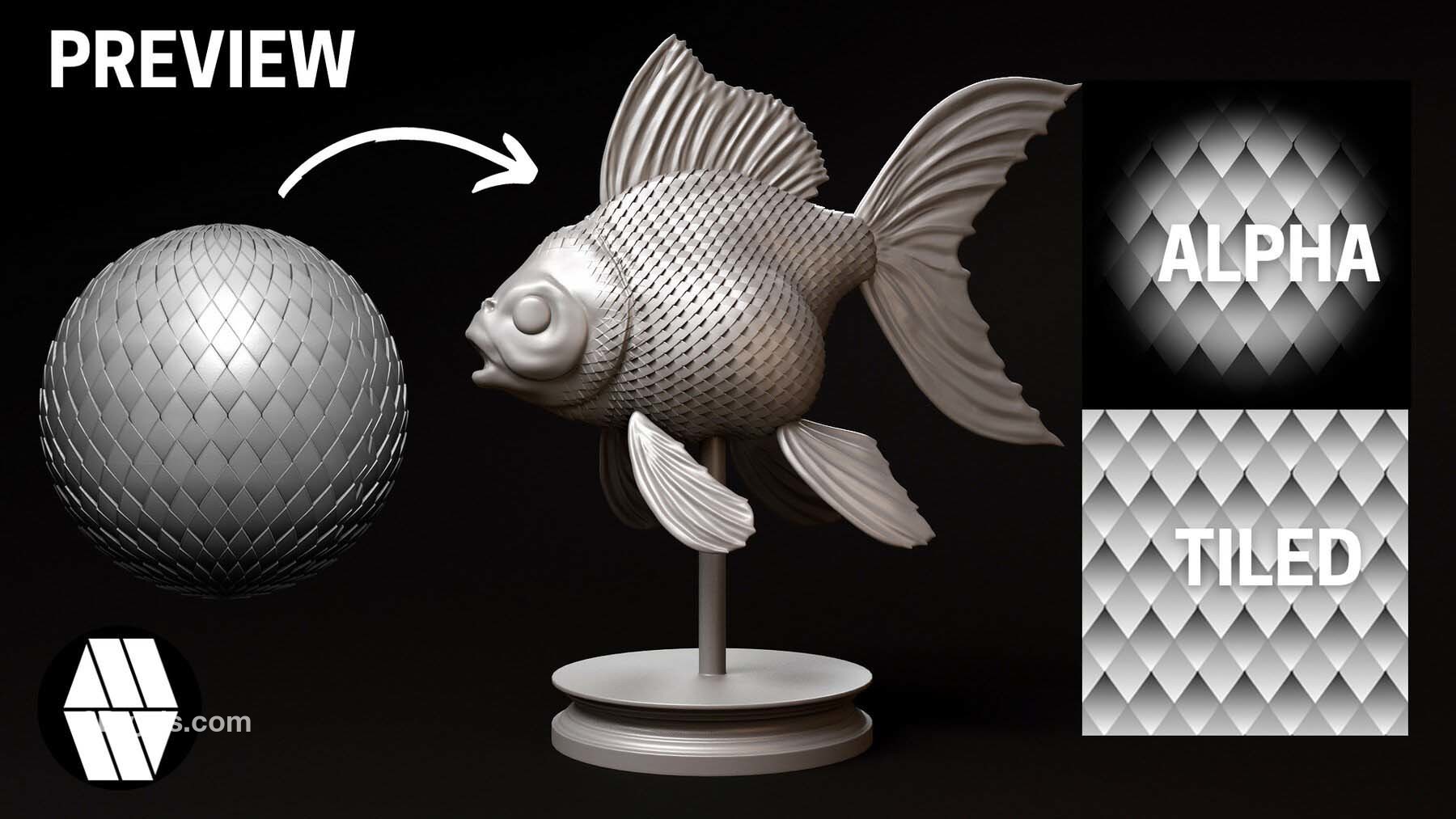 zbrush333鱼鳞龙鳞鳄鱼蜥蜴金鱼生物皮肤鳞片Alpha笔刷无缝JPG纹理贴图