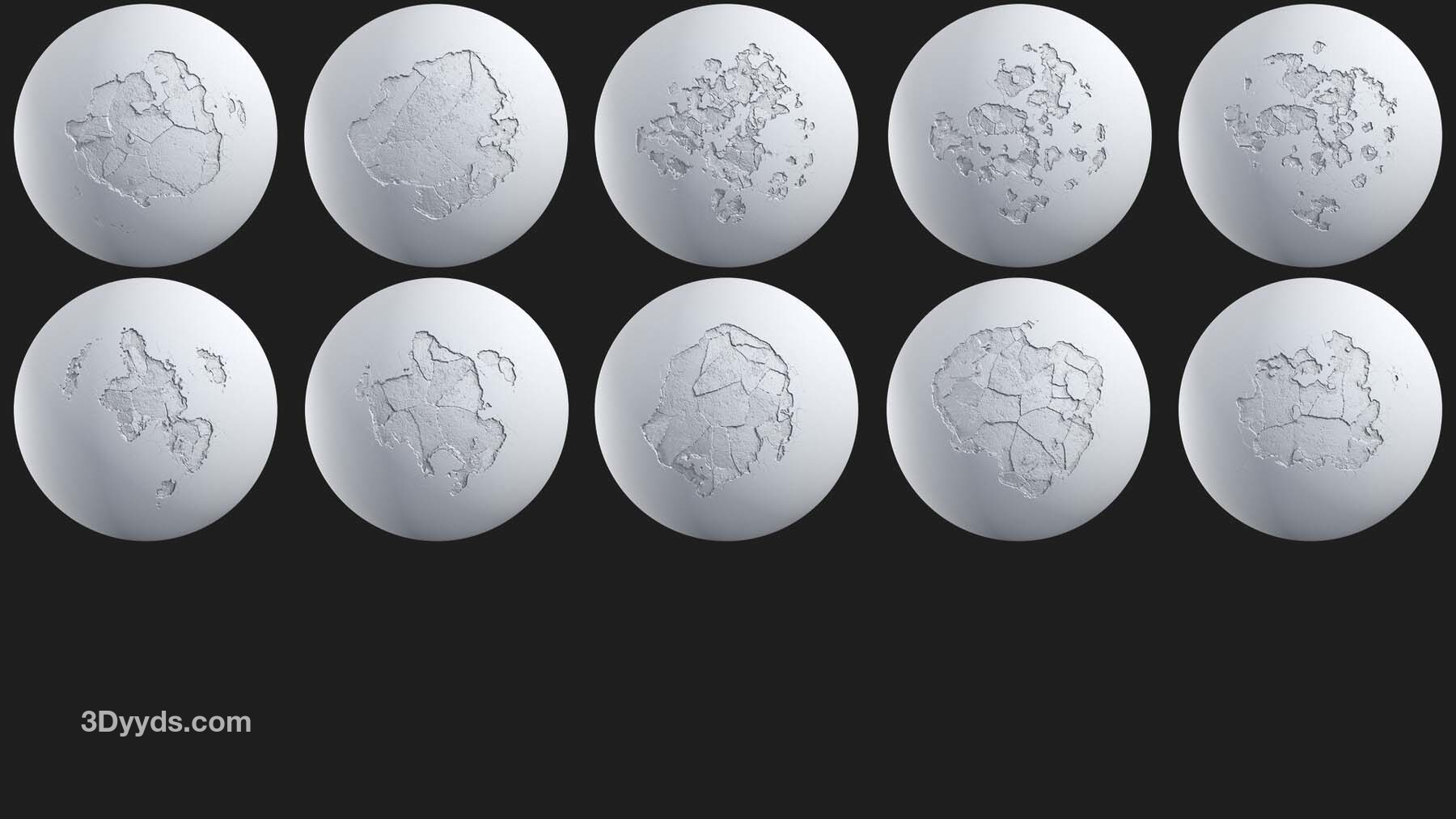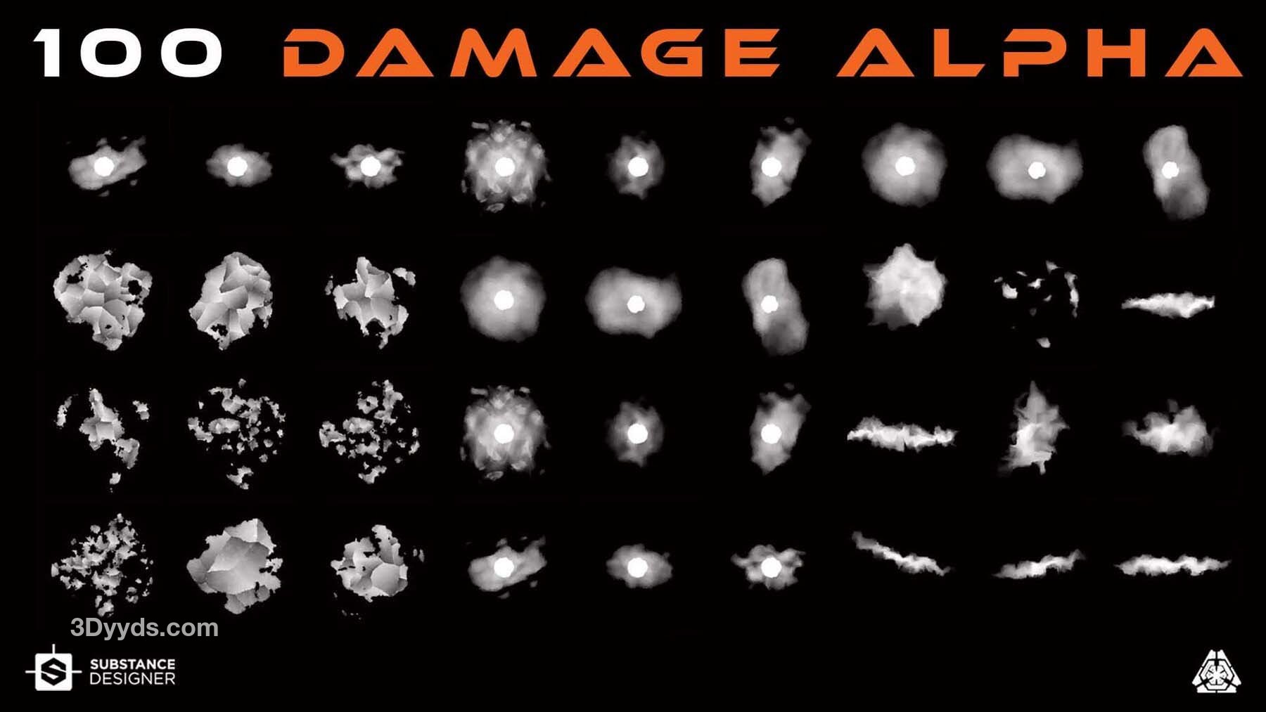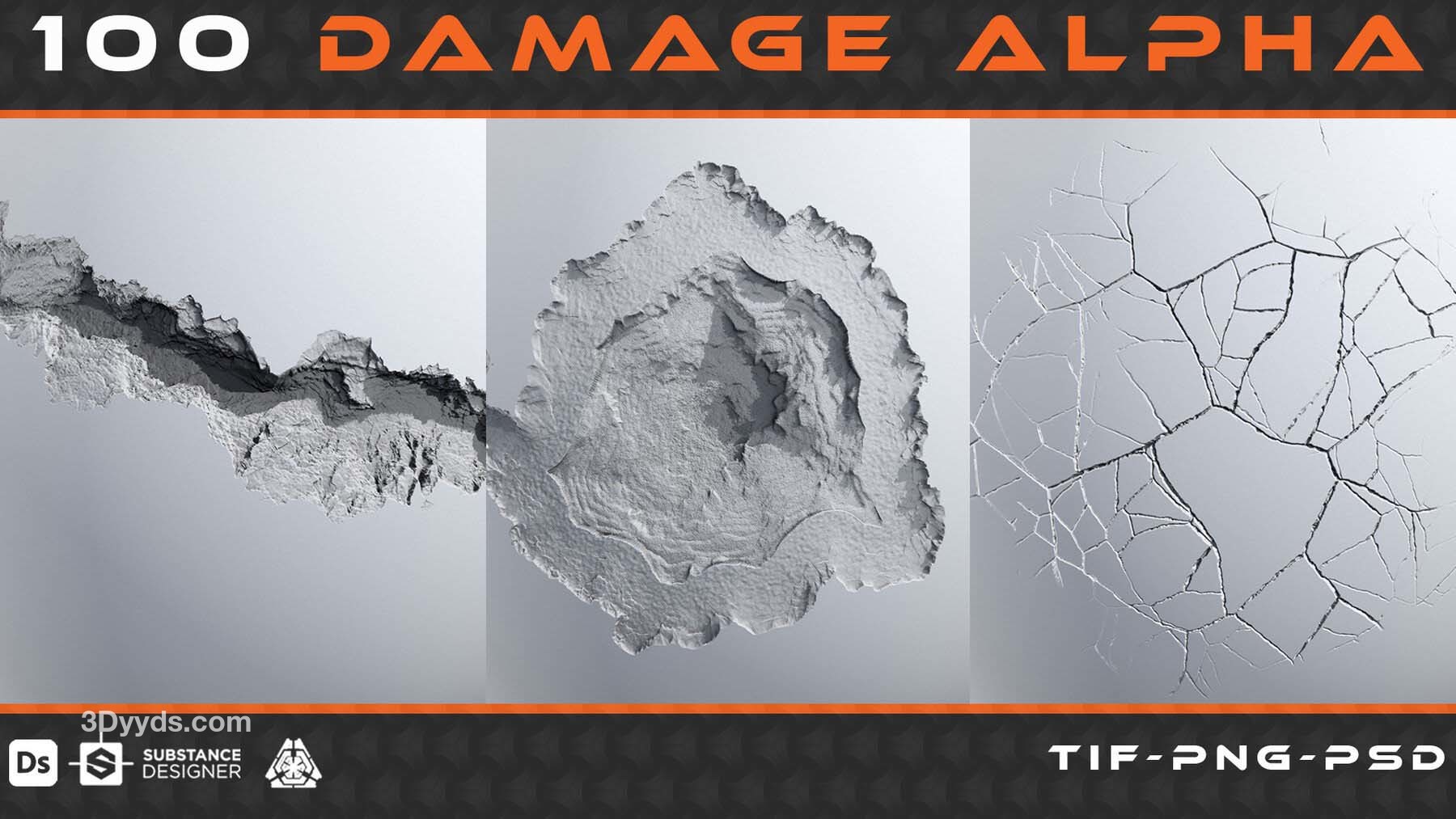 包含 100 个高质量的冲击损伤 Alpha 高度图