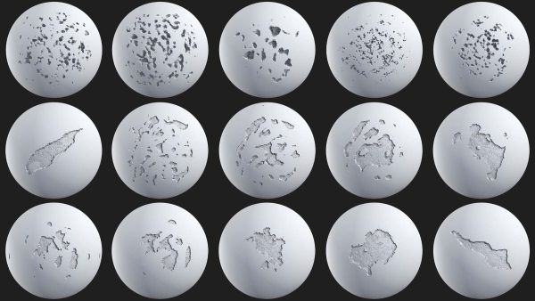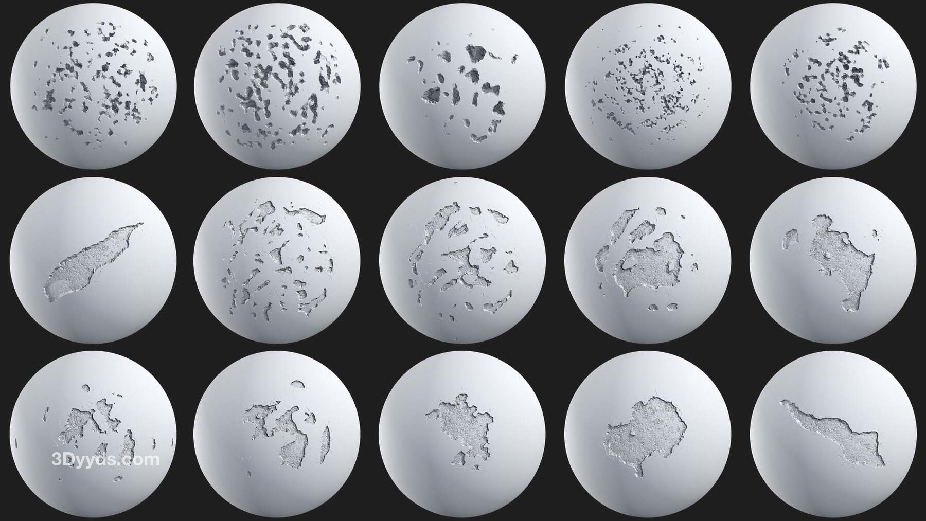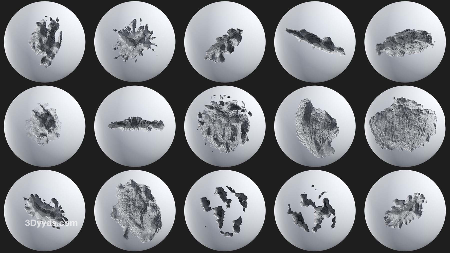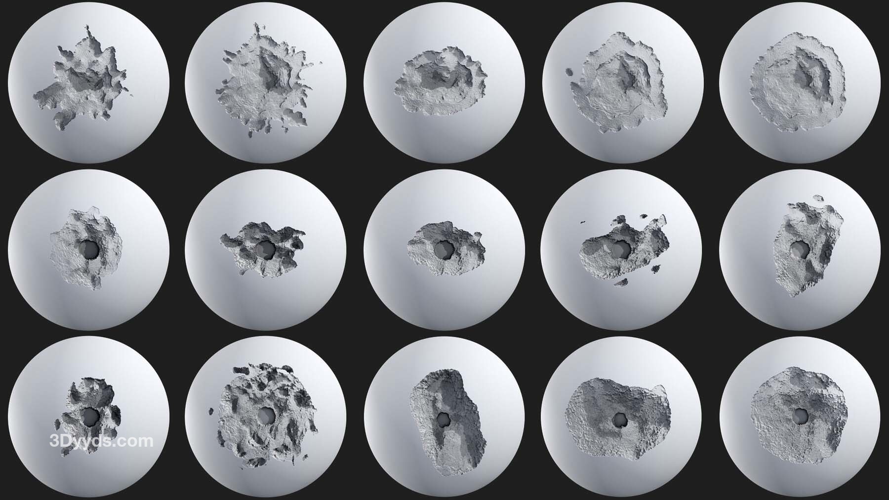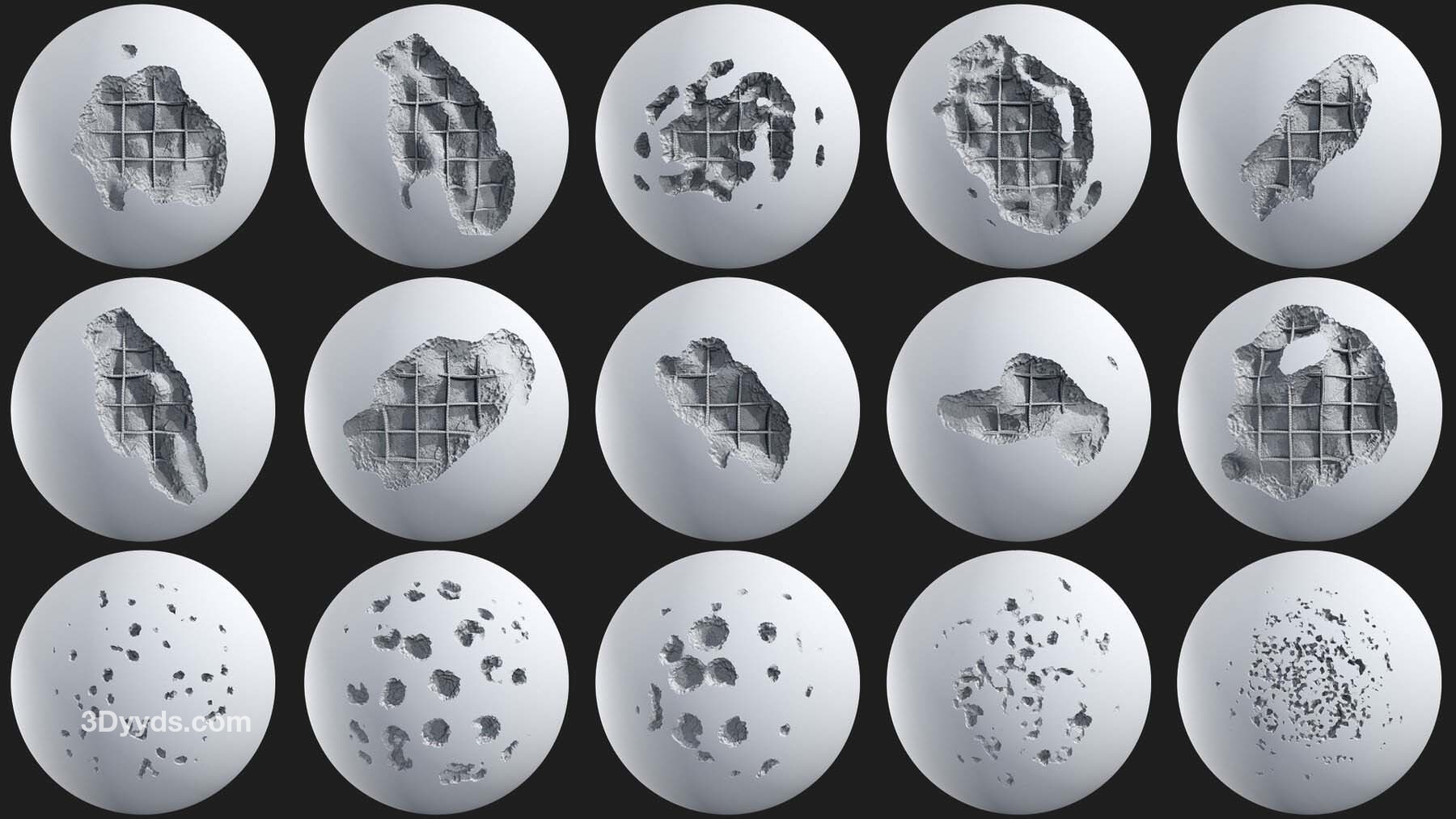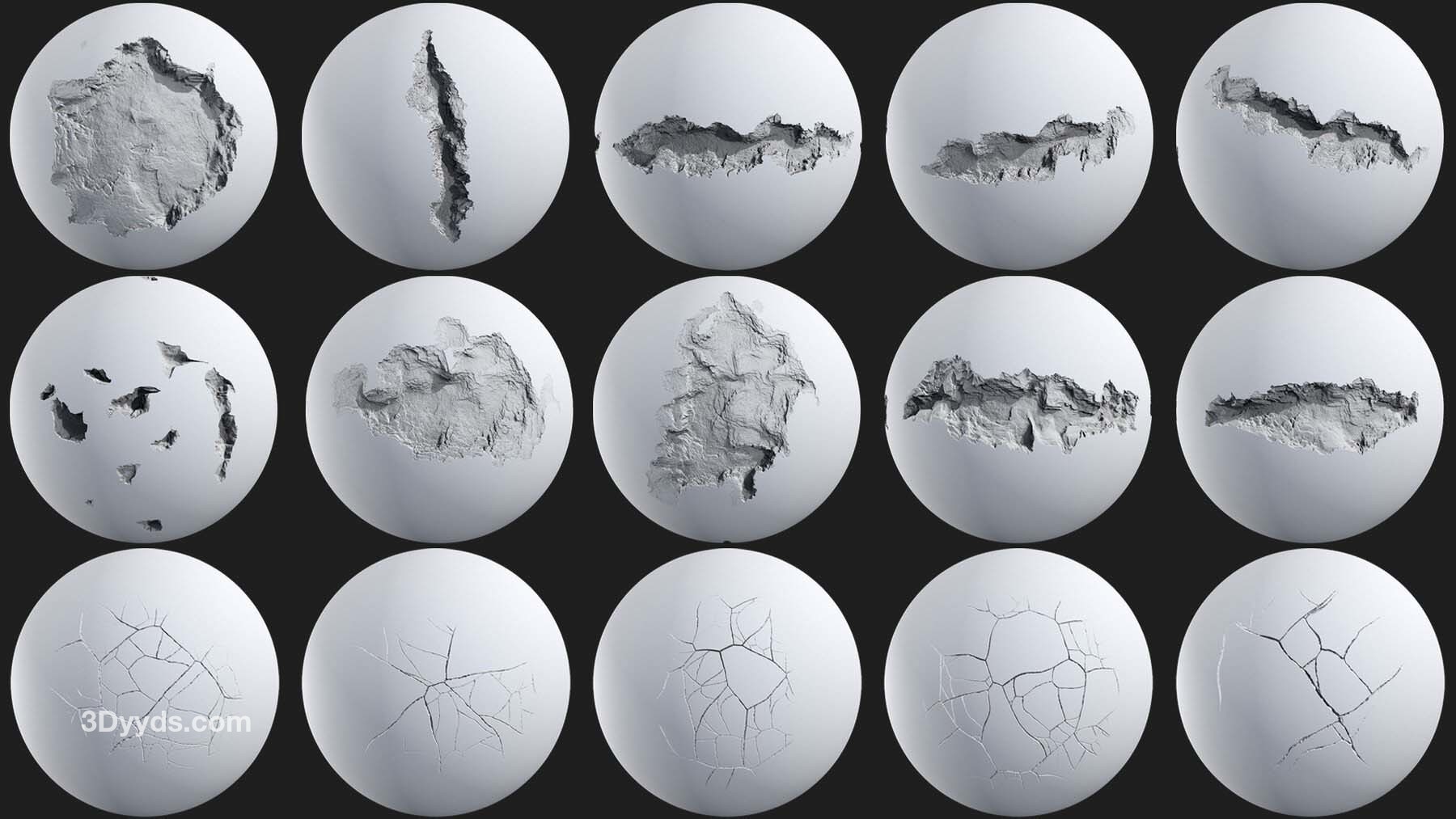 这是一套可以用来破坏地板、墙壁和其他物品的 Alpha 图,能够帮助艺术家快速工作。