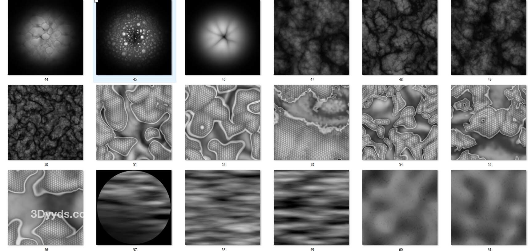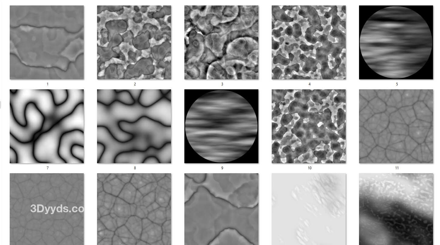 许多 Alpha 图案是可拼接的,可以用作 ZBrush 的位移图或表面噪声