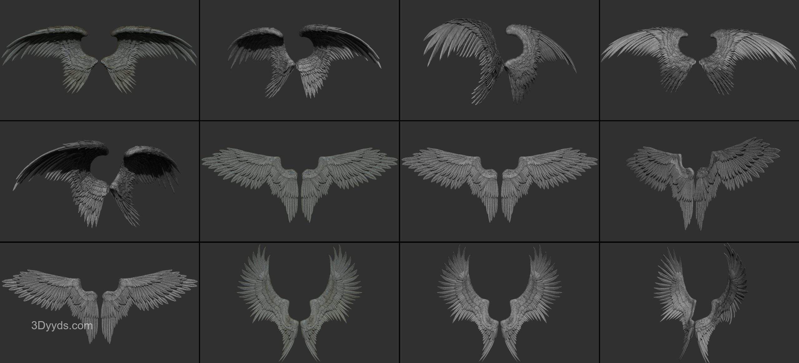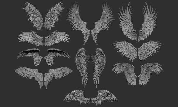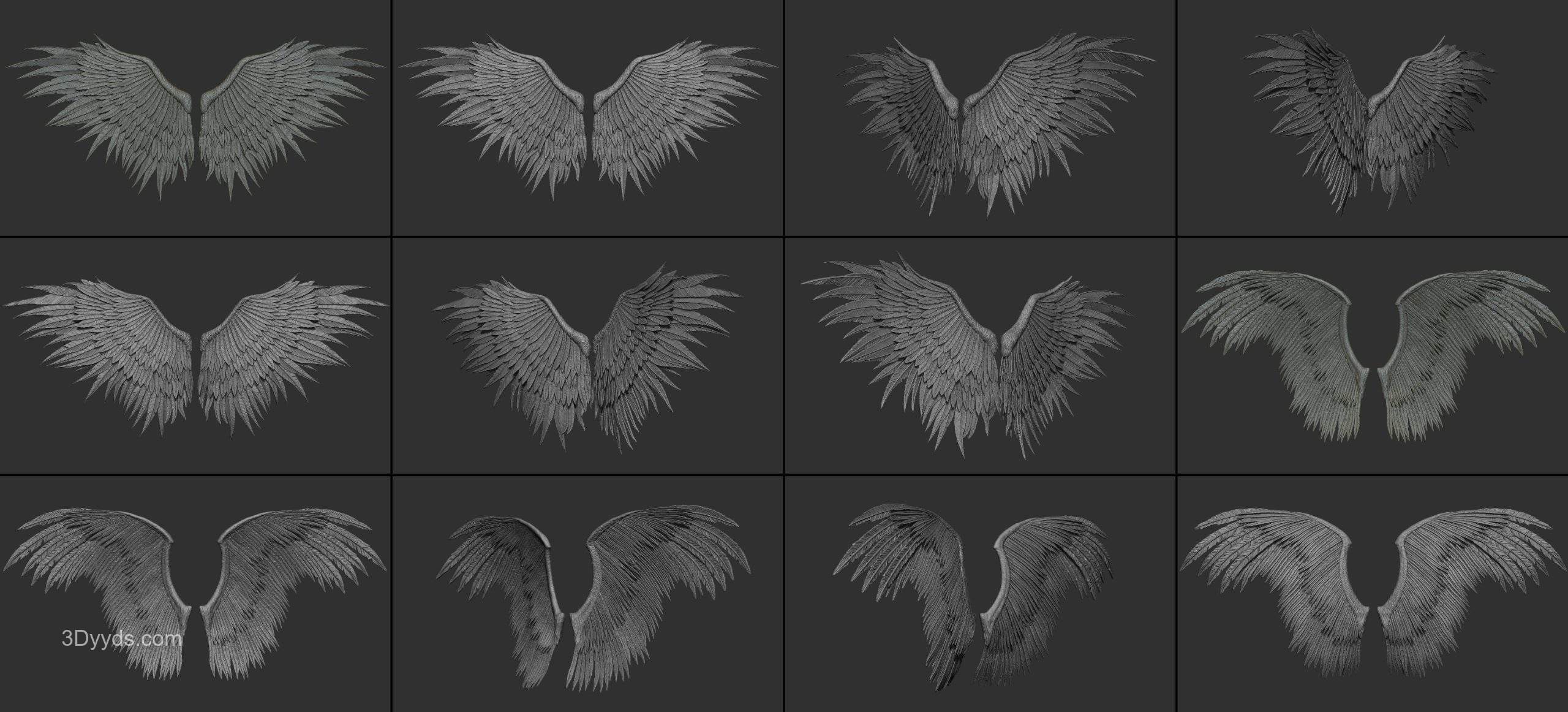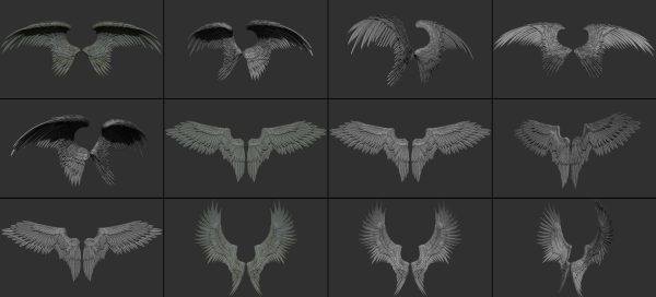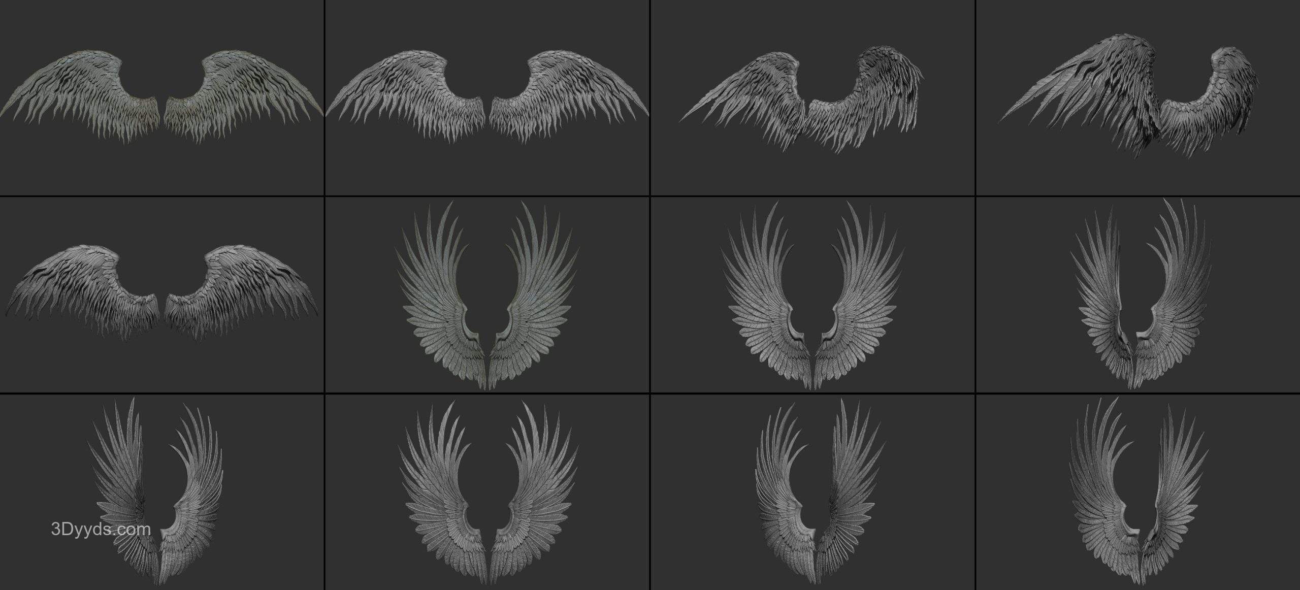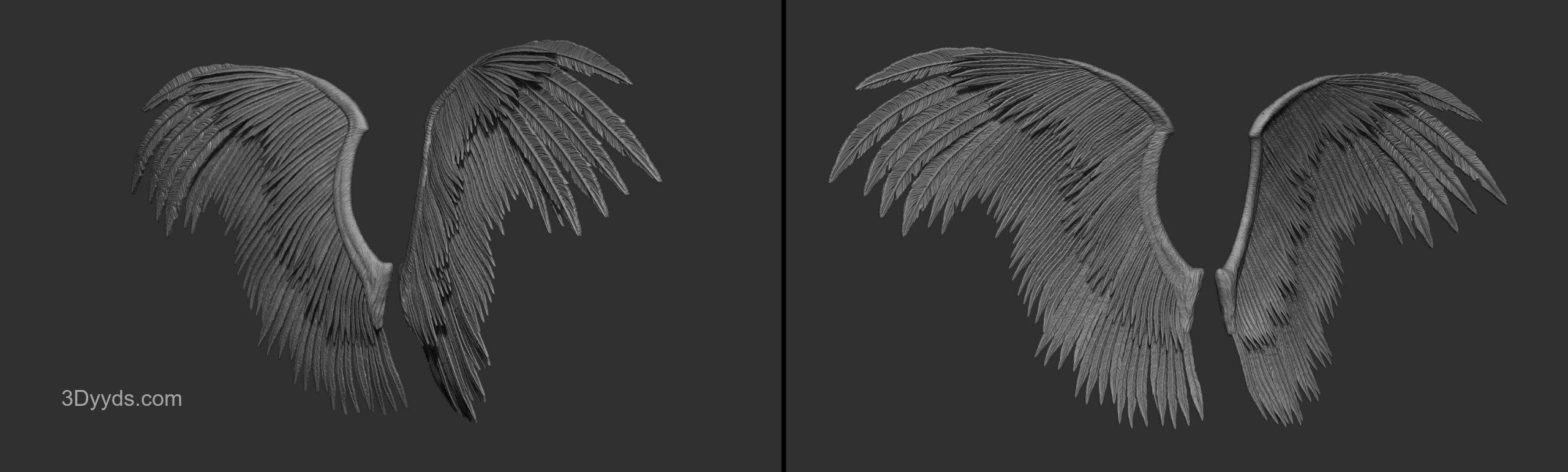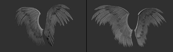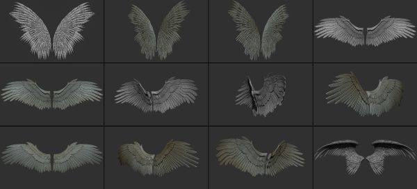 这些翅膀是高多边形的翅膀,使用 ZBrush 创建。