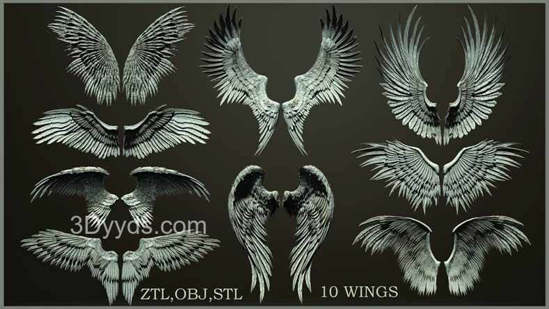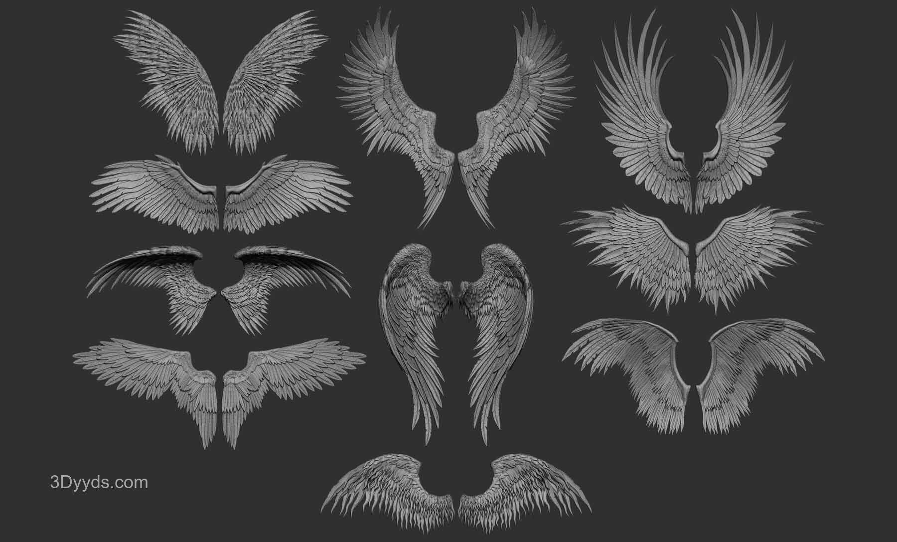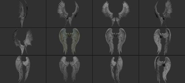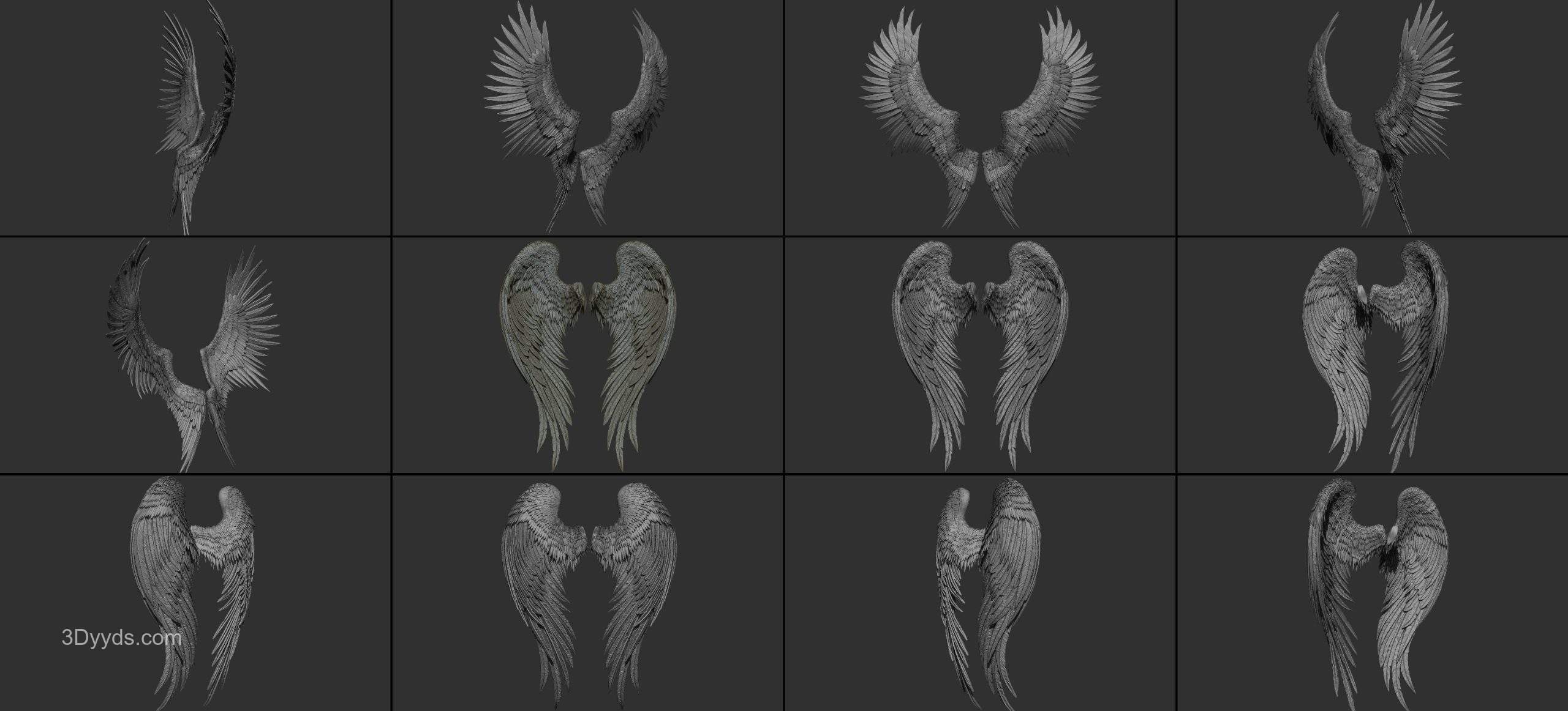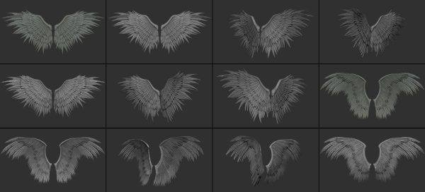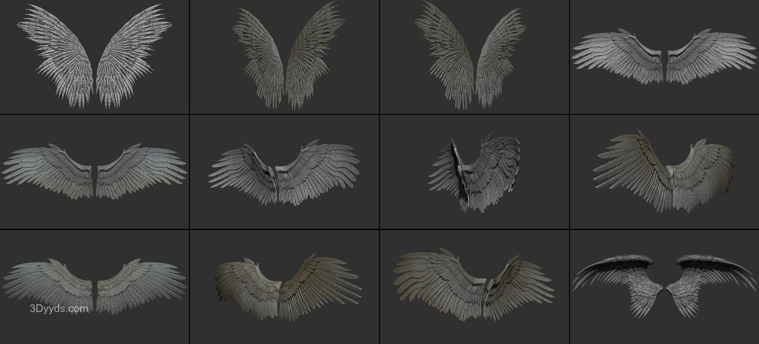 这些翅膀是高多边形的翅膀,使用 ZBrush 创建。
