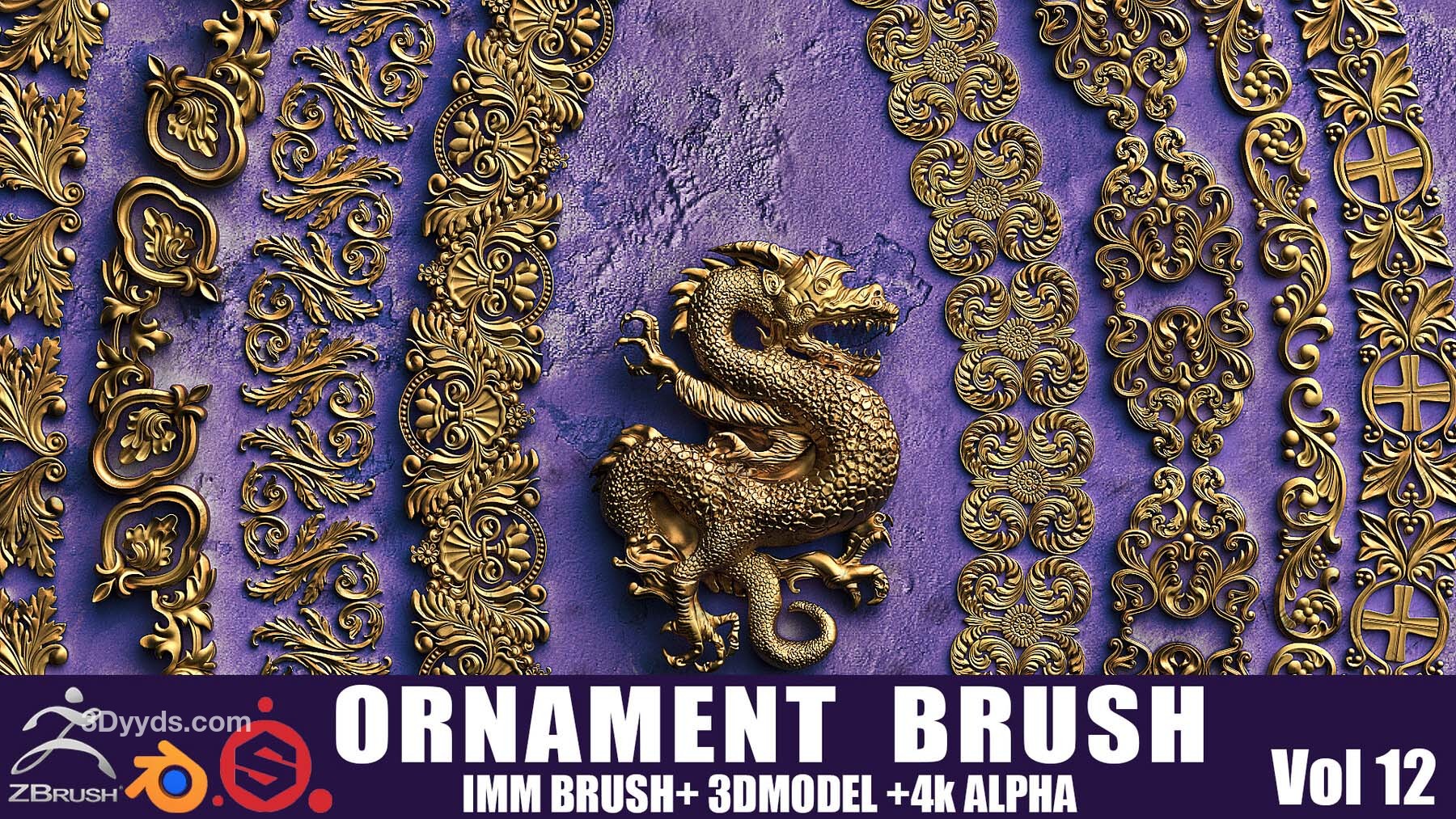 包含内容:IMM 画笔 + 标准画笔,4K Alpha/高度图 + 3D 模型(低多边形 - 高多边形)