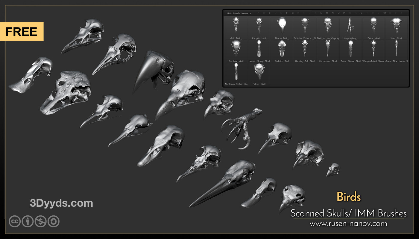 zbrush346鸟类猛禽动物扫描骸骨骷髅头骨zbp笔刷