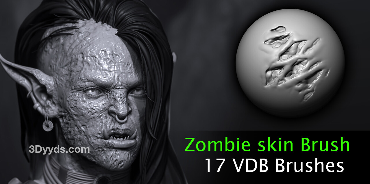 你将获得 17 个画笔,帮助简化僵尸或腐化皮肤的创建过程