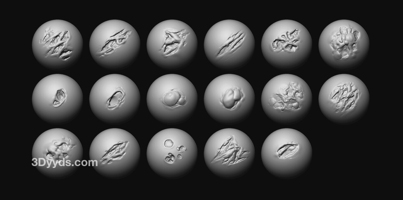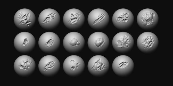 zbrush350科幻丧尸怪物腐烂皮肤伤口烫伤伤疤创伤笔刷