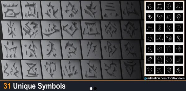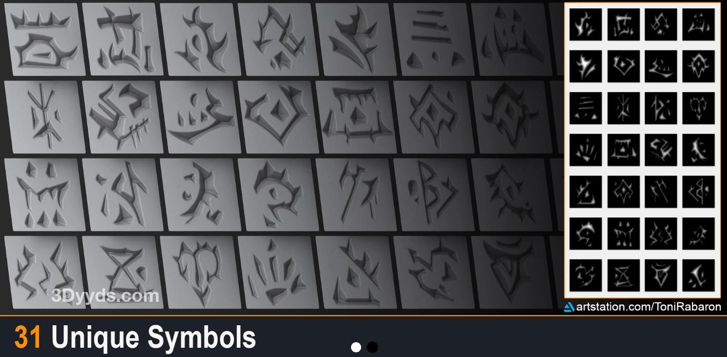 zbrush327神秘兽人符文符号图腾纹理笔刷vdm