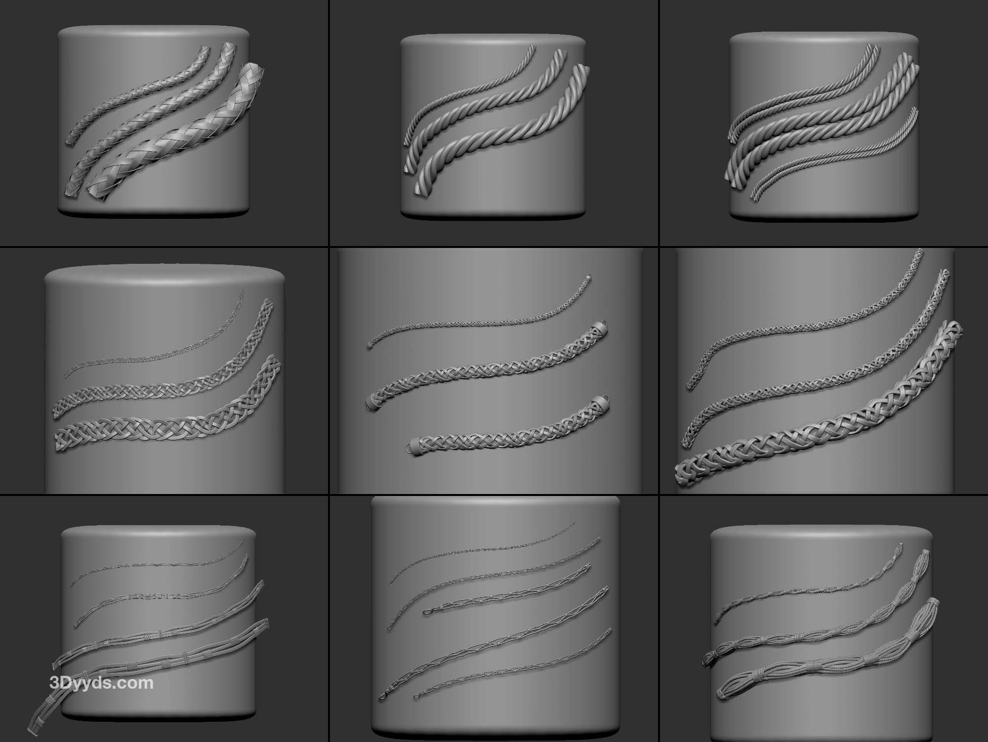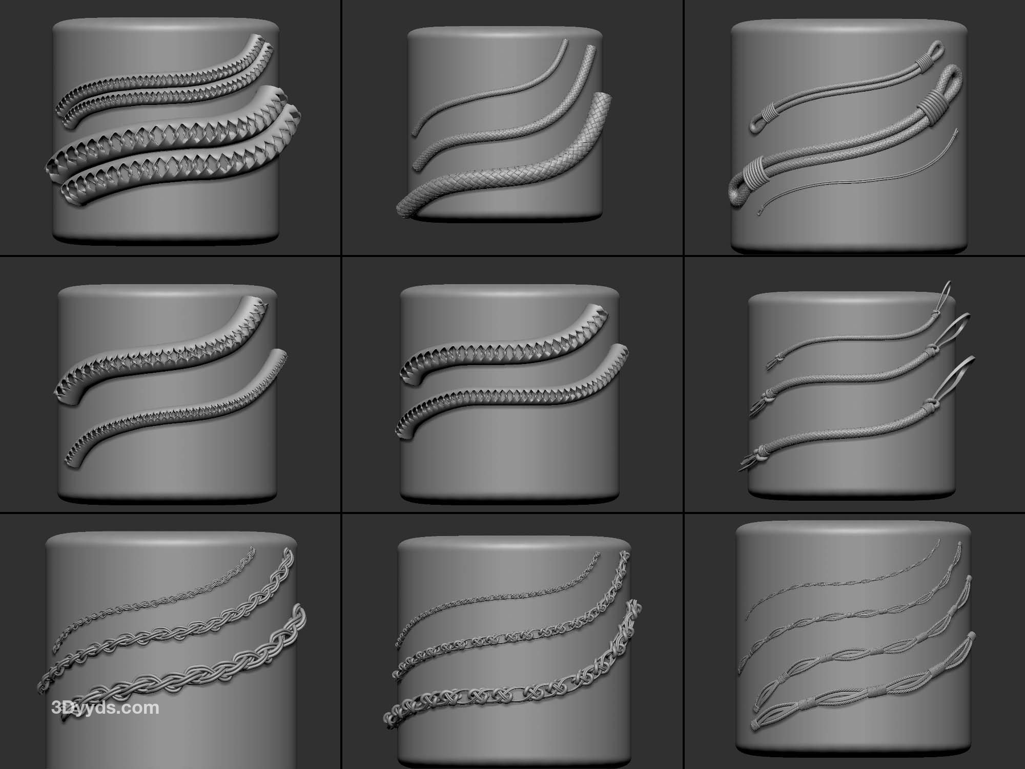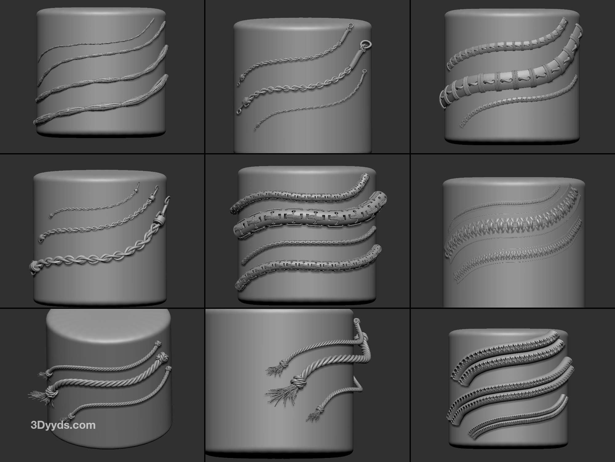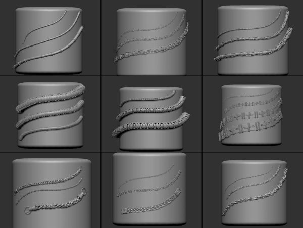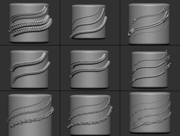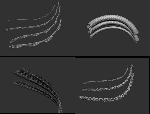 zbrush354-40款绳索装饰带IMM笔刷OBJ模型