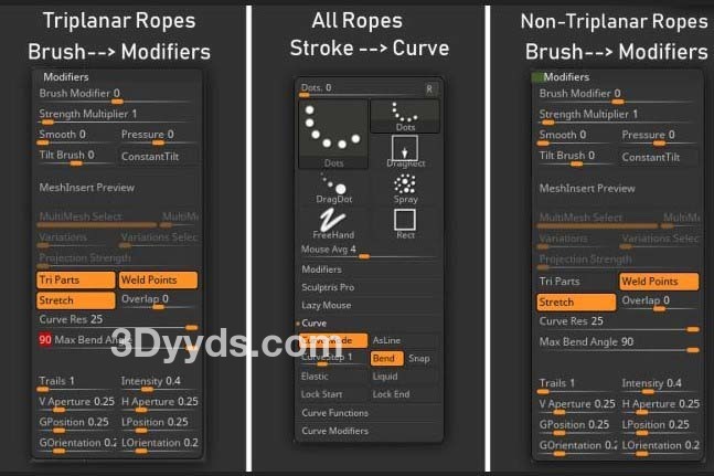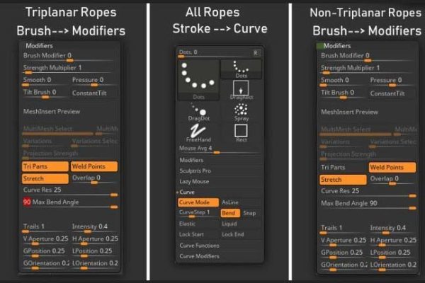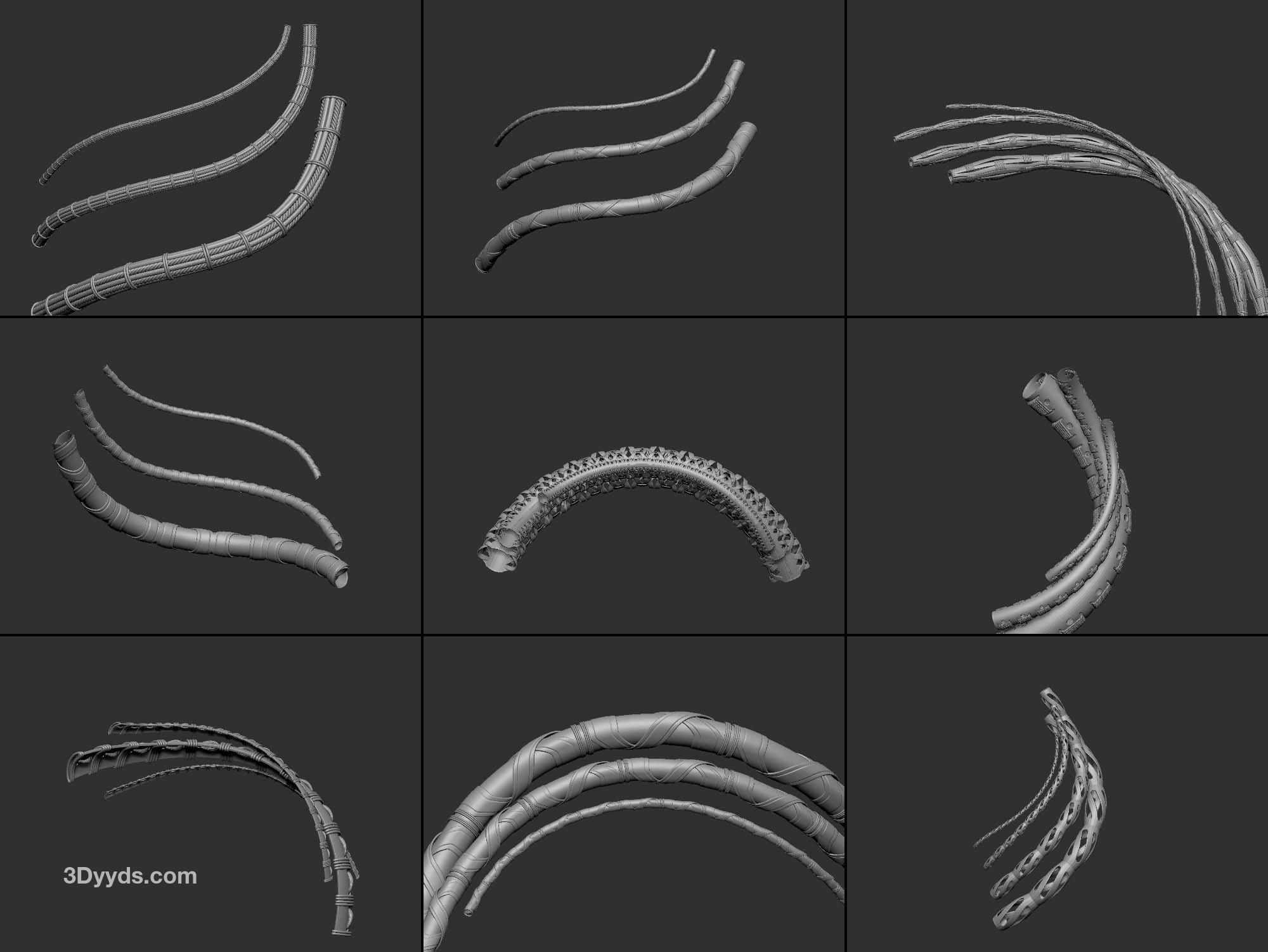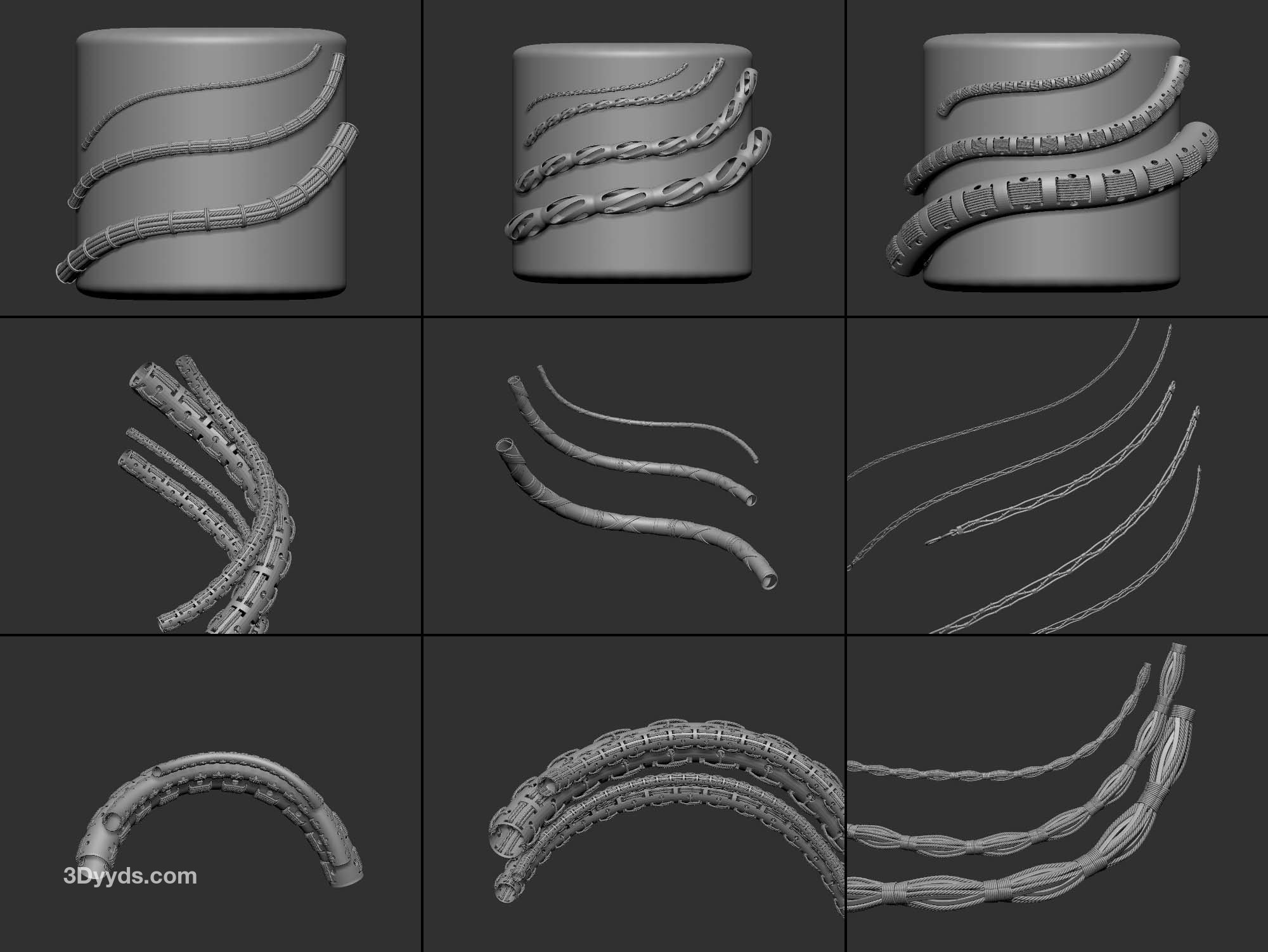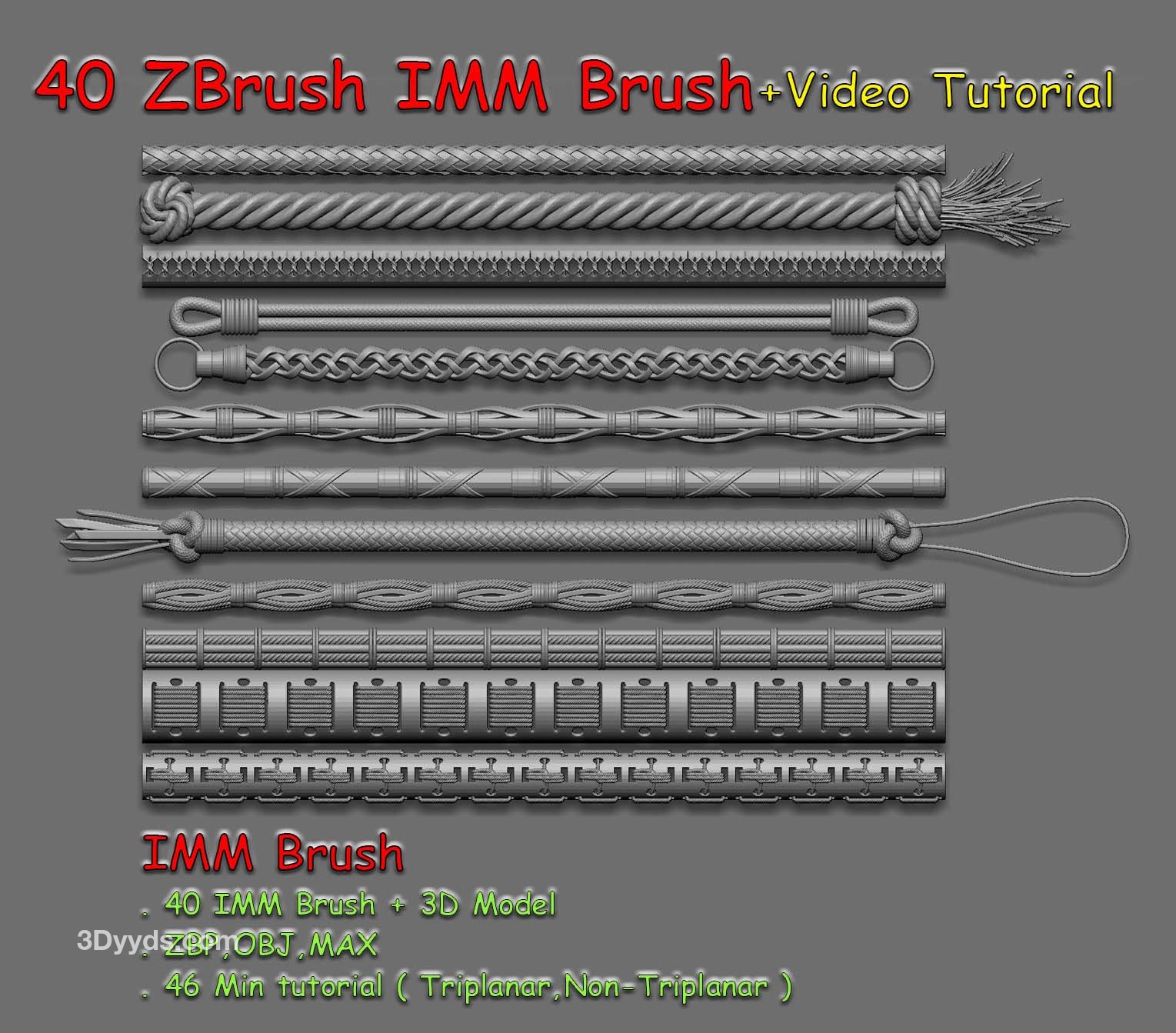 zbrush354-40款绳索装饰带IMM笔刷OBJ模型