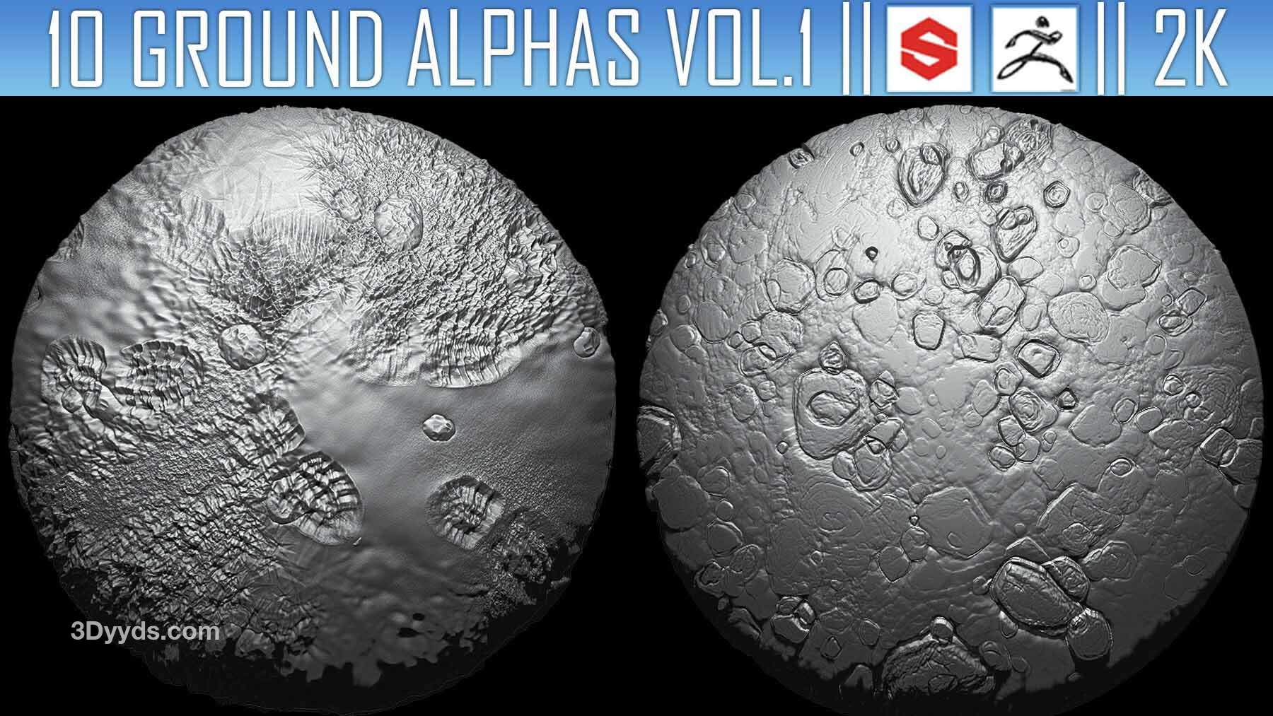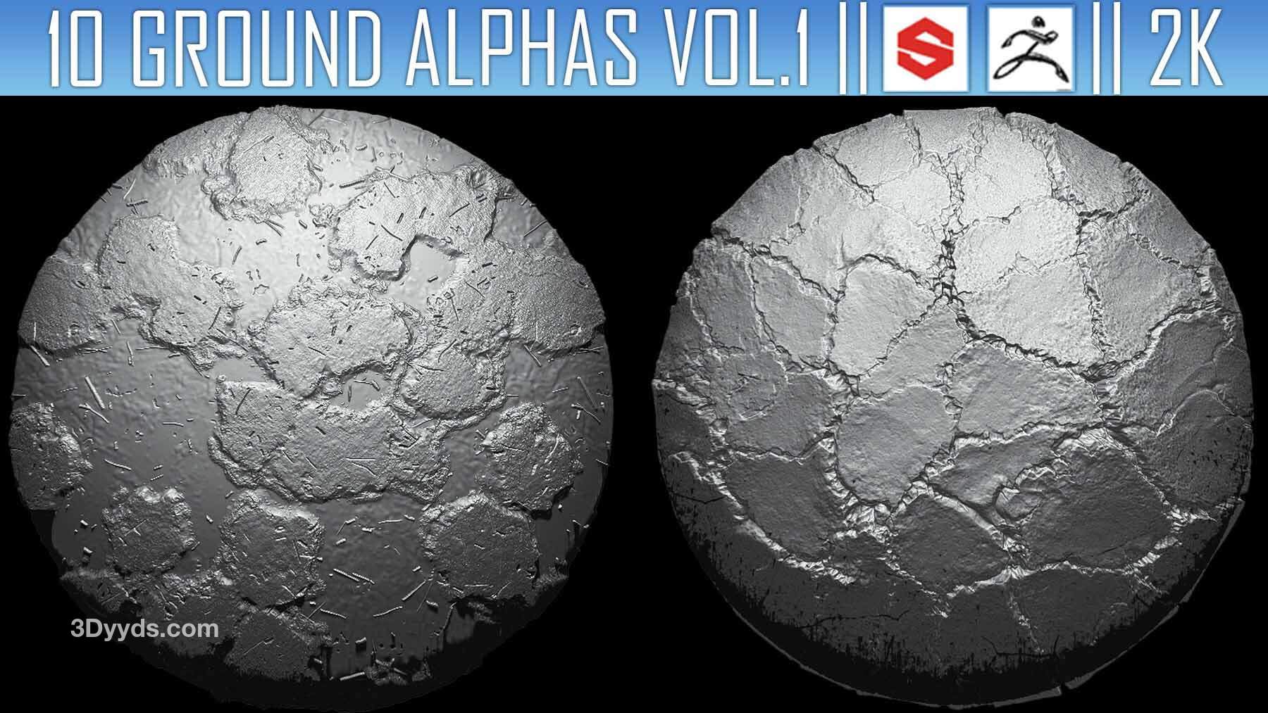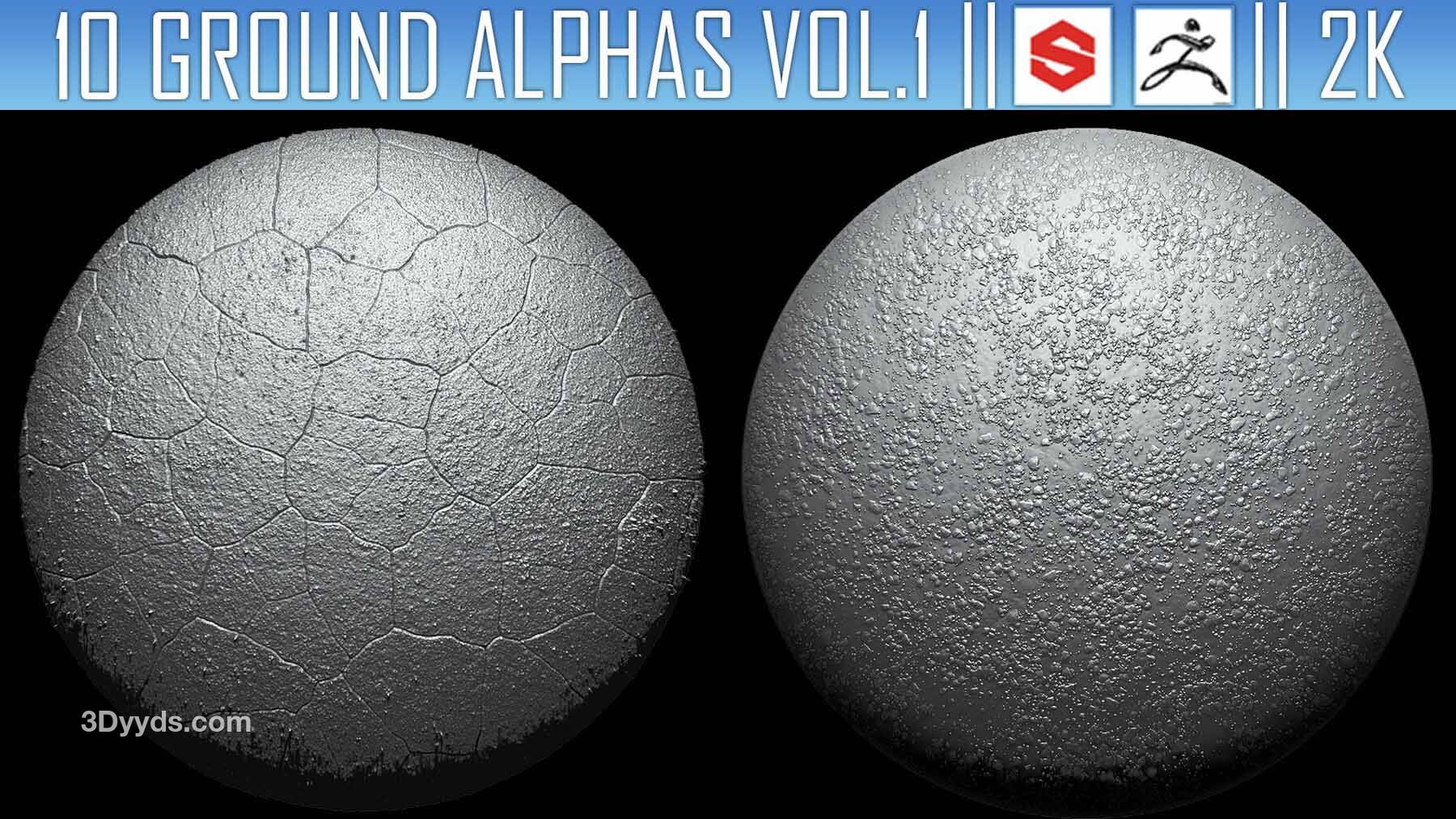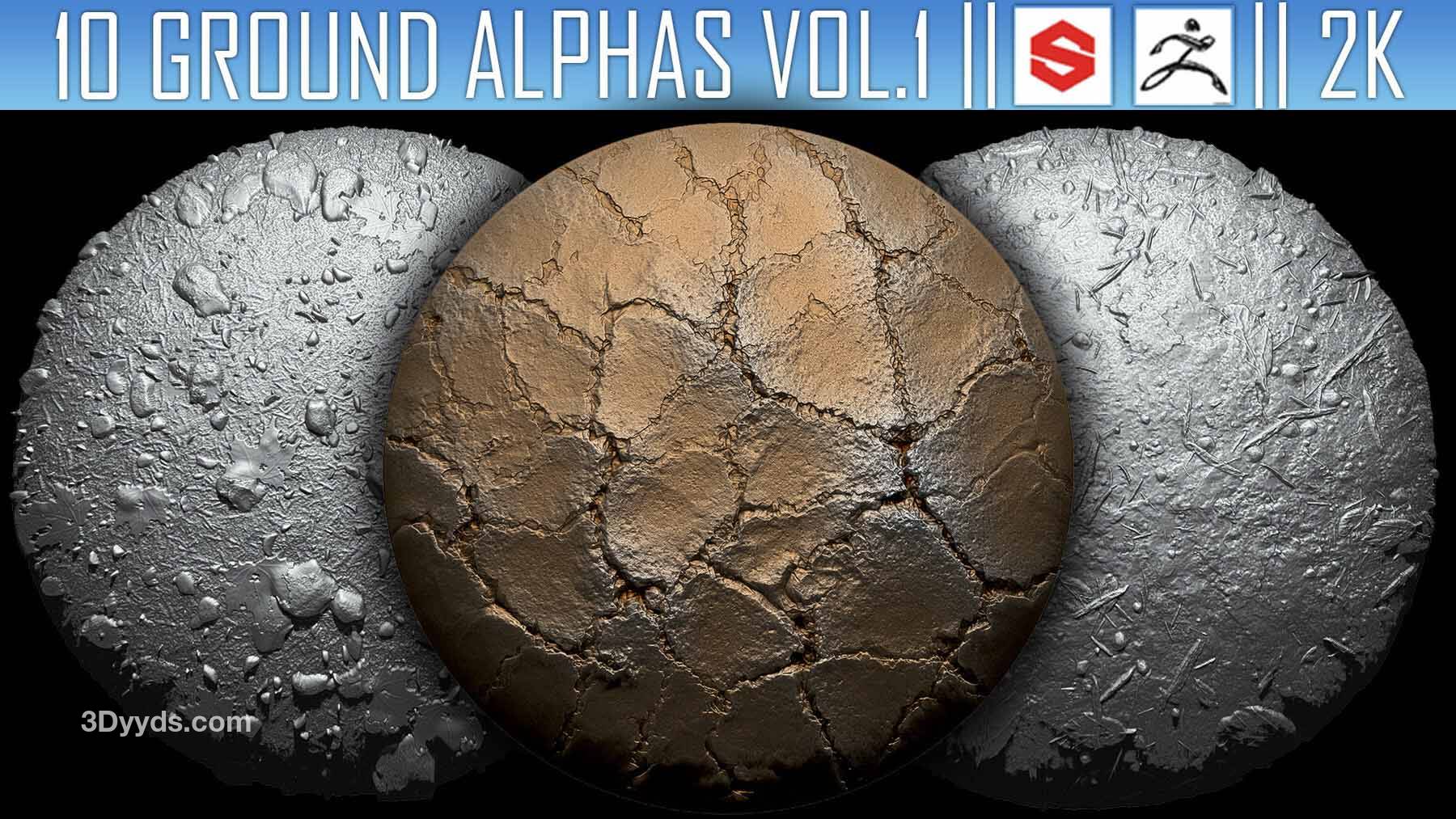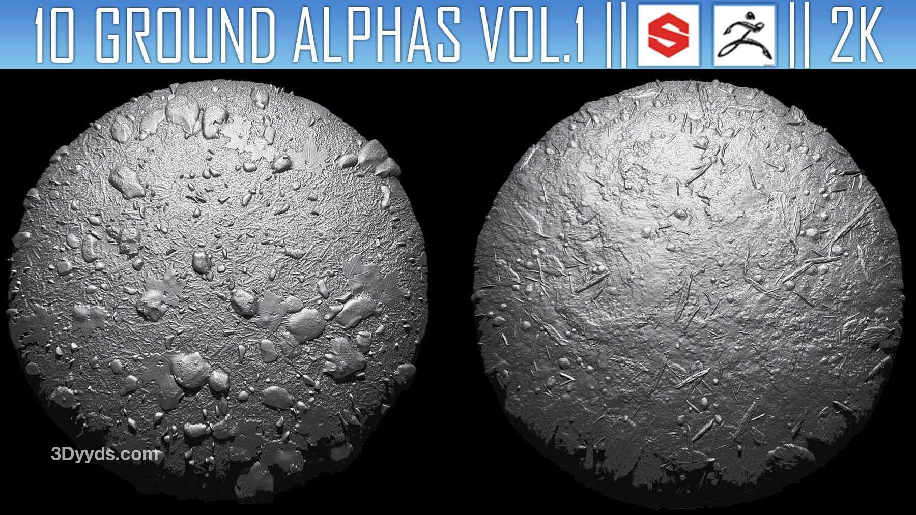 该素材包包含10张Alpha贴图(PNG格式,2K分辨率),可用于在ZBrush、Substance Painter及其他软件中为模型添加地面细节