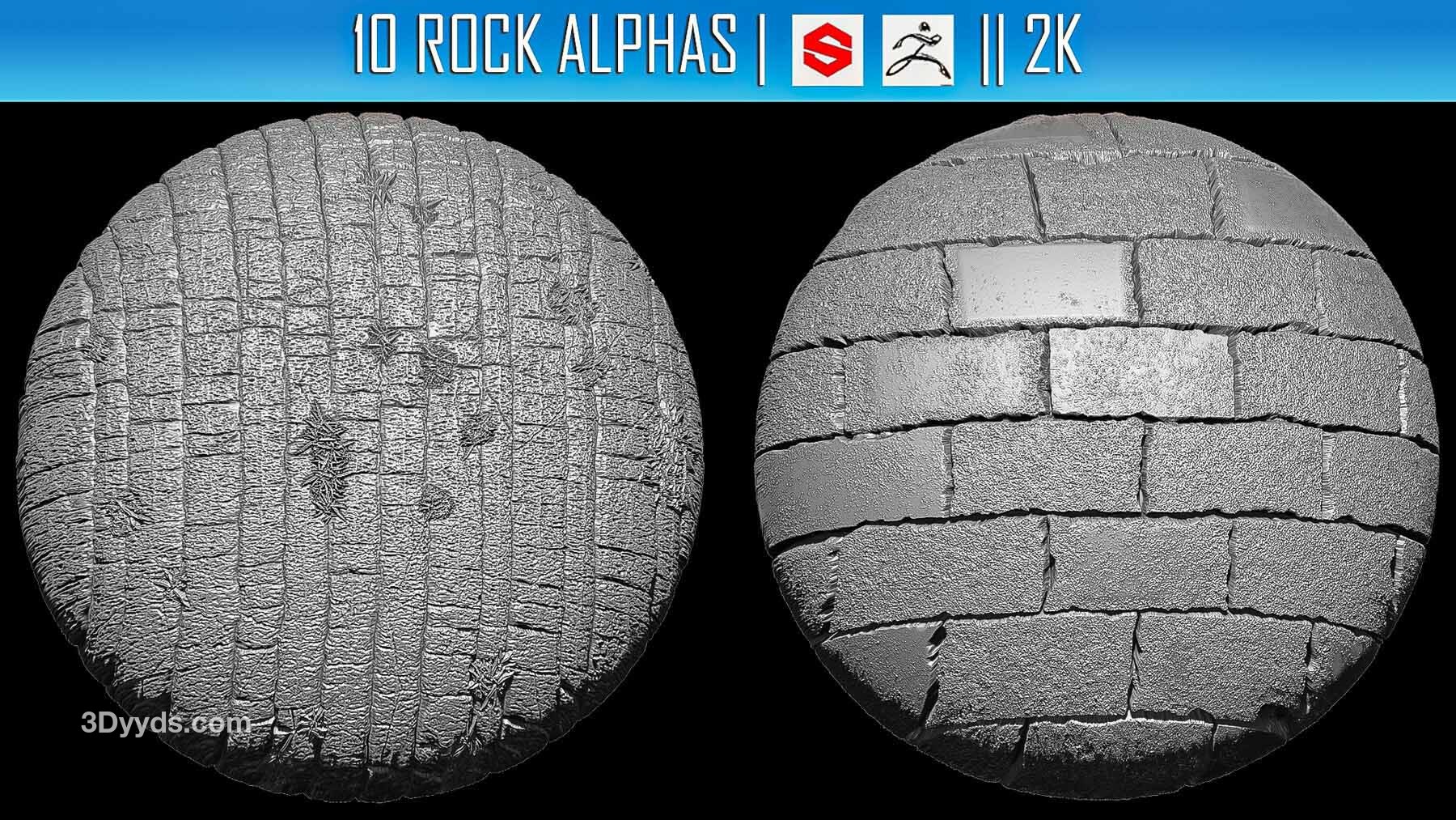 zbrush367-10组岩石表面磨损砖块碎裂纹理Alpha贴图