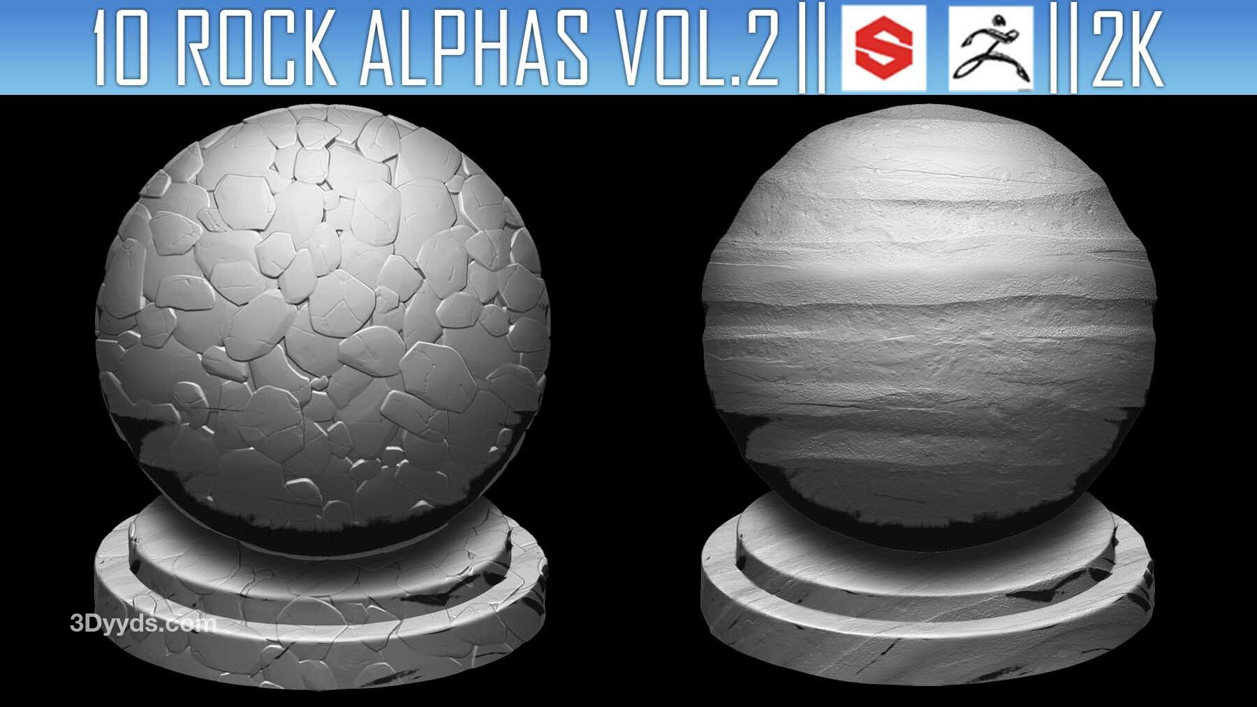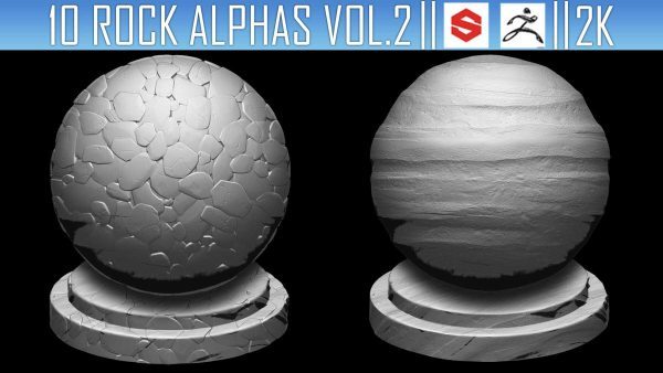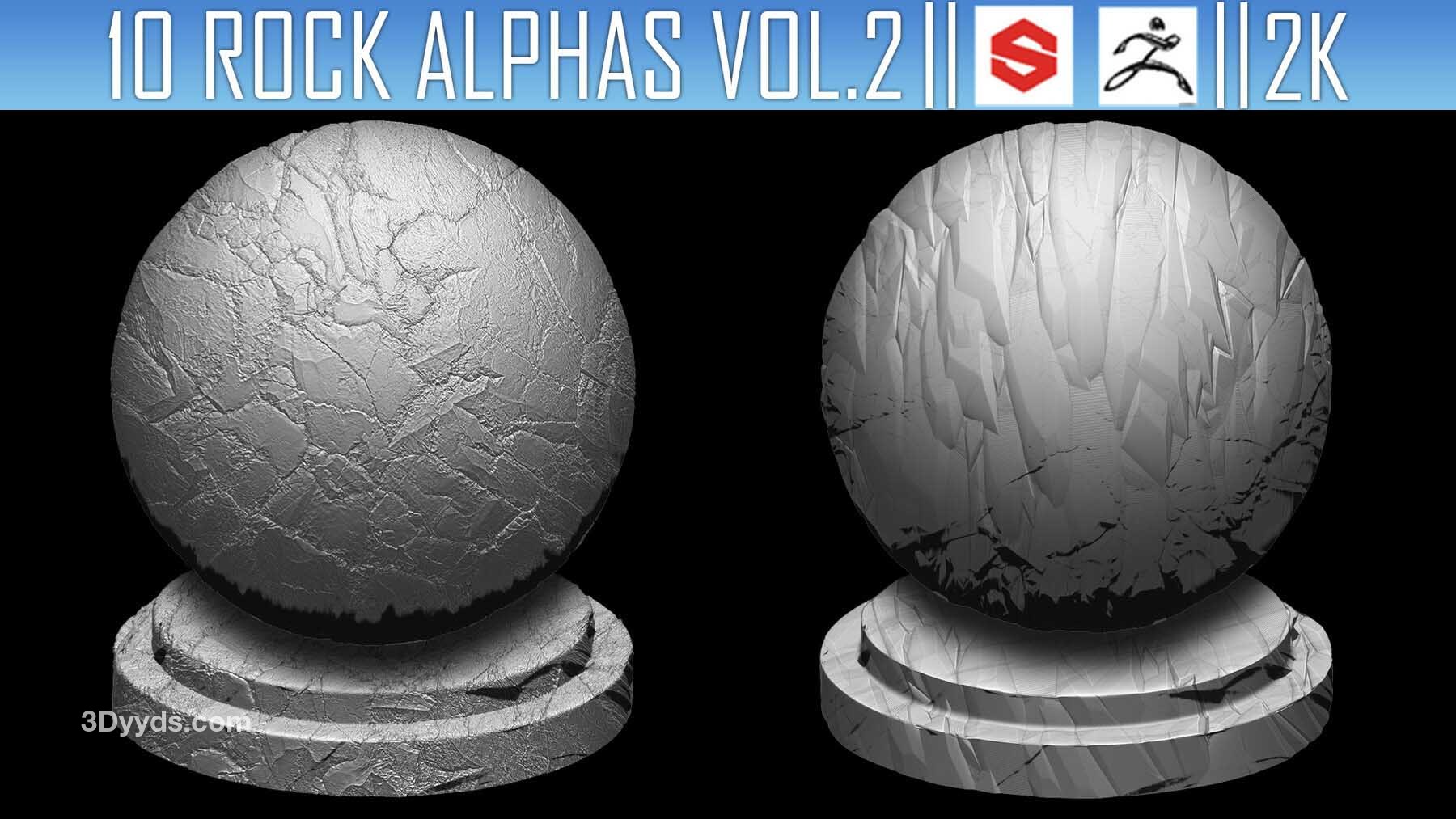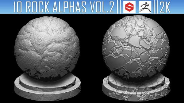 该素材包包含10张岩石Alpha贴图(PNG格式,2K分辨率),可用于在ZBrush、Substance Painter及其他软件中为模型添加岩石细节