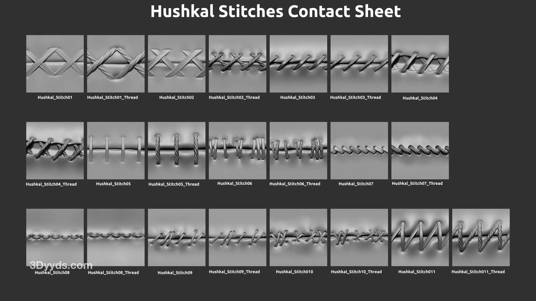 一套包含22个高品质缝线笔刷的合集(共11种样式,每种包含2种变体)