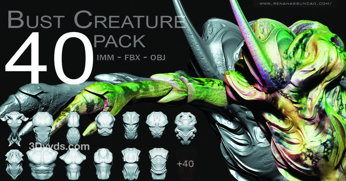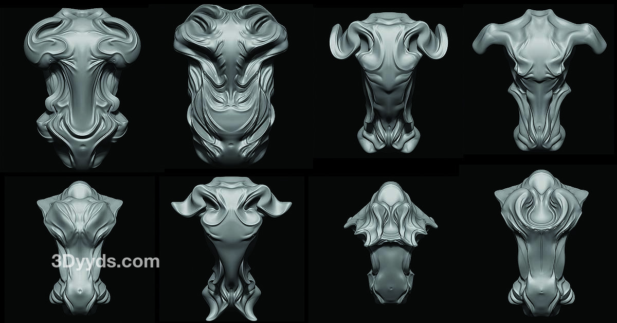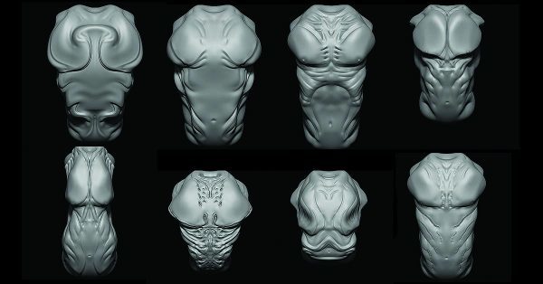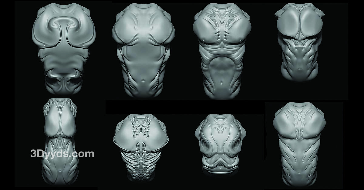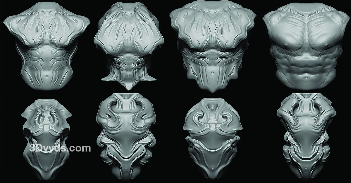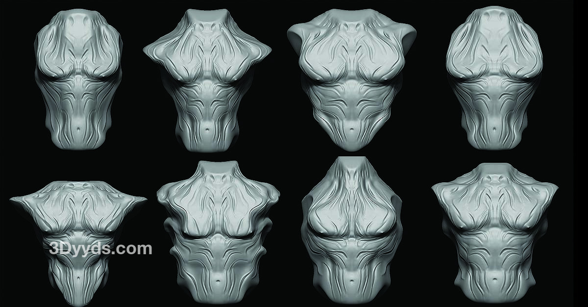 zbrush384-40款生物怪物胸像胸肌模型IMM笔刷