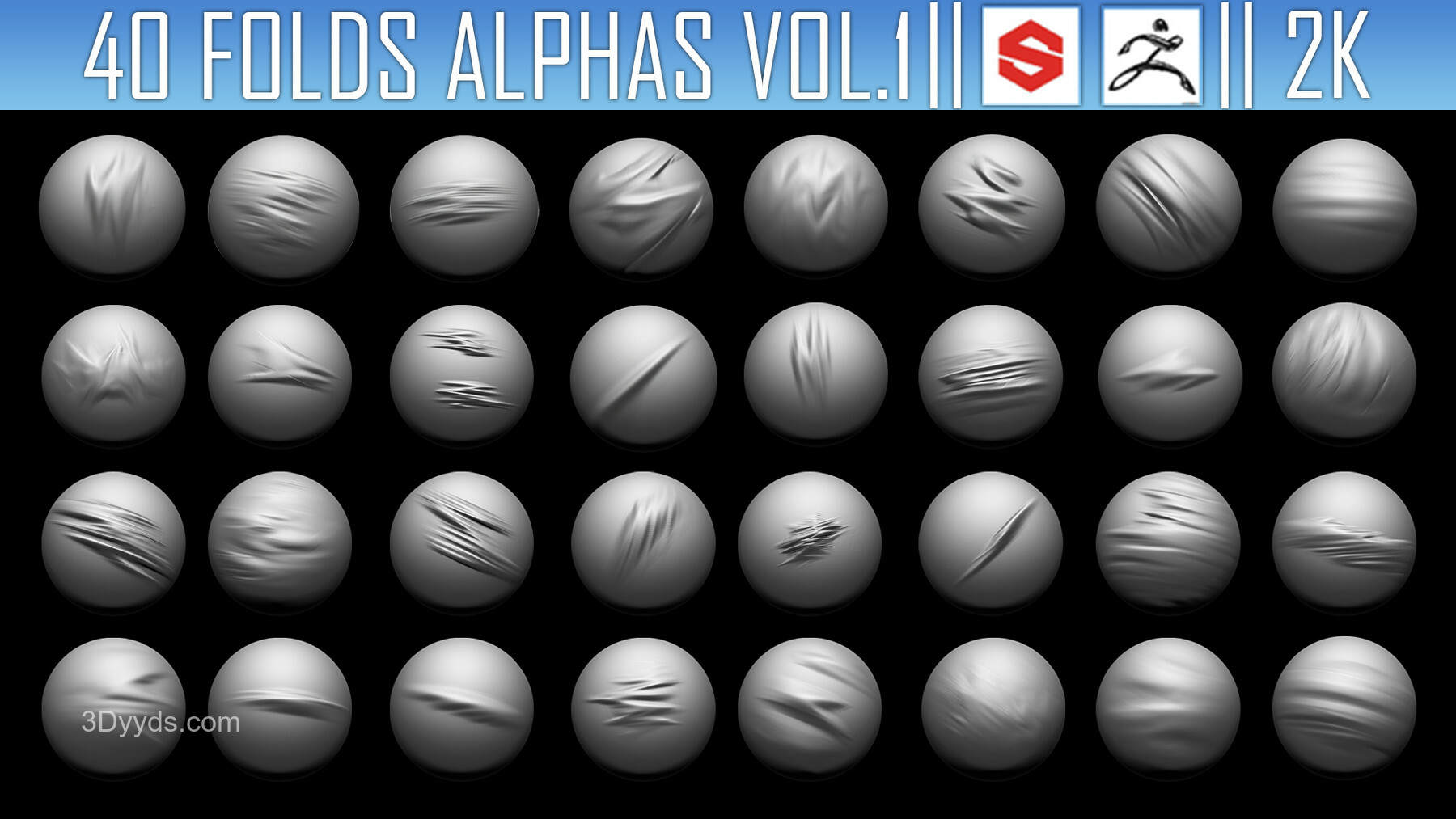 这个包包含了40个Alpha贴图(PSD格式,2K分辨率),用于在Zbrush、Substance Painter和其他程序中为你的模型添加褶皱细节