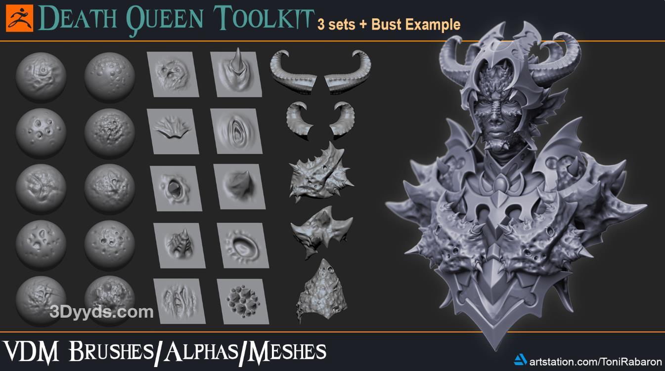 zbrush死之女王爪子牛角皮肤alpha笔刷套装