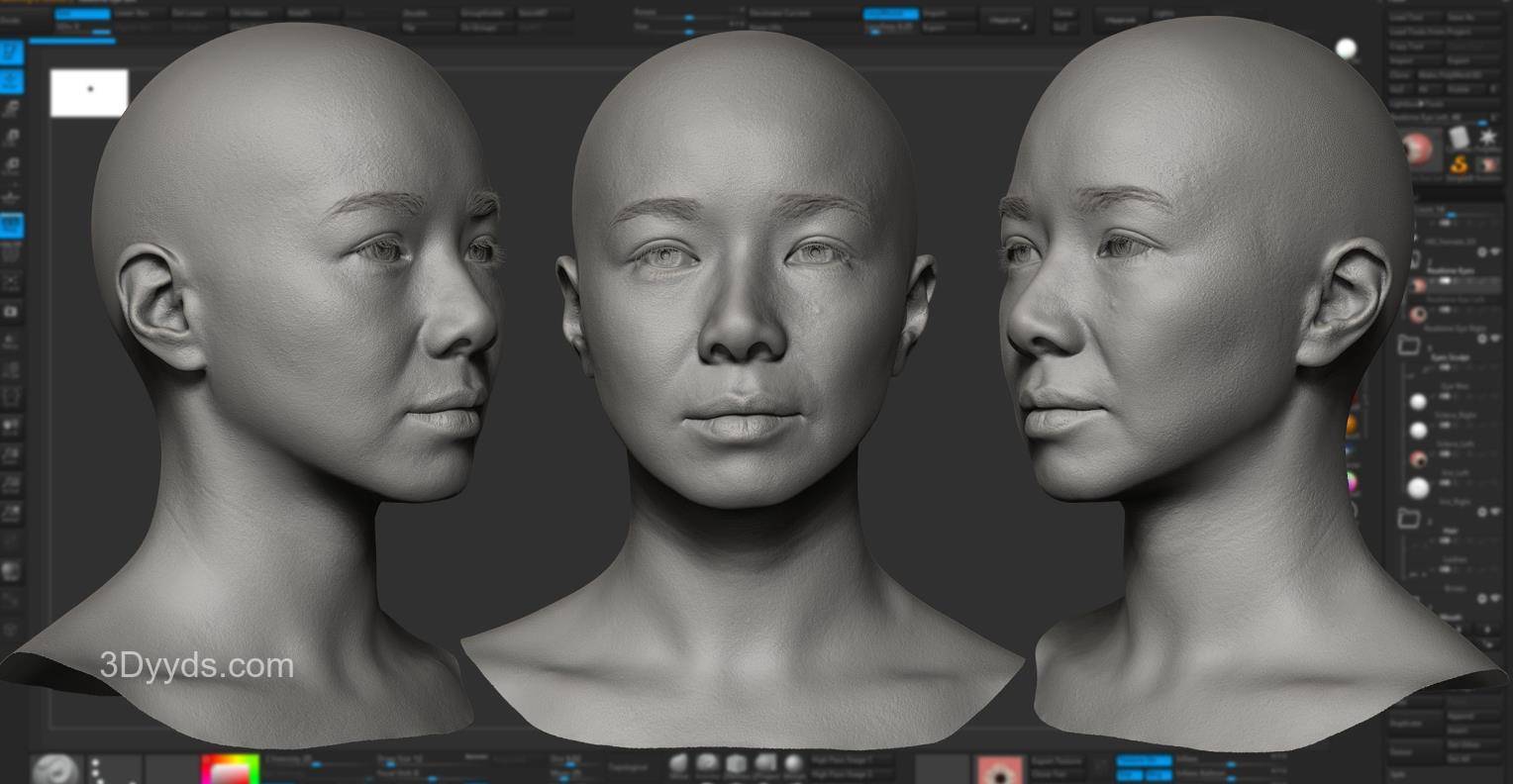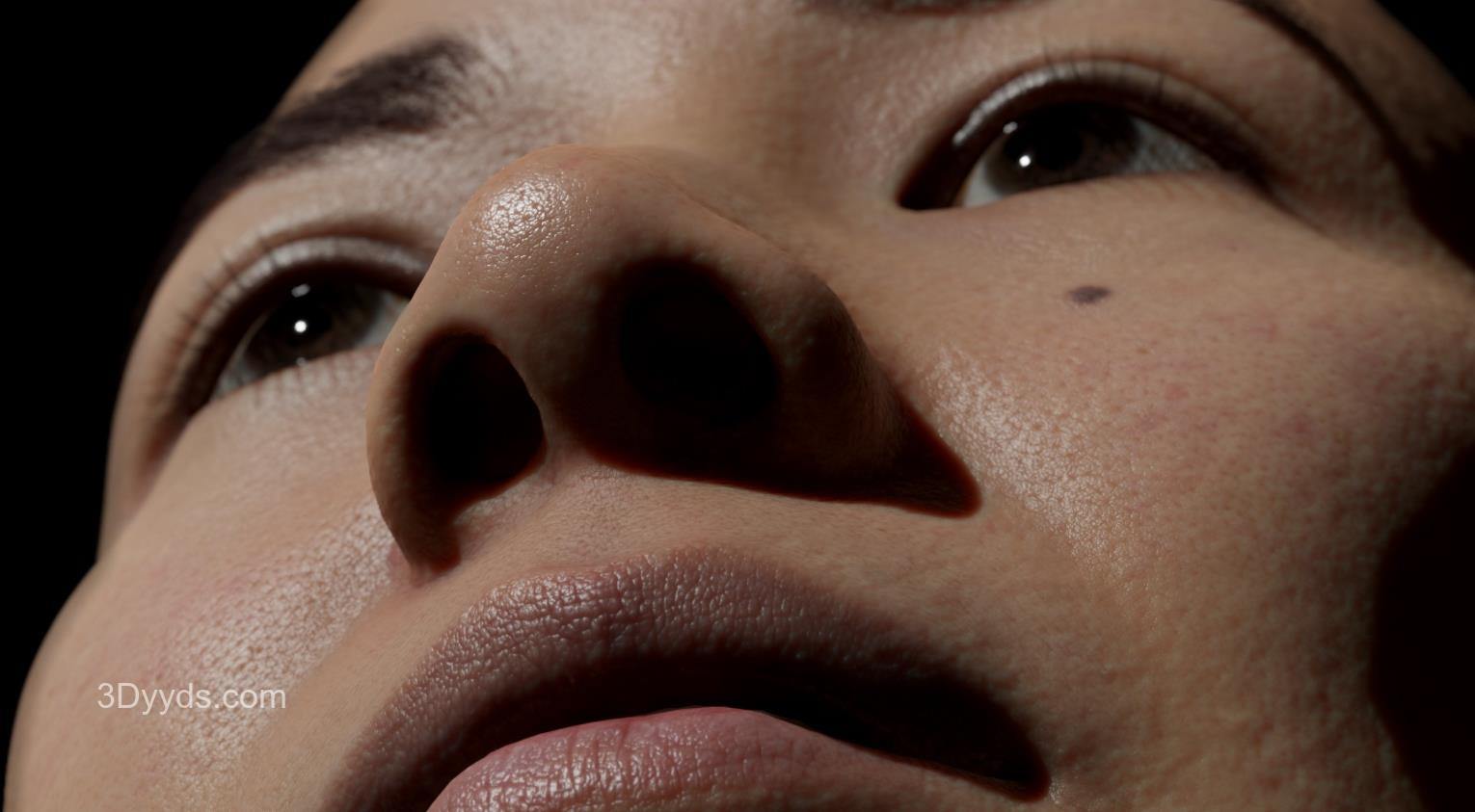这个高清女性头部扫描是使用我们专用的 120 台相机头部扫描装置制作的。该模型已经进行了清理和后期处理,成为一个专业的、可用于制作的网格,具有高分辨率的细节,即使在极端的特写镜头下,细胞水平的细节在纹理和几何上也清晰可见。我们还包含了源 ZBrush 文件,这样您就可以导出自己的贴图,或者将扫描作为另一个角色的基础。数据集还包括一个实时的 Marmoset Toolbag 3 场景,与我们用来制作下面渲染的相同场景。该场景包含了所有的照明和着色器设置,并且是学习高度详细的实时角色渲染场景的绝佳方式。