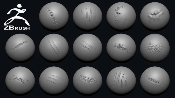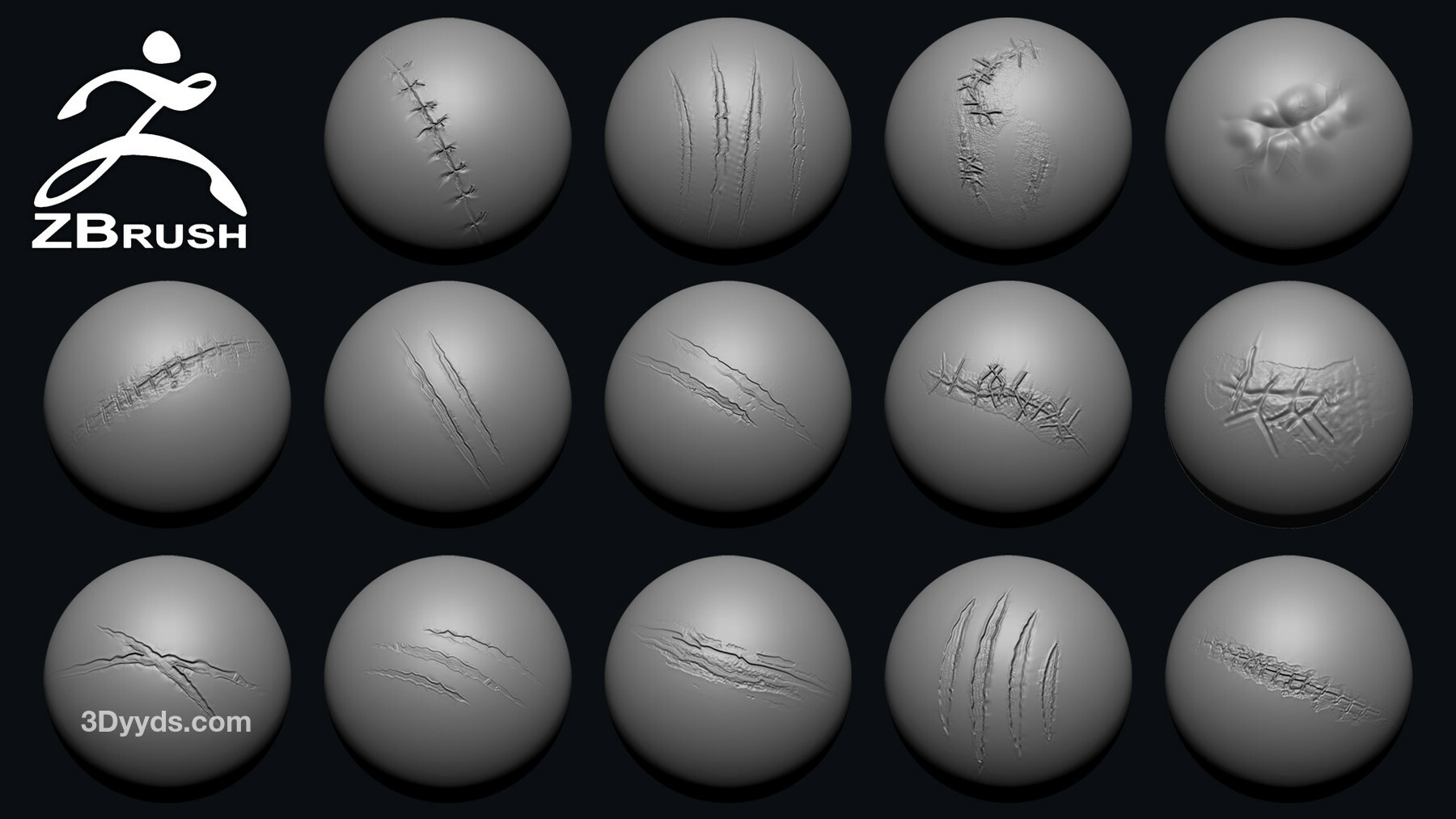 创建高精度伤痕细节:可以通过这些刷子在模型上添加真实感的皮肤伤害效果,增加雕刻的细节层次感