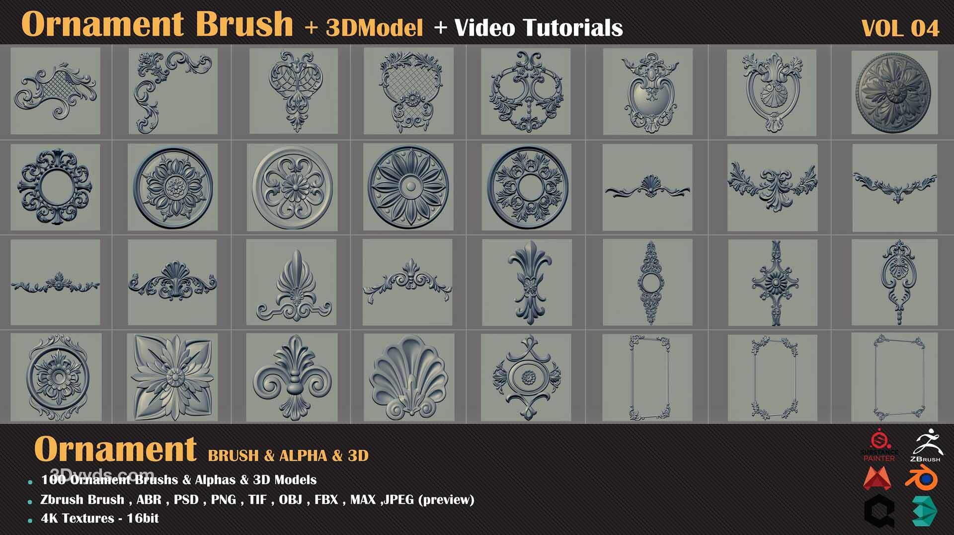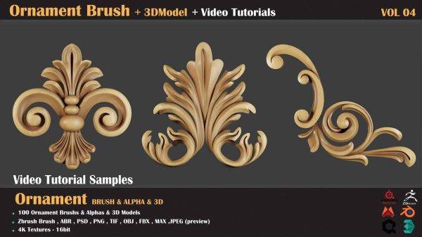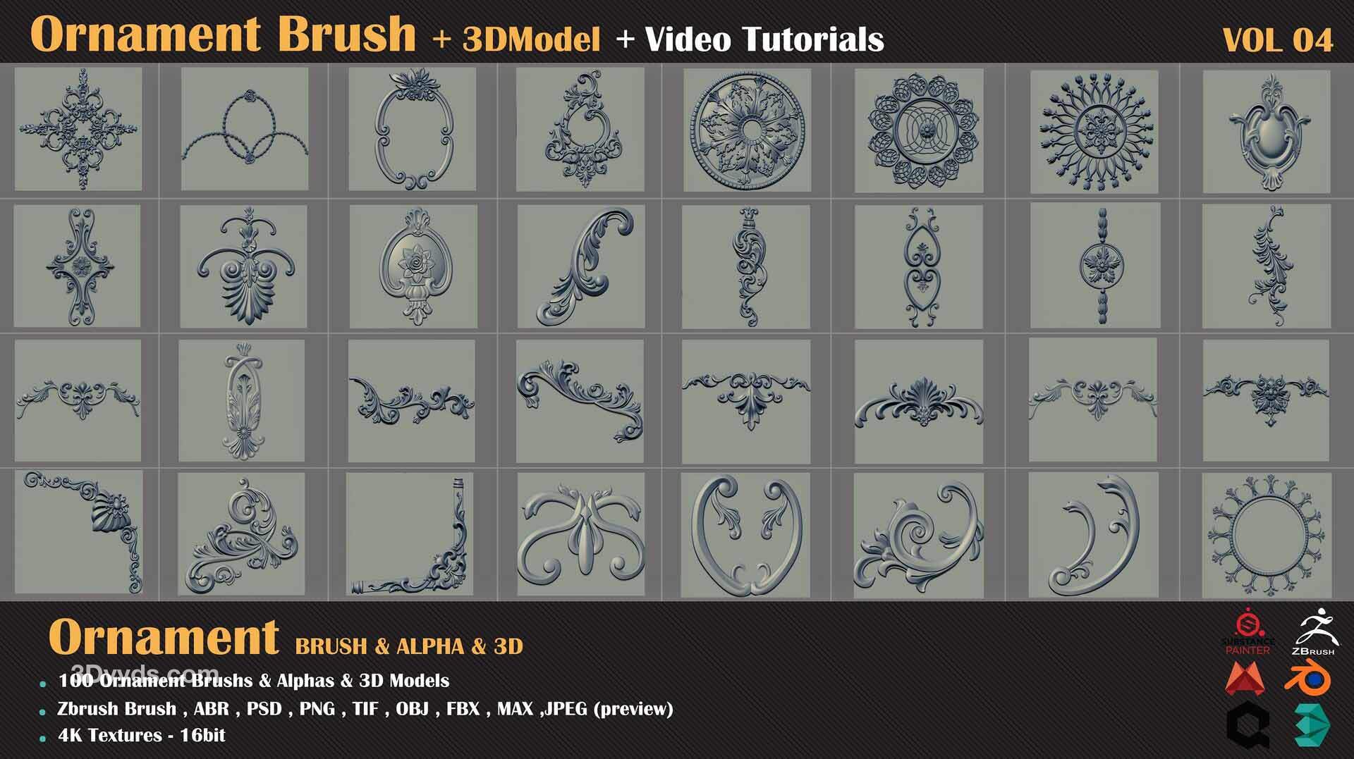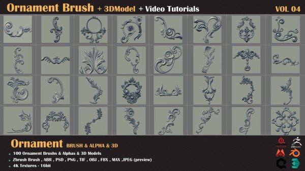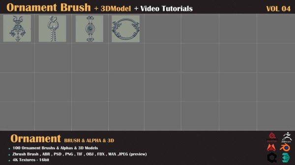 zbrush-100种装饰图案建筑花纹符号alpha笔刷3D模型