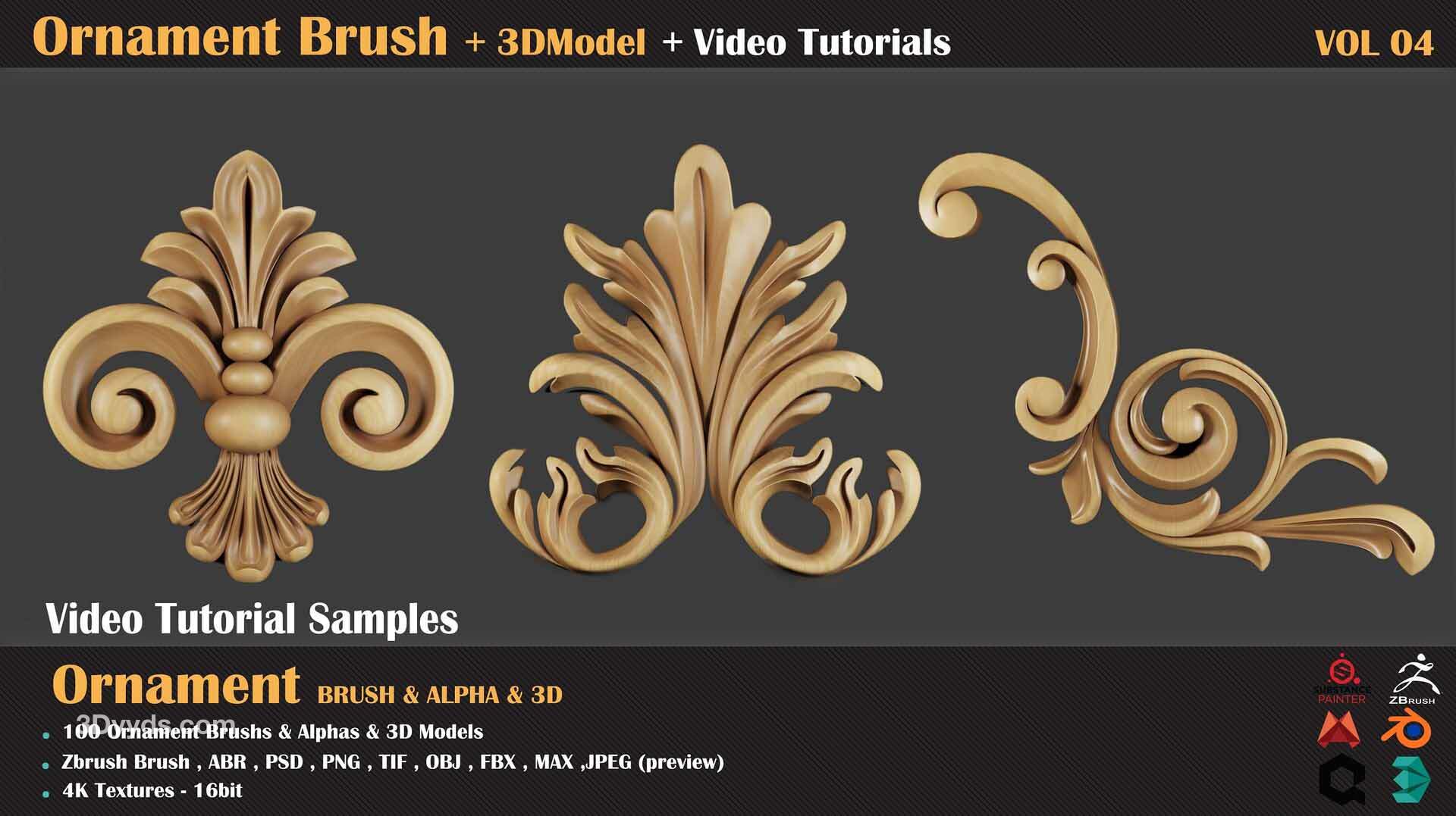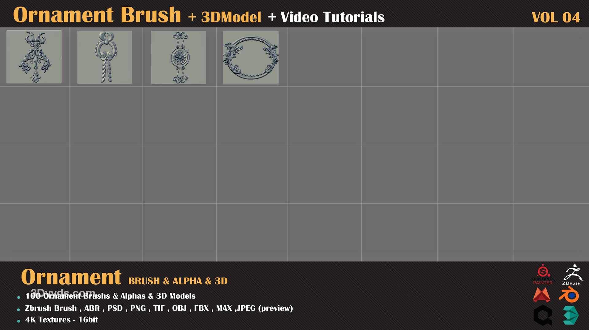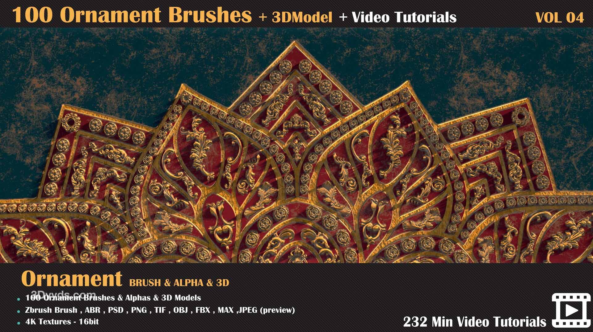zbrush-100种装饰图案建筑花纹符号alpha笔刷3D模型