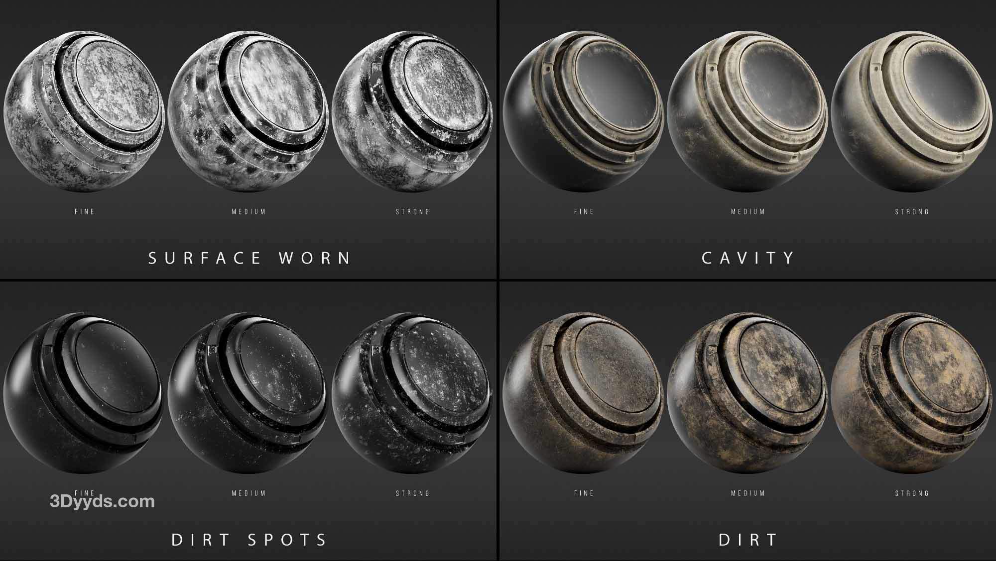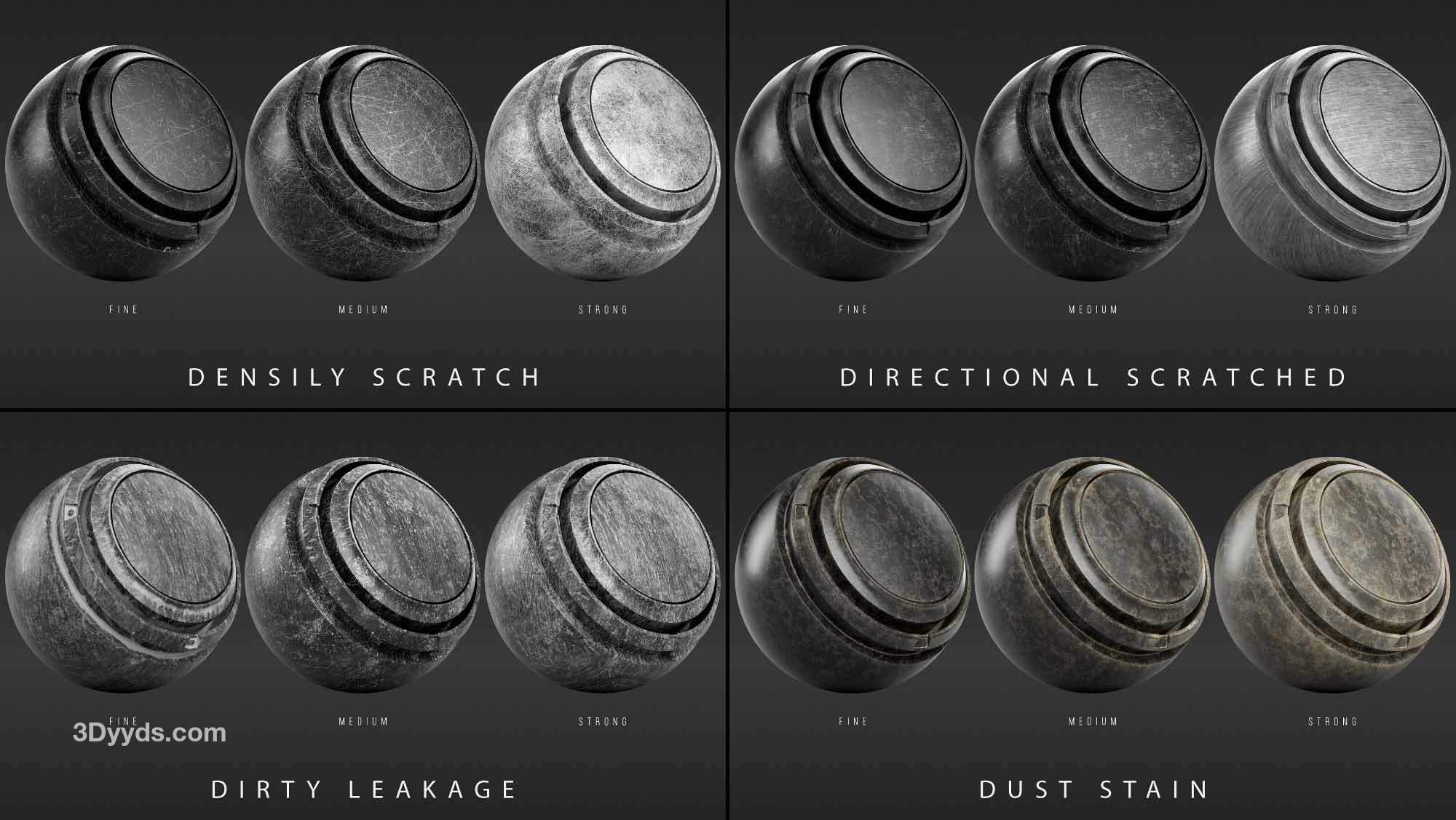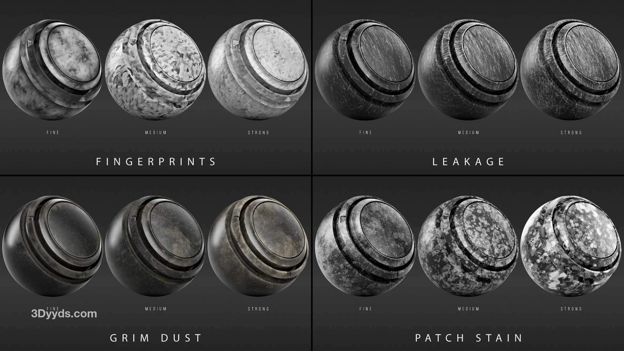 sp材质254铁锈划痕污渍污损灰尘智能遮罩PBR纹理