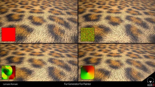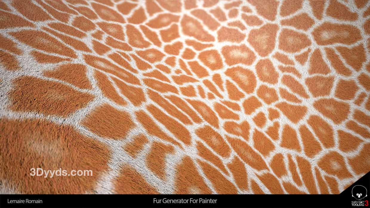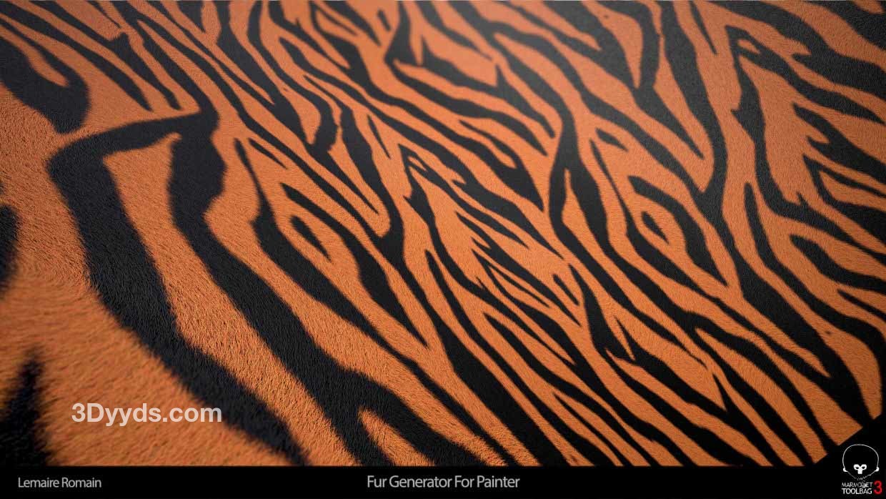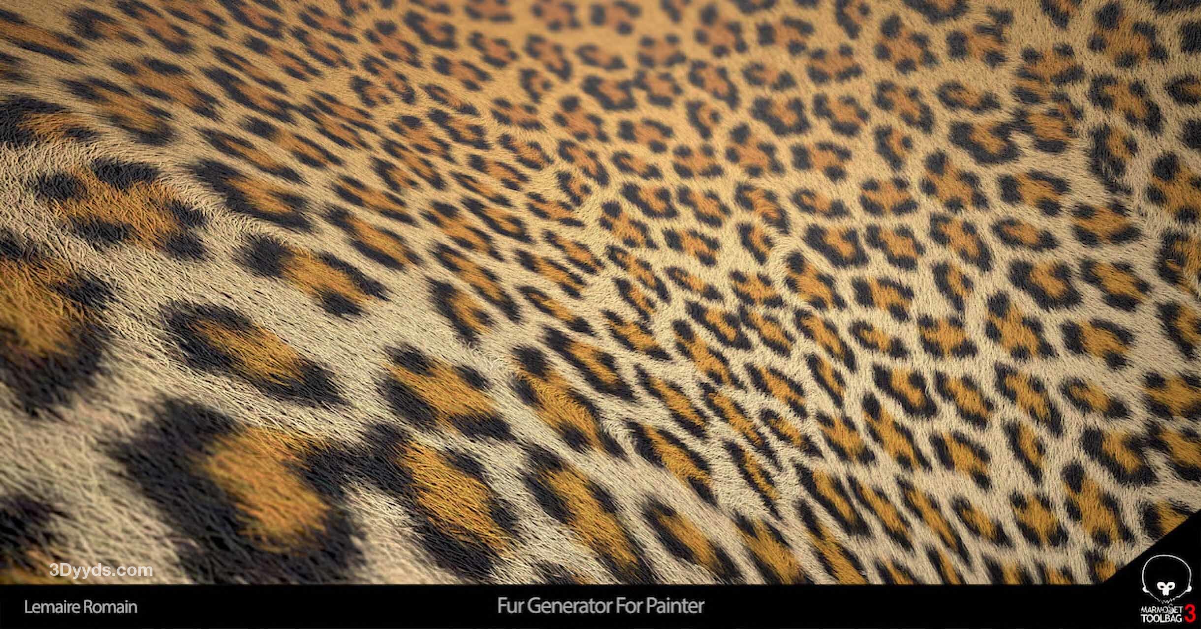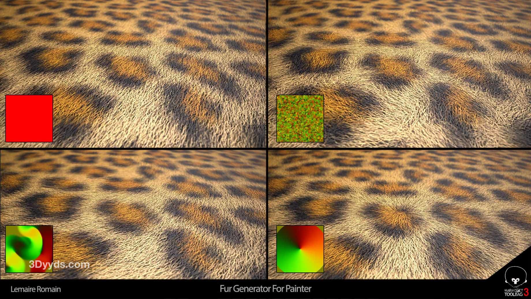 Substance Painter 毛发生成器。该包允许用户为 3D 动物和其他类型的项目生成毛皮纹理