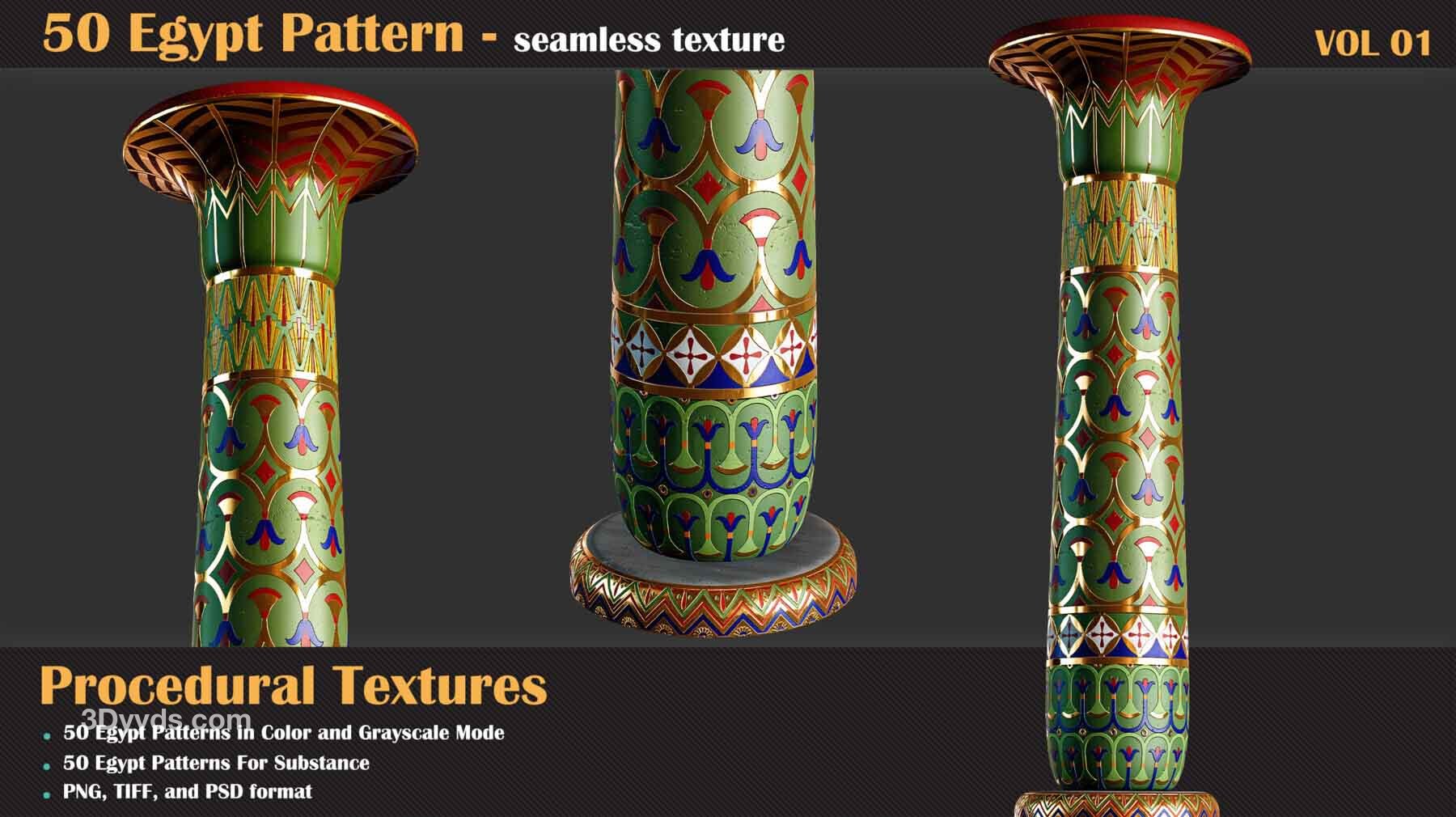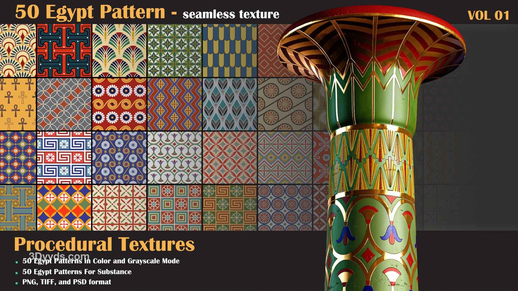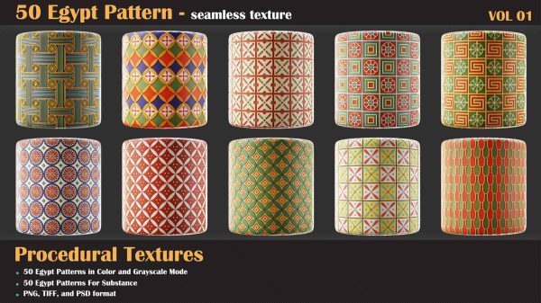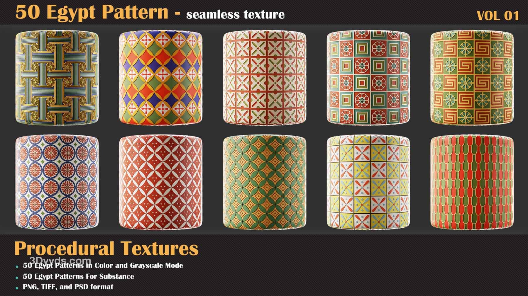 我们为您收集了 50 个埃及图案在一个包裹中。在这里,您可以找到简单和复杂的埃及风格模式,您可以在您的项目中使用它们。您可以在不同的工作流程和软件中使用这些映射作为基础或主要模式。 您将获得 :