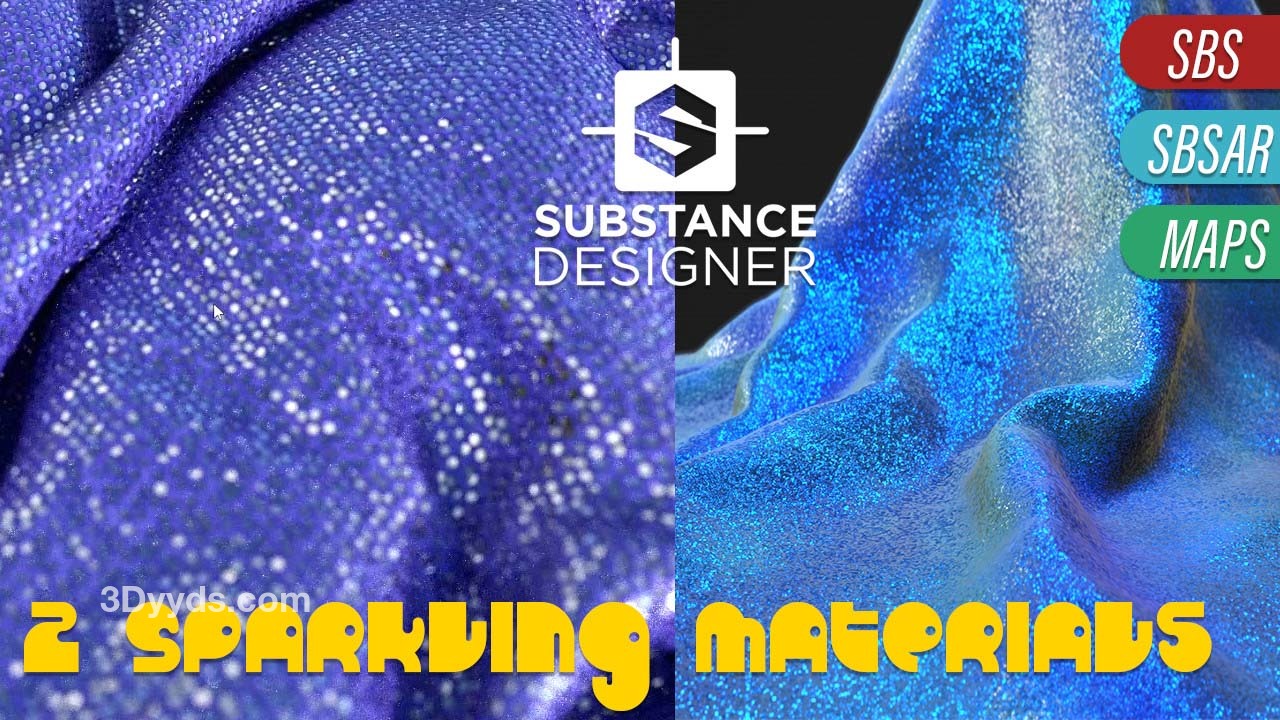 2个Glow/Sparkling 程序材质。适合用于一些迷人的衣服。 :) - 包括 2 个 SBS 项目; - 导出 2 组 EXR 4K 纹理; - 2 个 SBSAR,部分控制器暴露; OBS : 这个版本的闪闪发光的材质在直接使用贴图到着色器中效果很好,特别是法线贴图。效果很好的一件事是使用更高的法线值以获得更强的效果。甚至尝试使用 Sparkles 的法线贴图到位移节点。(是的,我知道)但在视觉上效果很好