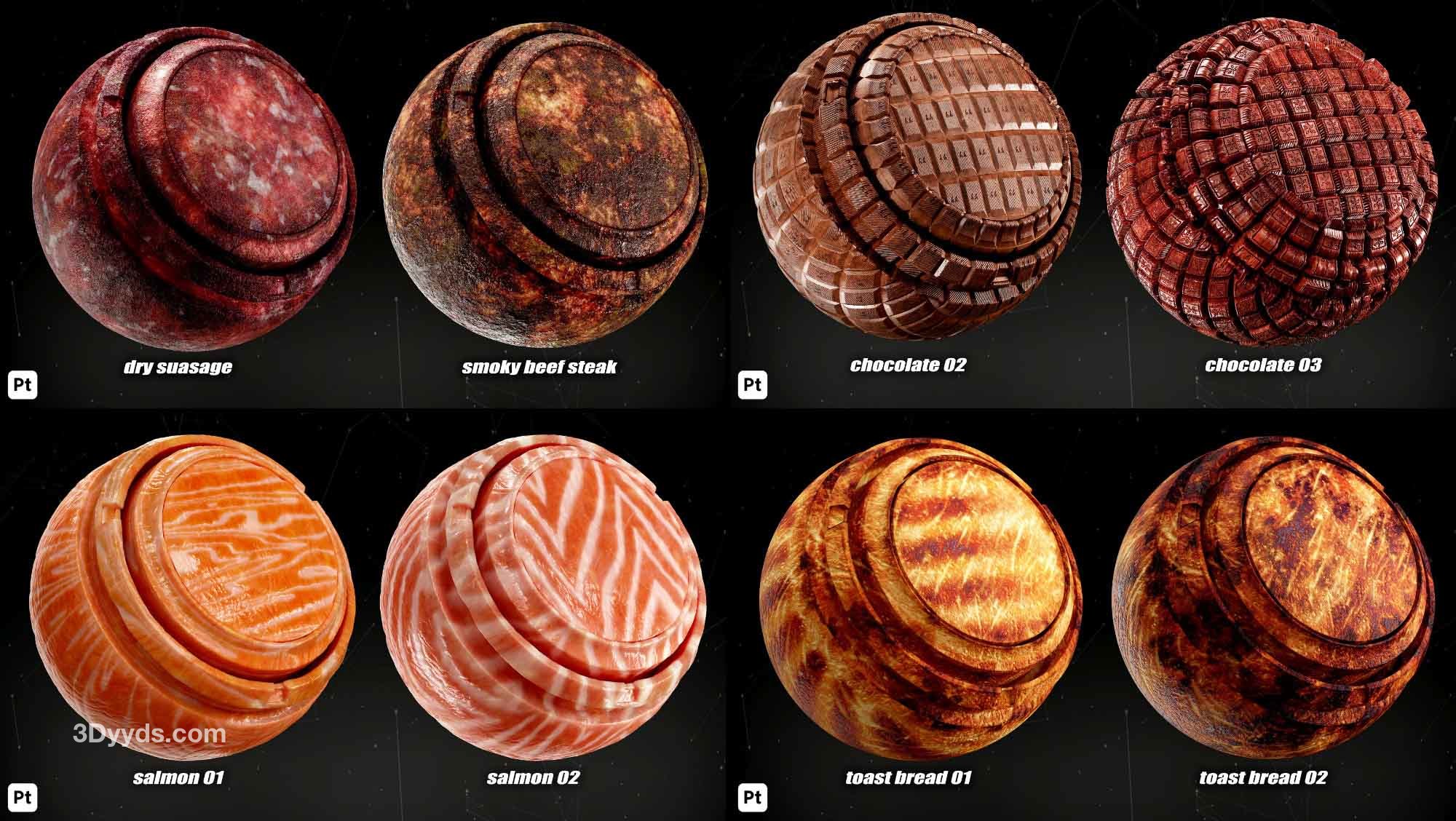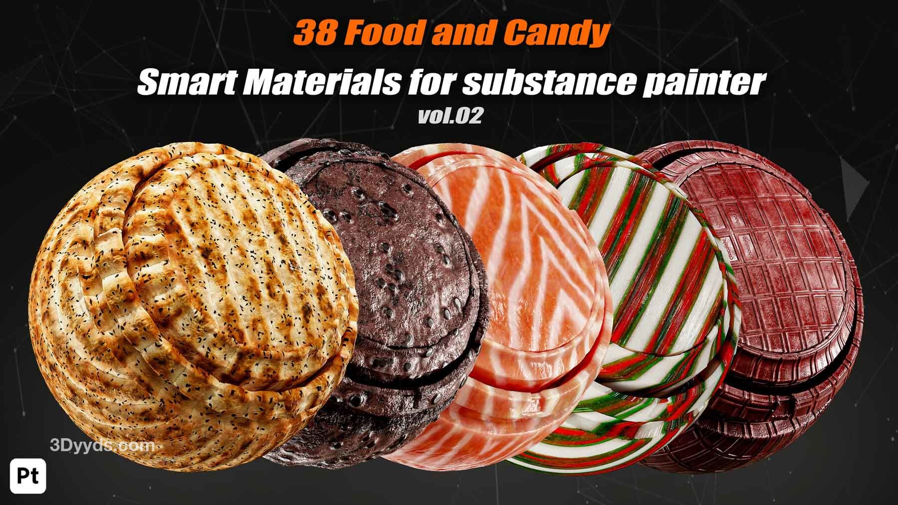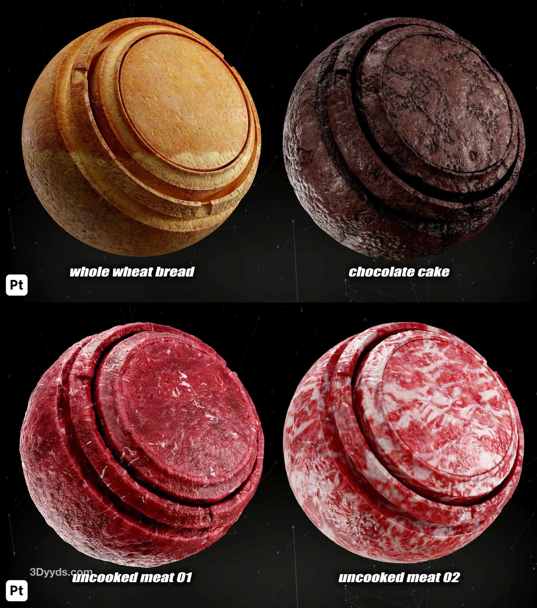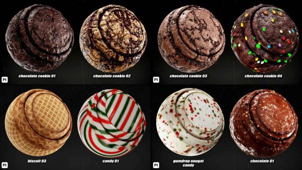 本产品包括 38 种 Substance Painter 的食品智能材料