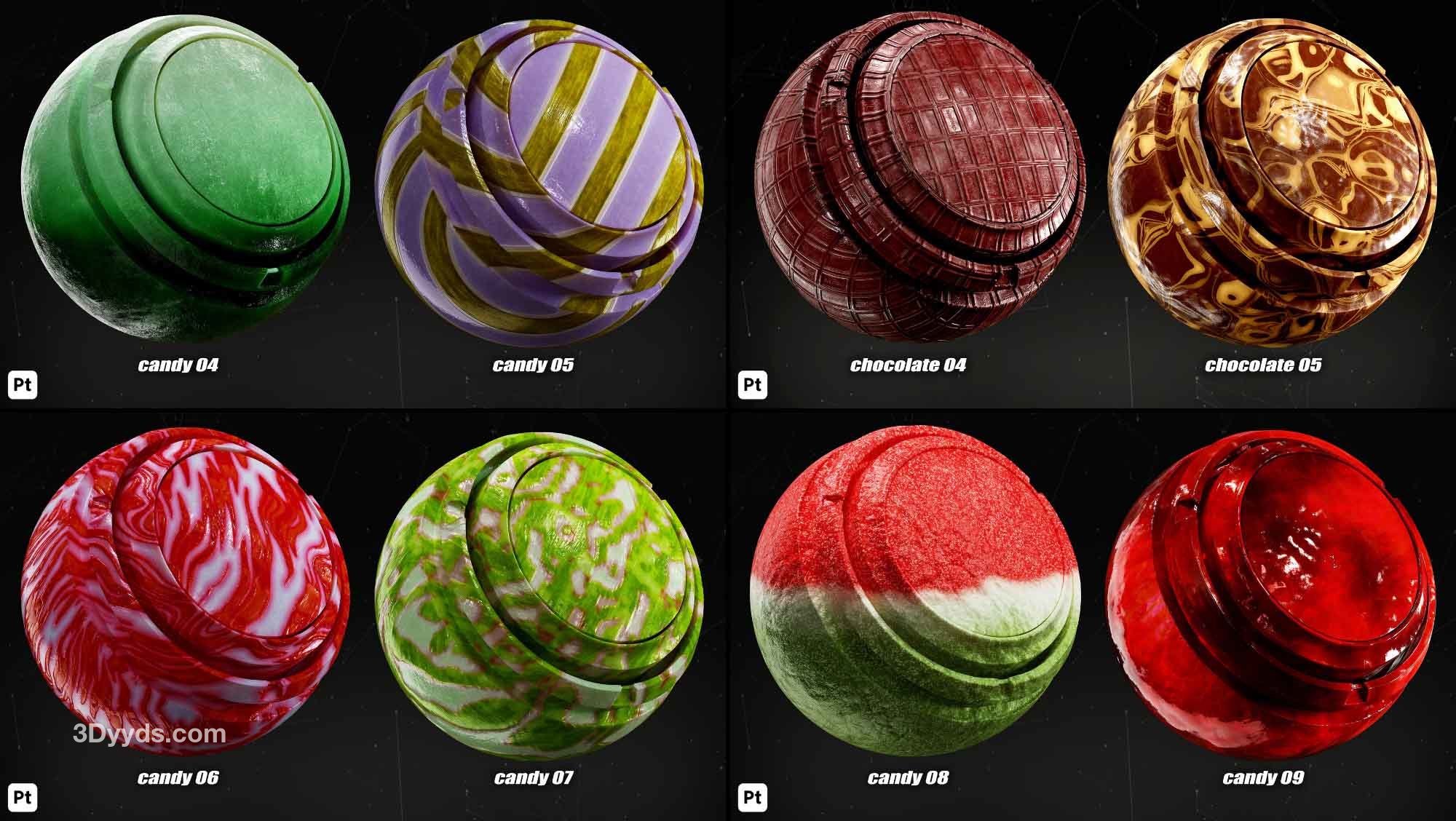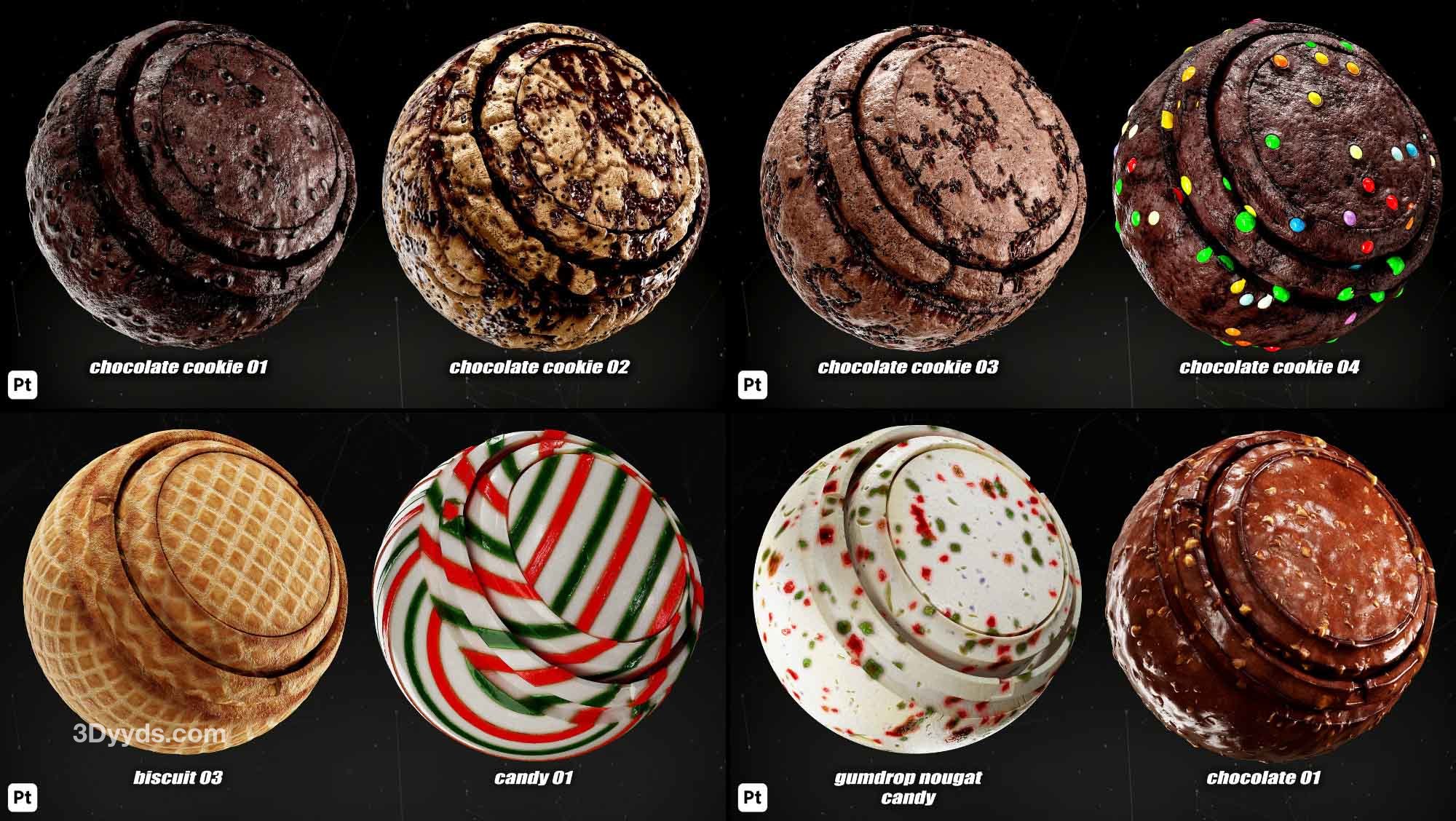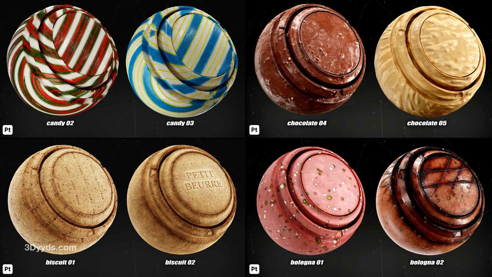 本产品包括 38 种 Substance Painter 的食品智能材料
