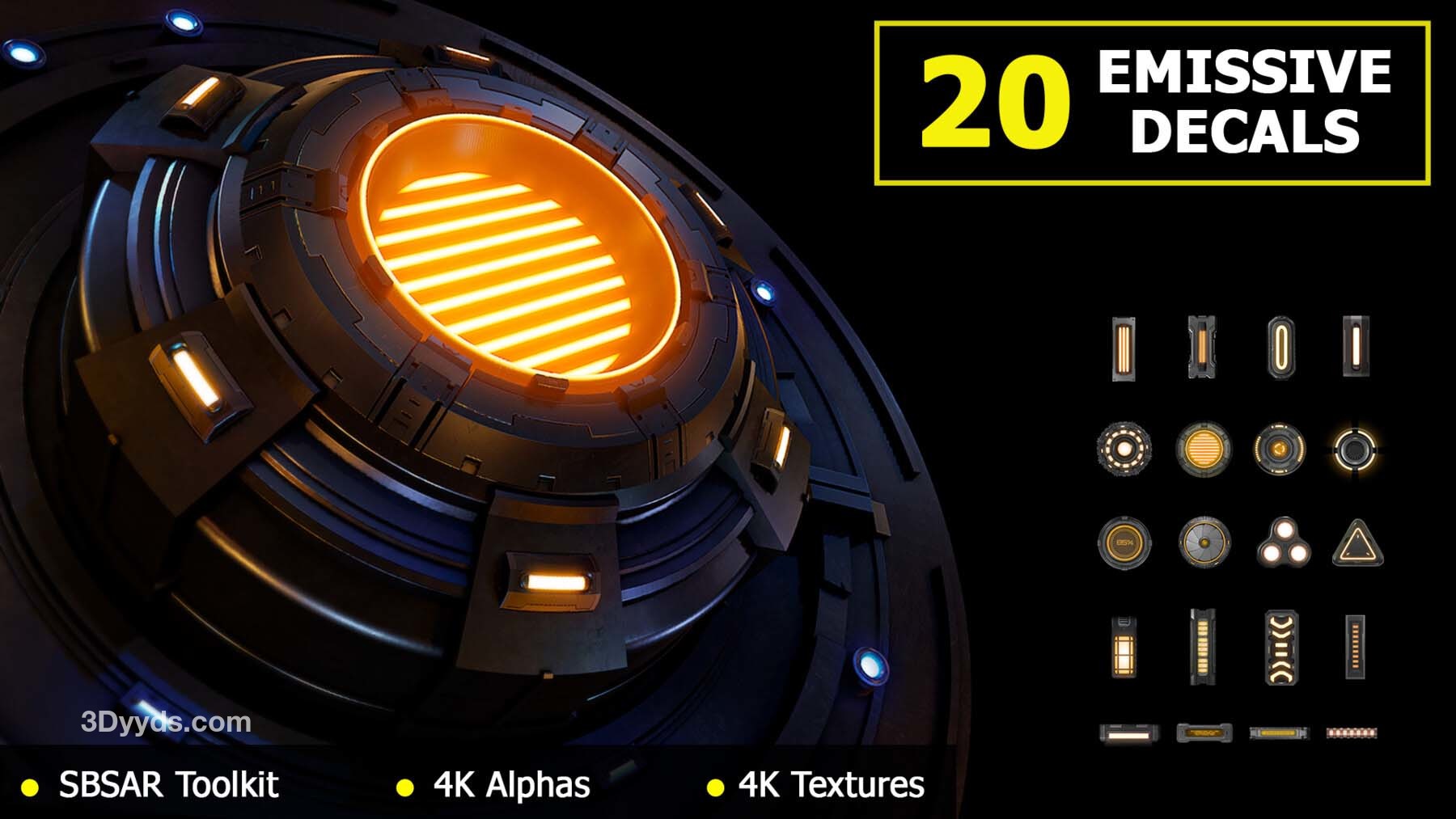 Emissive Decal Pack 提供了一系列令人惊叹的完全程序化的高质量硬表面贴花,专为为您的 3D 设计带来迷人的灯光效果而设计。将这些精心设计的贴花应用到您的表面,无论您是在进行环境设计还是道具设计,都可以毫不费力地提升您的项目。