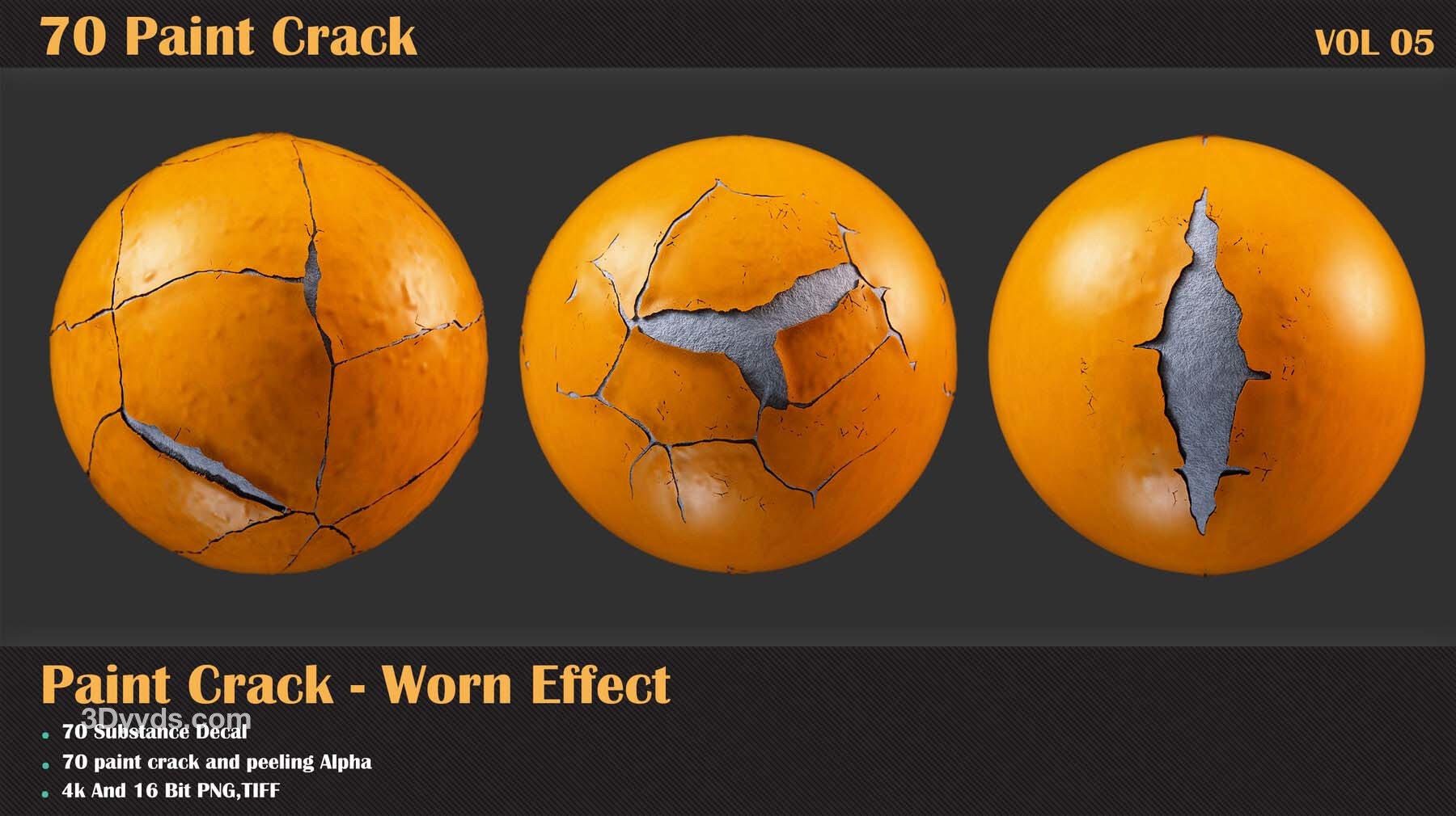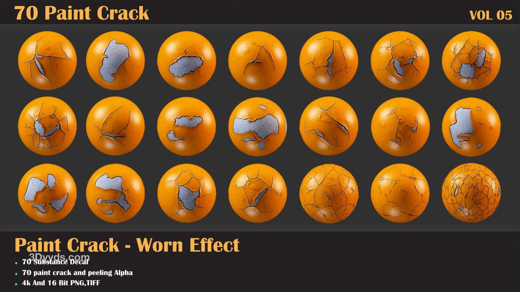 60 个单色 + 10 个 TIFF 16 位无缝油漆剥落效果纹理