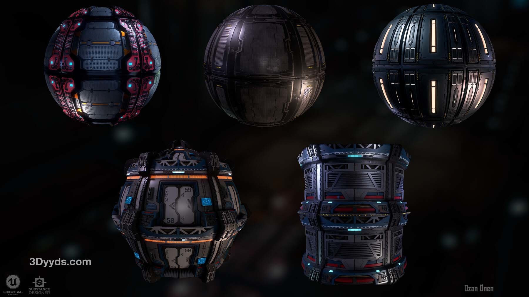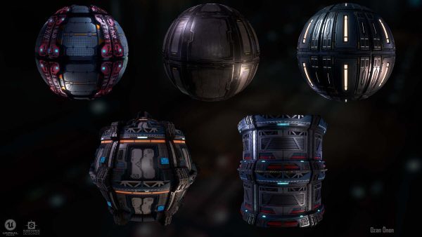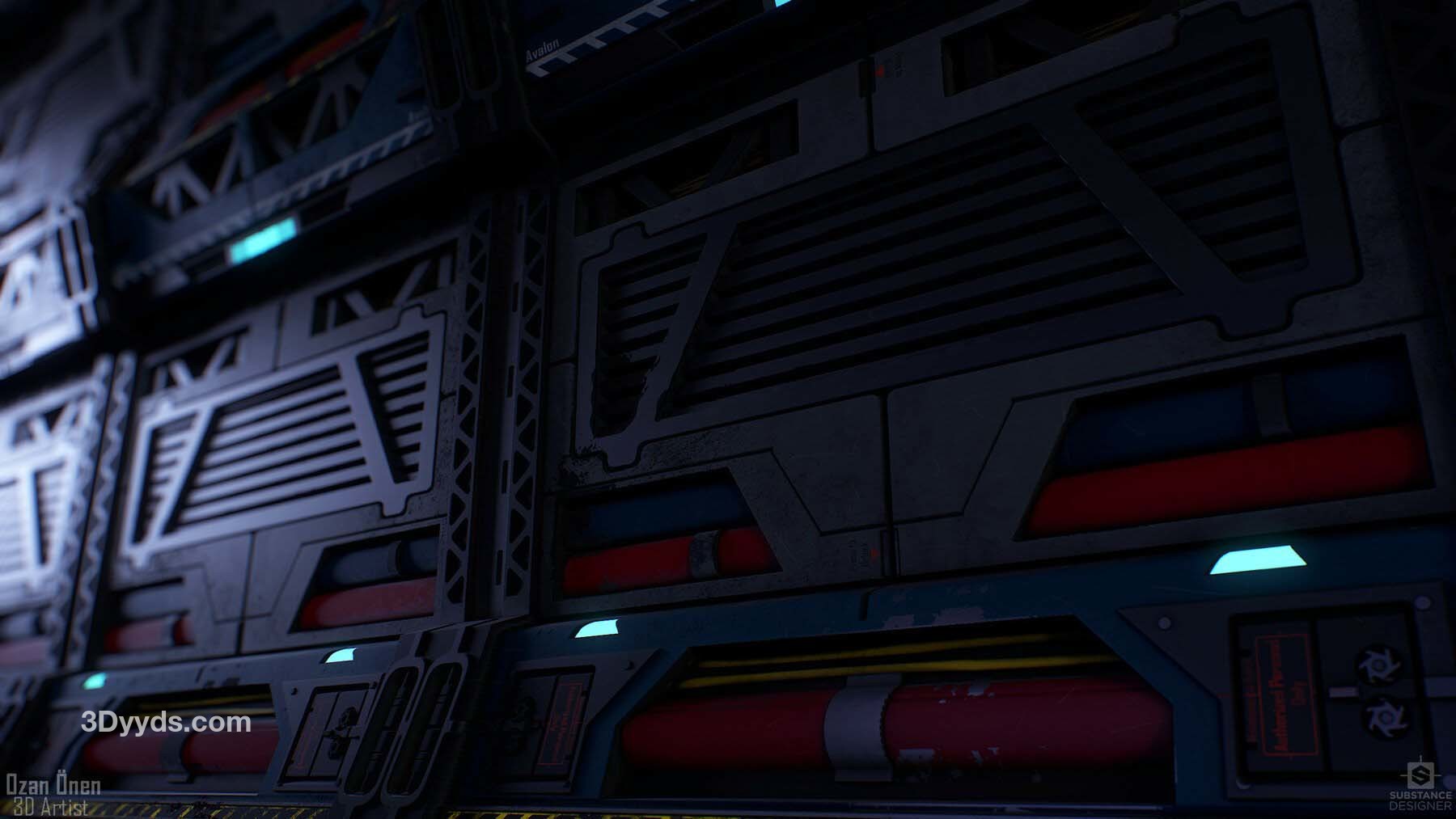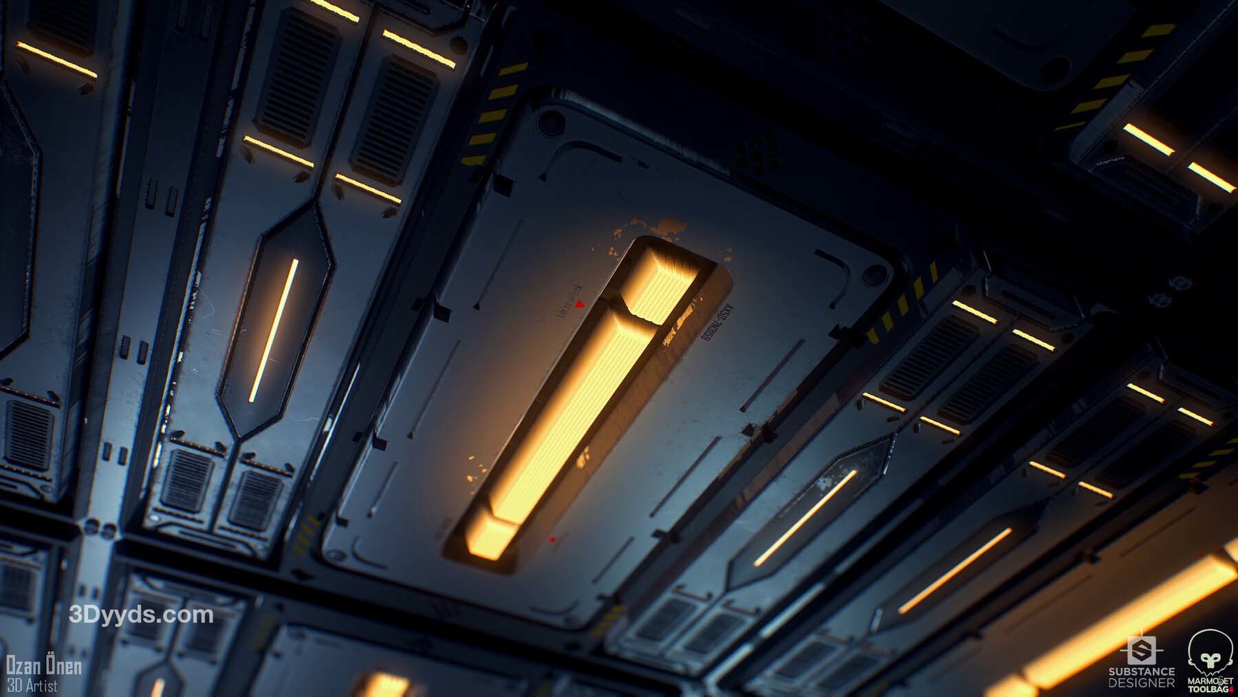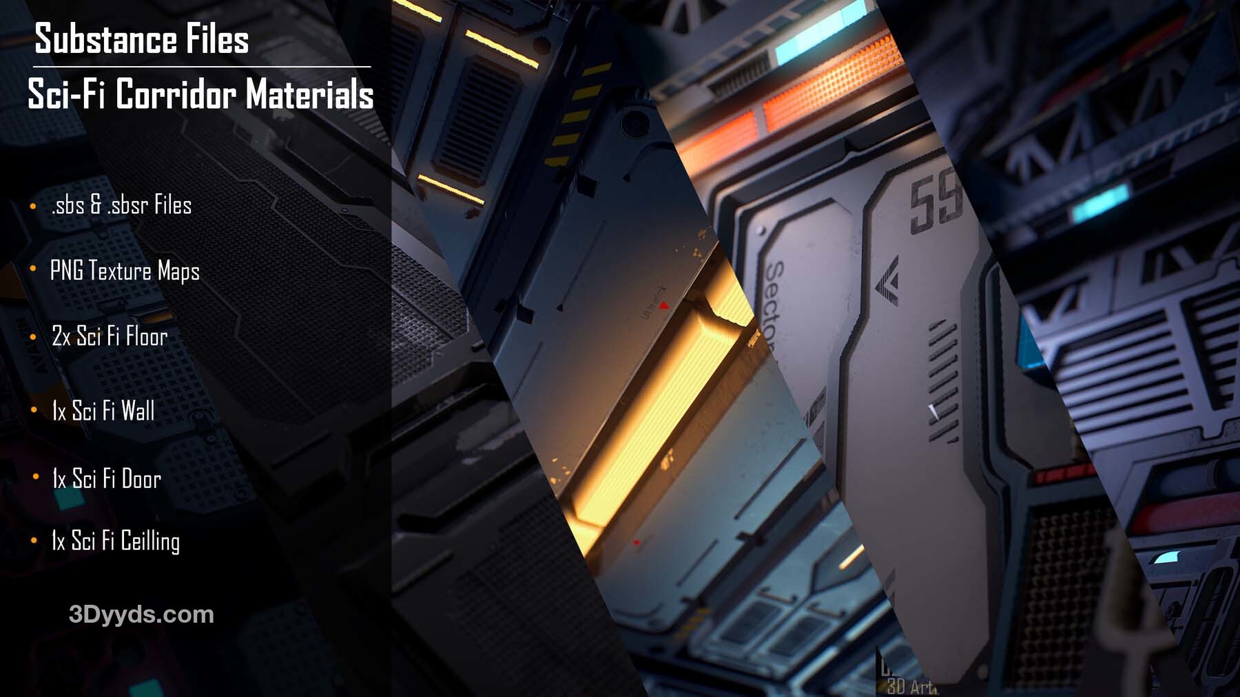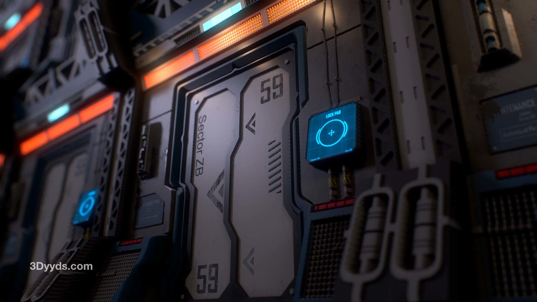 包含在 “Sci-Fi Corridor” 场景中创建和使用的所有 5 个 Substance Designer 材质,这些材质是在 Unreal Engine 中制作的