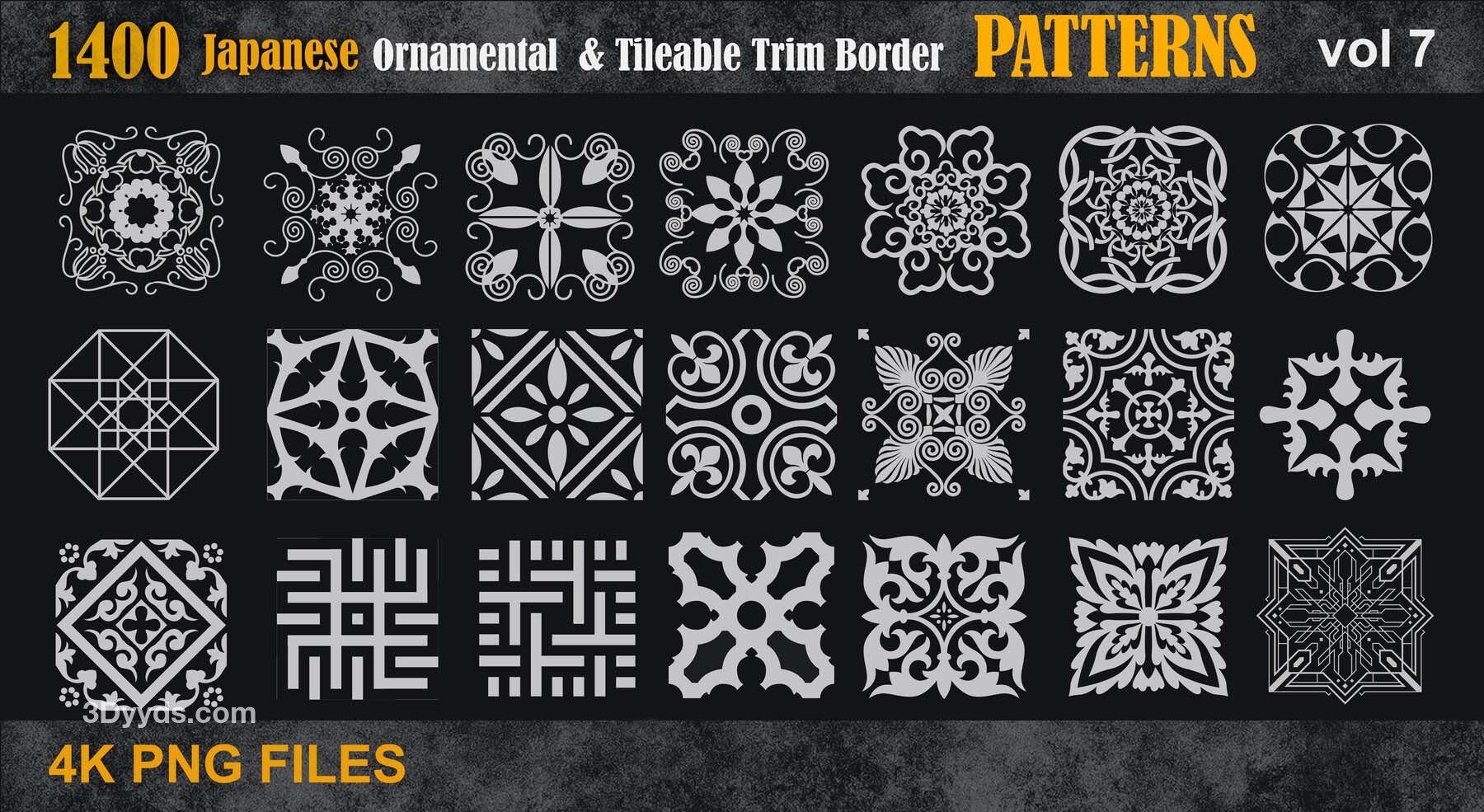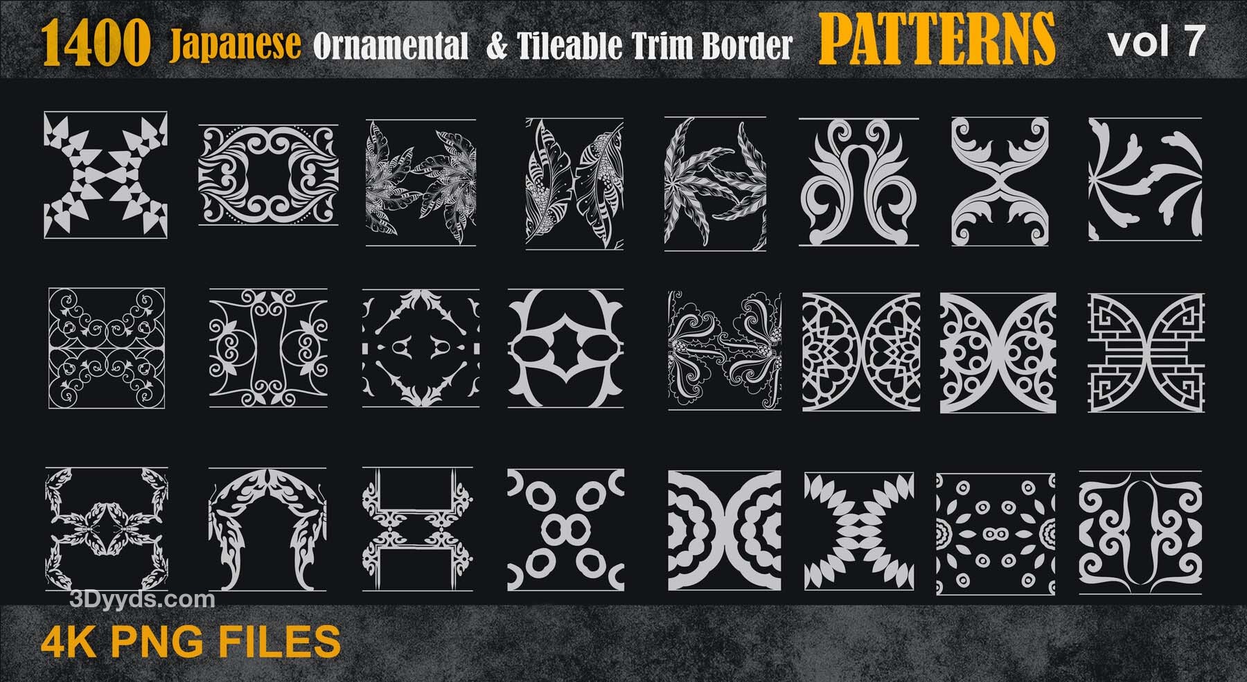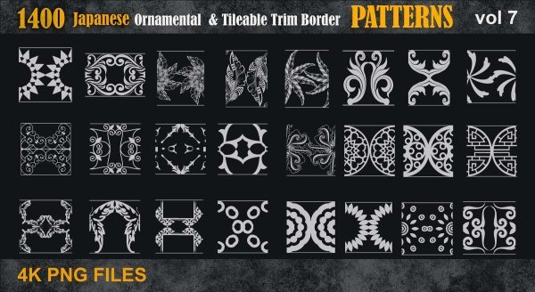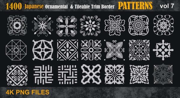 这是一套1400个日本装饰和可平铺的装饰边框各种4k图案