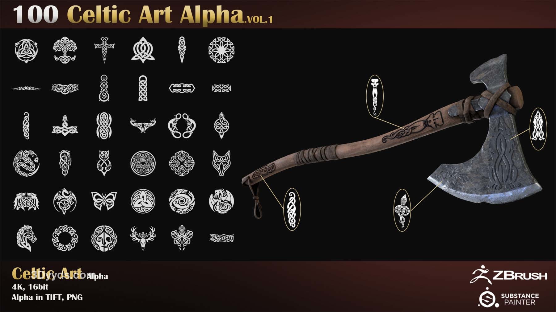 sp材质309-100张图腾图案纹理凯尔特风装饰Alpha贴图
