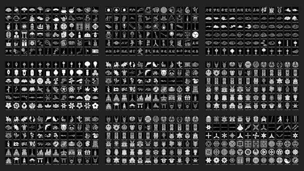 灯笼、窗棂格纹、佛塔、神社鸟居、青花瓷纹