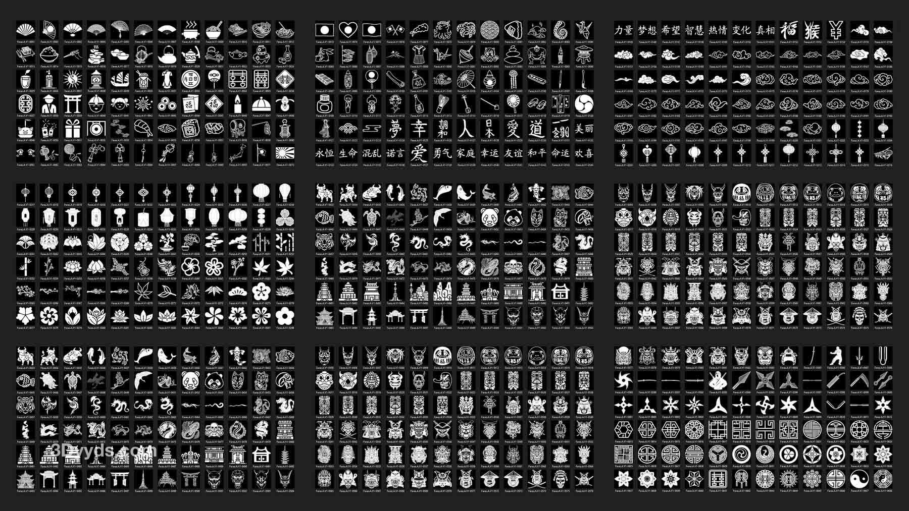 中国结、如意纹、雷纹、祥云纹、笼目纹、阿拉伯藤蔓、佩斯利花纹