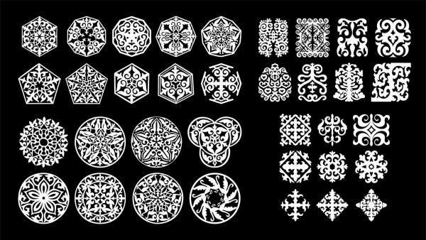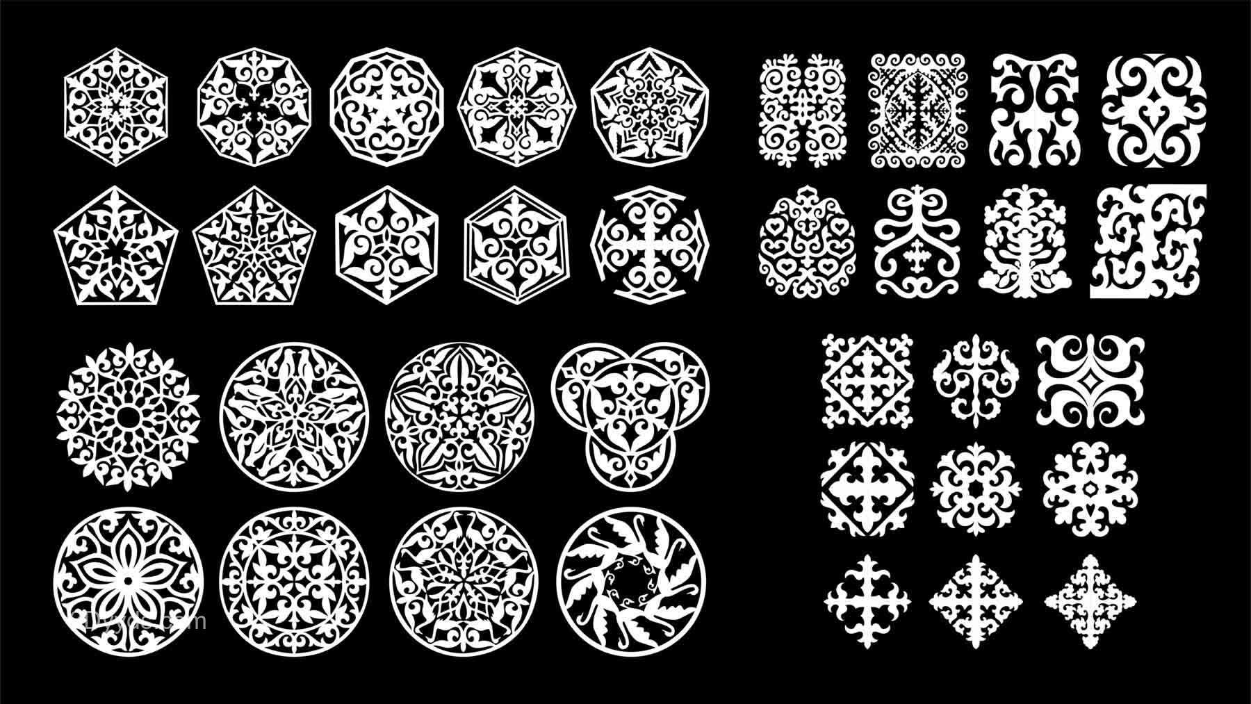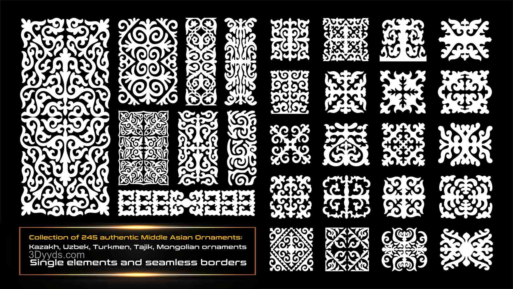 245种独特的装饰元素、图案和图案的集合,以邮编形式包装