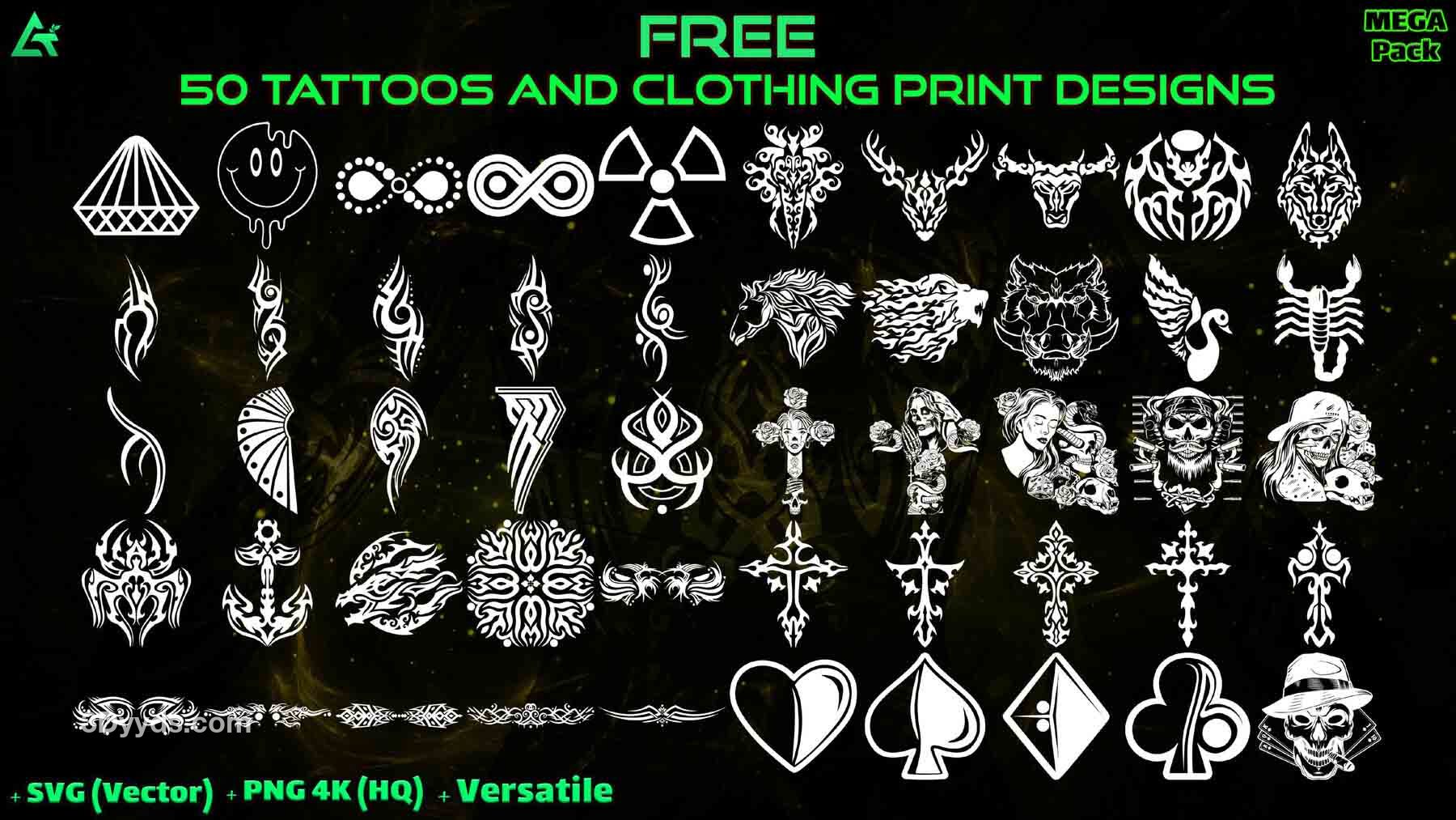 - 50 个手绘 Alpha 纹身和服装印刷设计是免费的