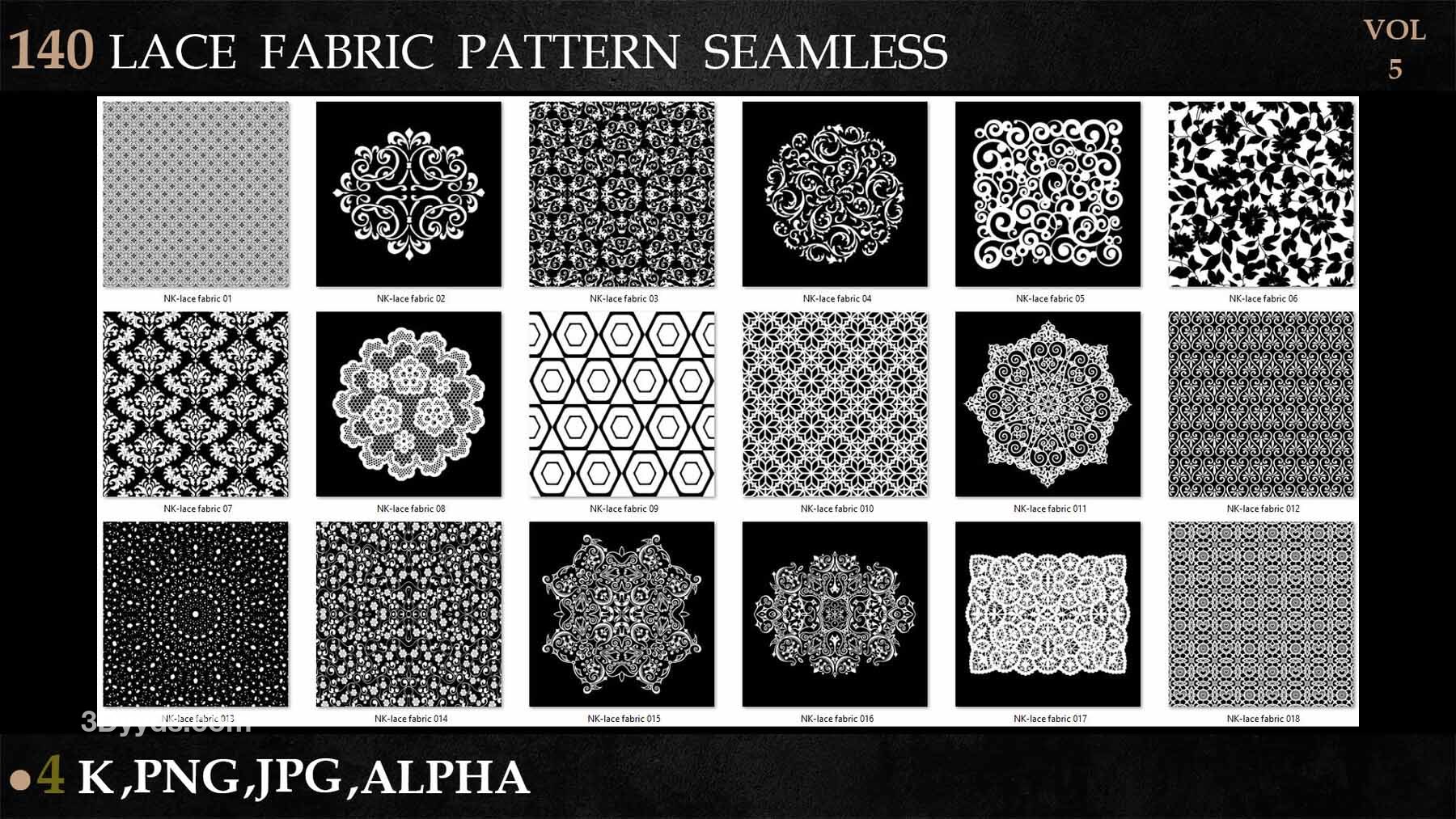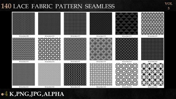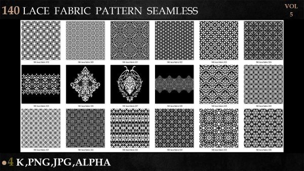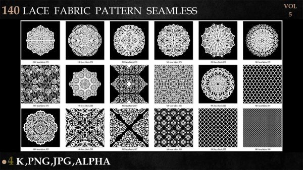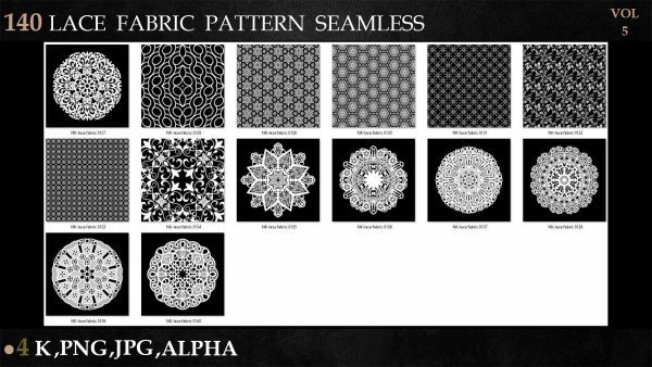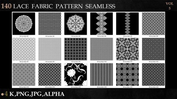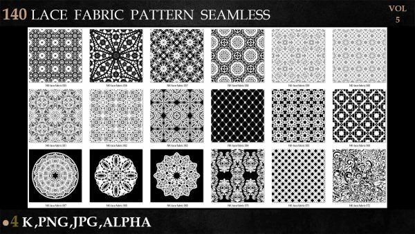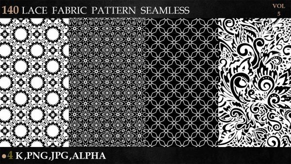 sp材质336-140款蕾丝布料花边面料花纹Alpha贴图4K无缝黑白