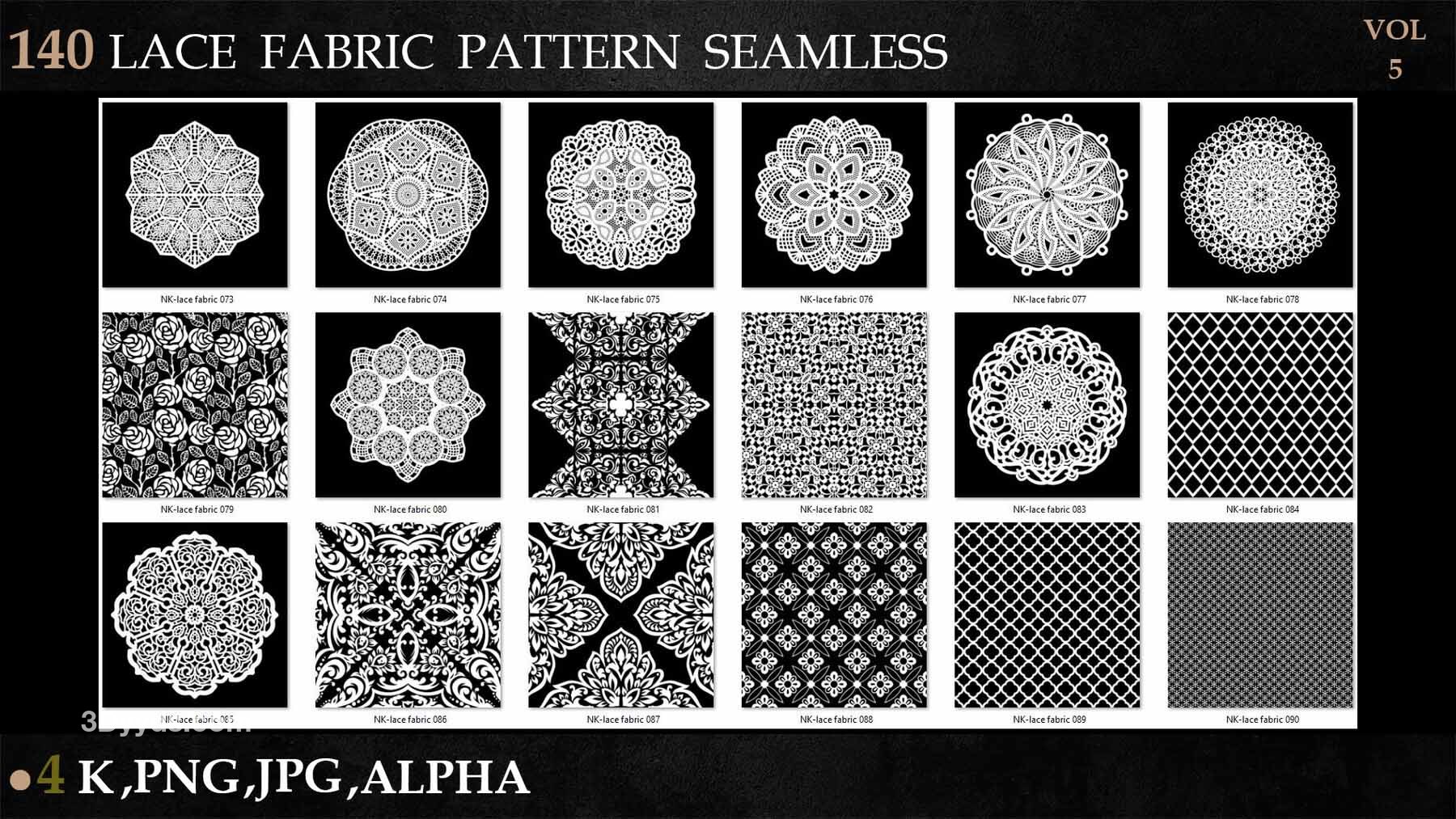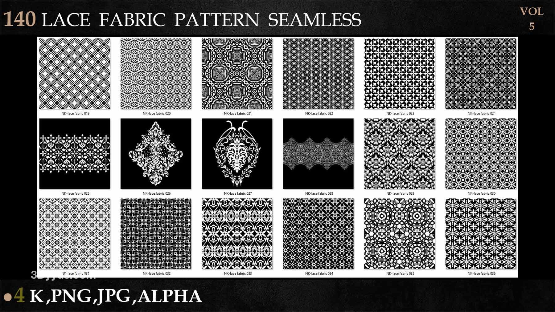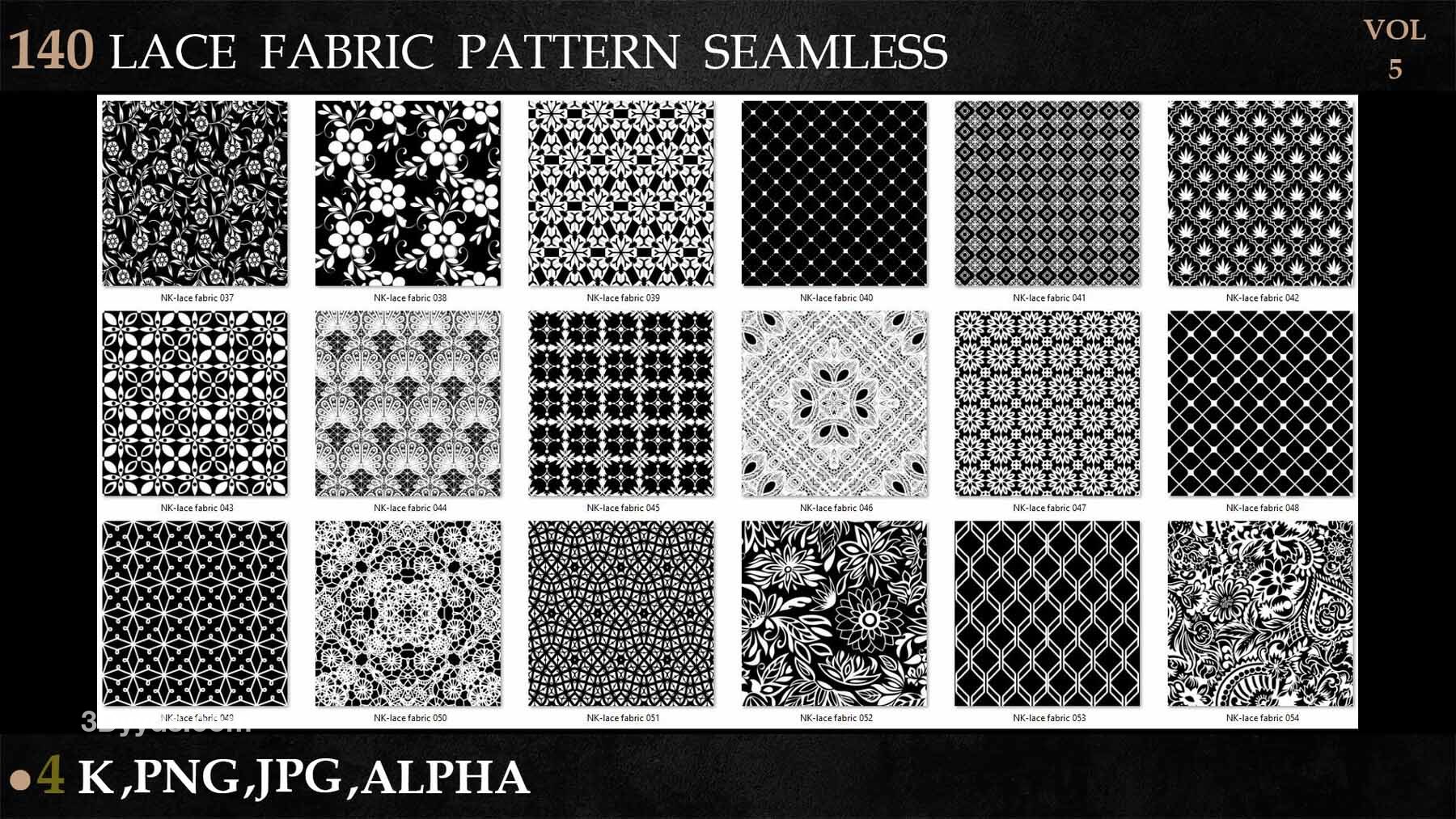 sp材质336-140款蕾丝布料花边面料花纹Alpha贴图4K无缝黑白
