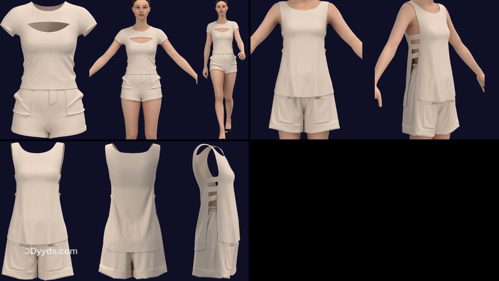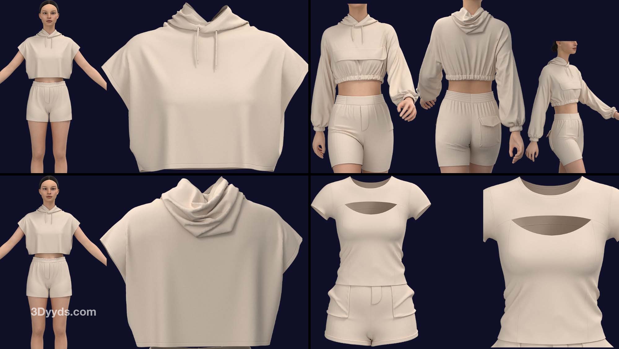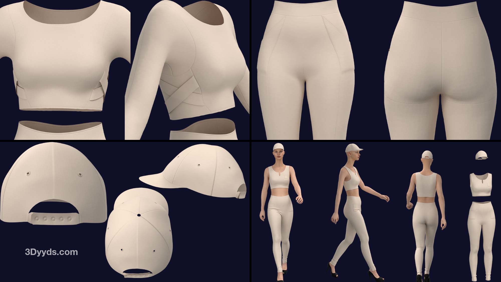 在这个包中,我们准备了 10 款基本款式的女式运动服(在 clo3d 版本 6.2.234 中设计):