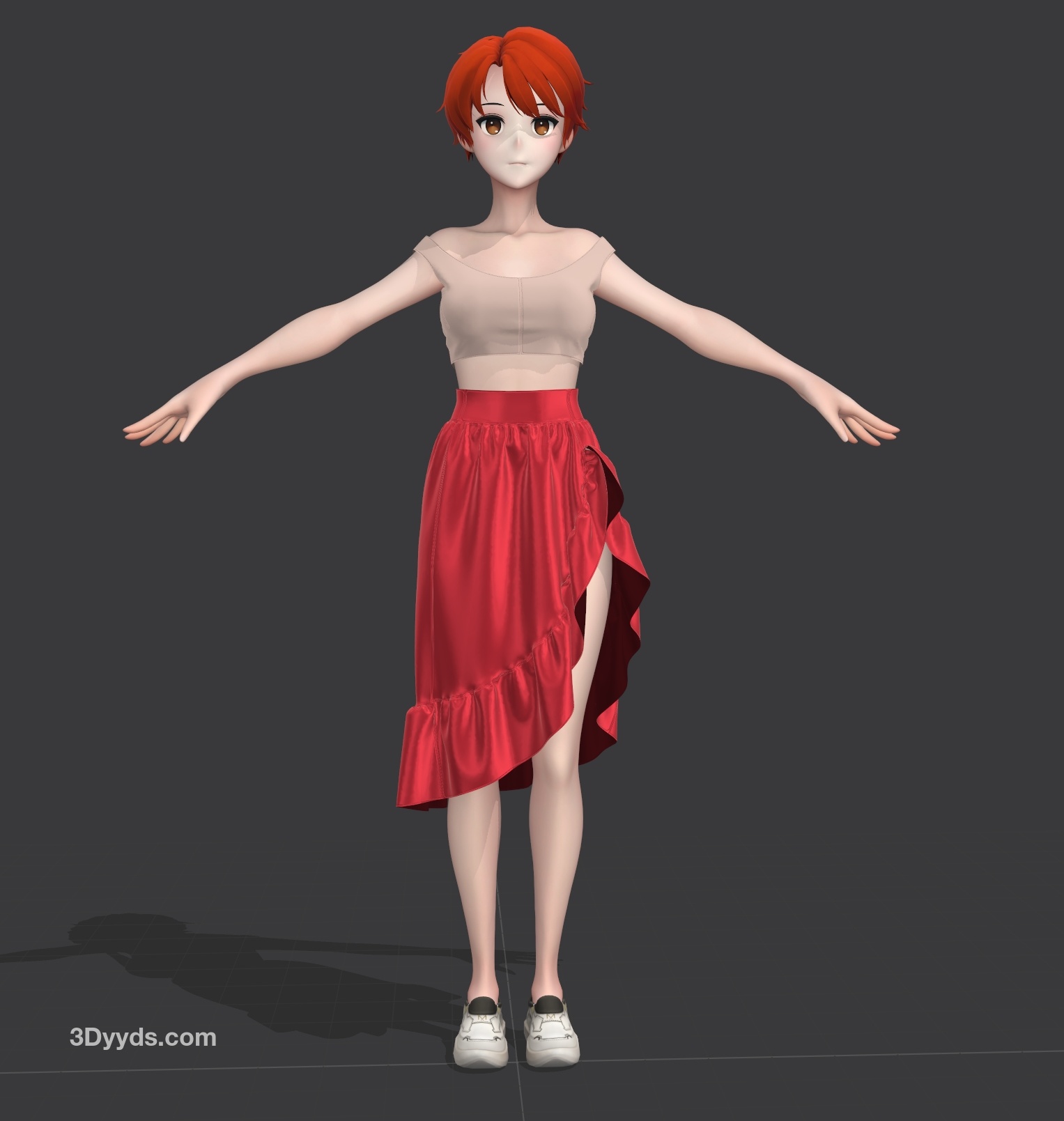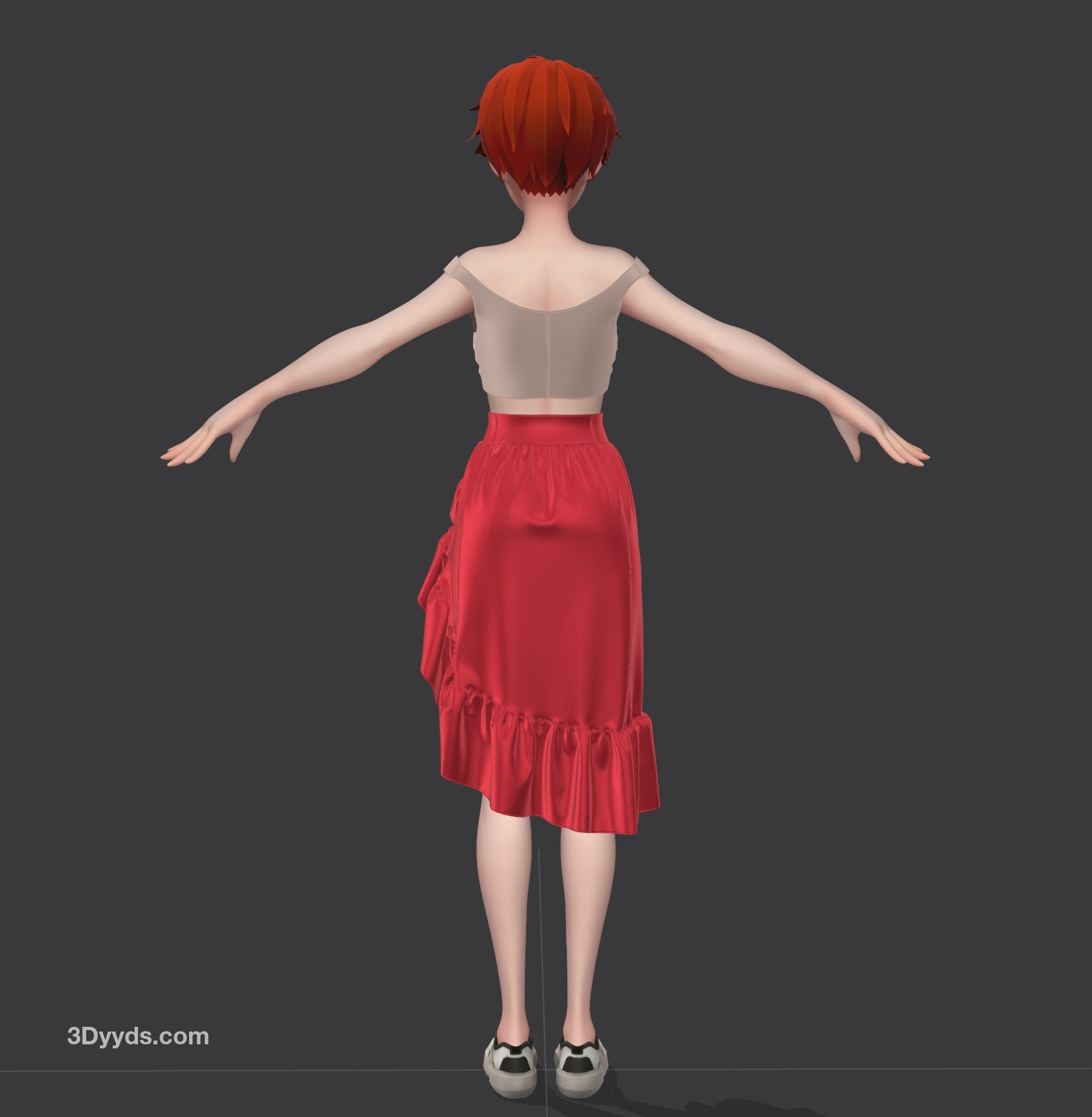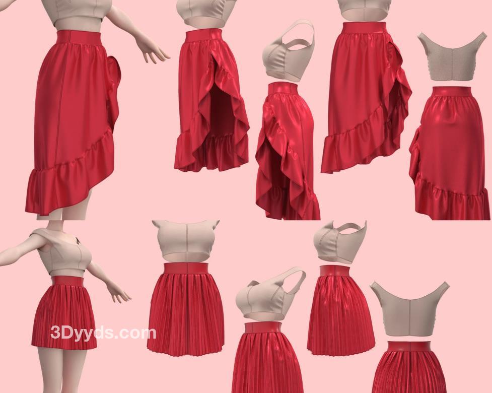 MD295可爱女孩花边裙子长裙背心Clo3d服装obj