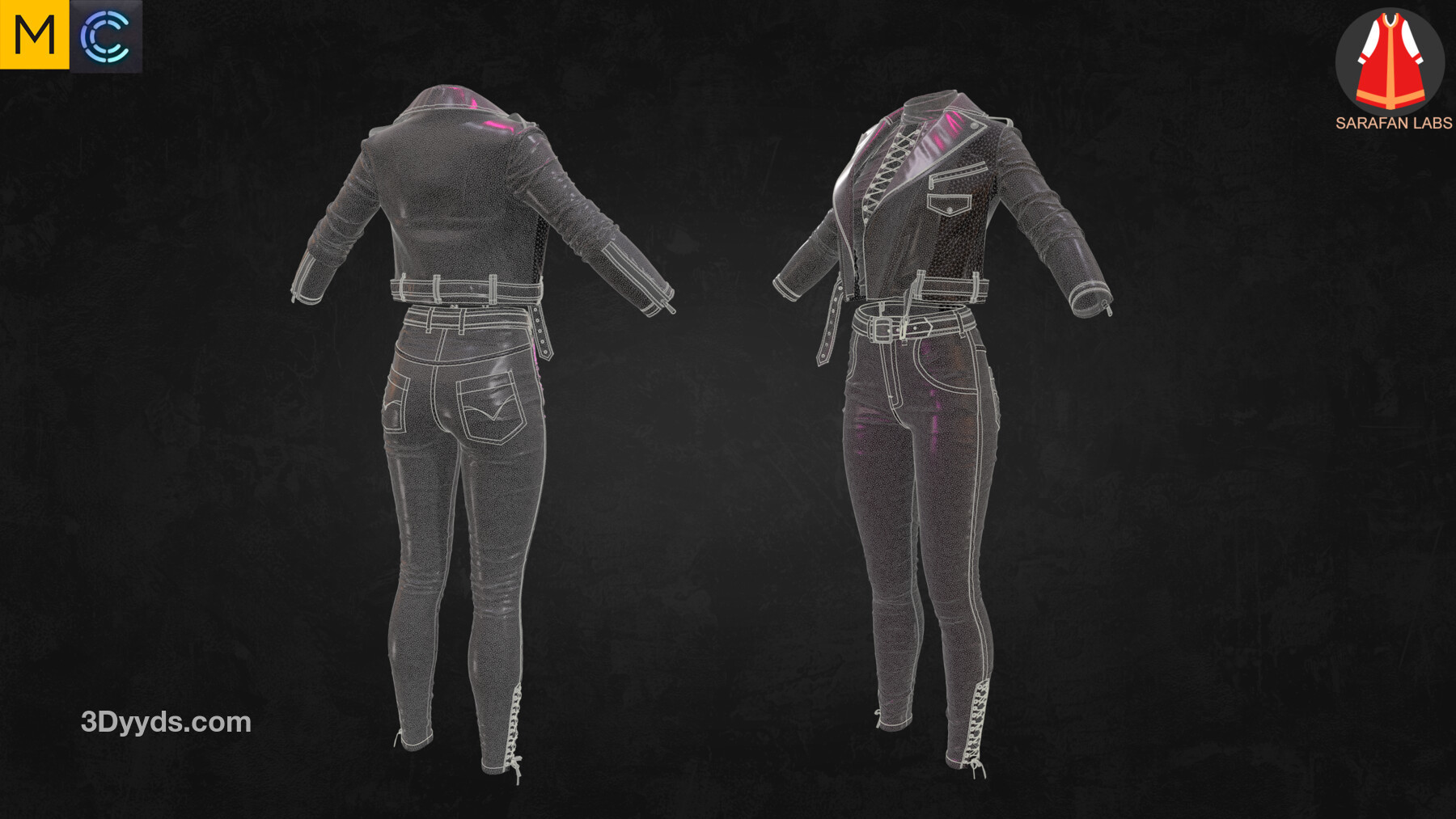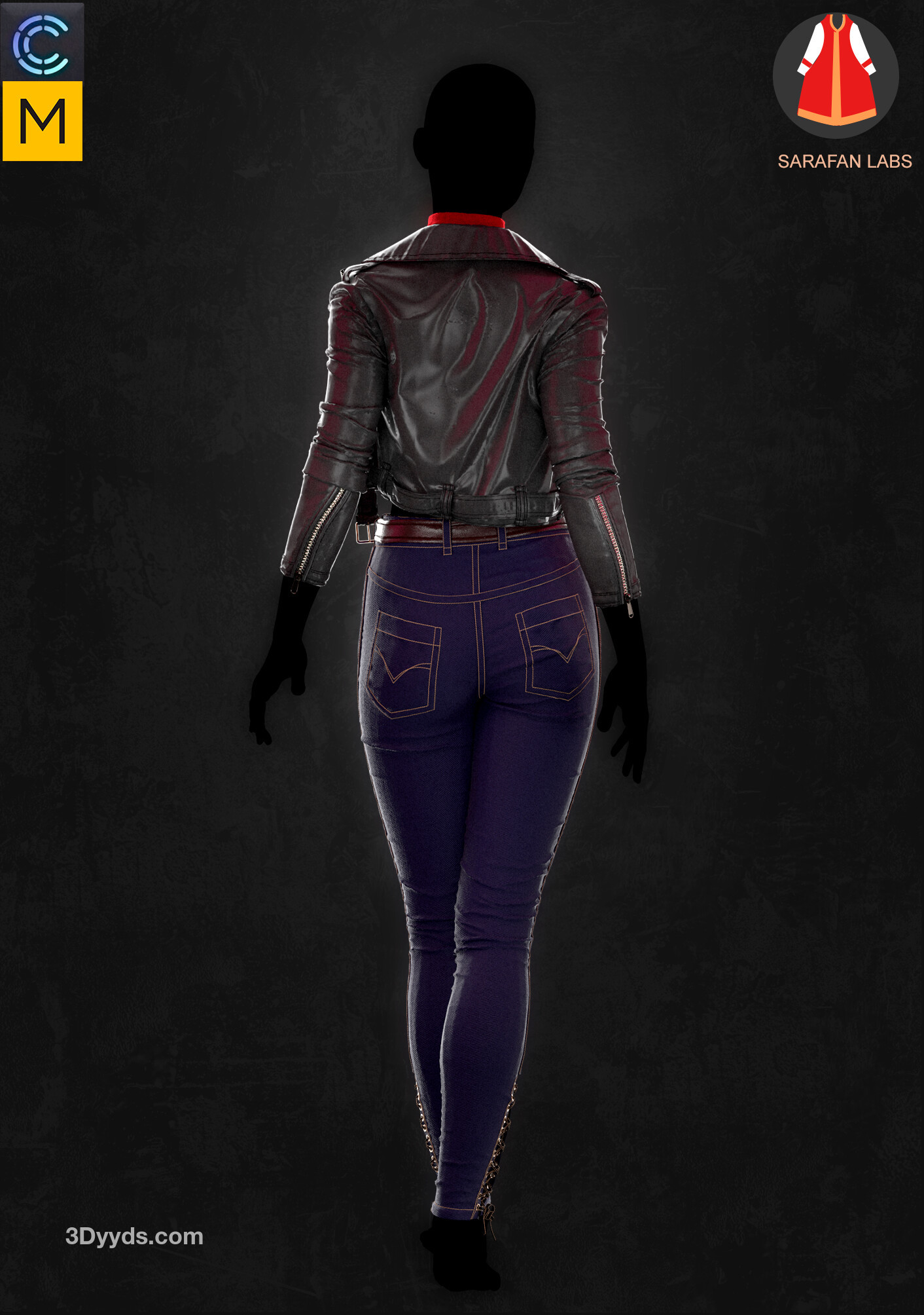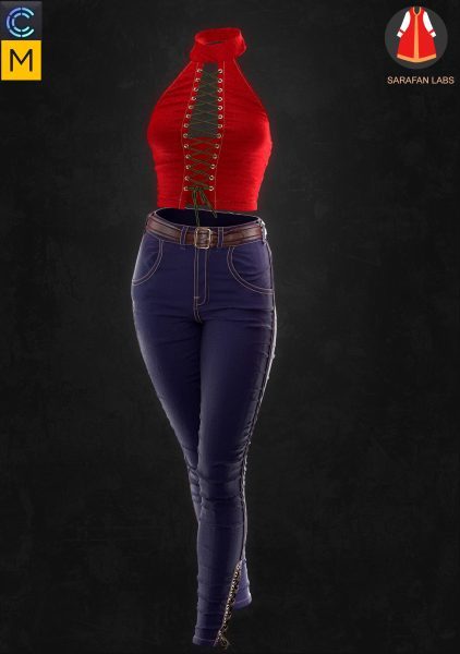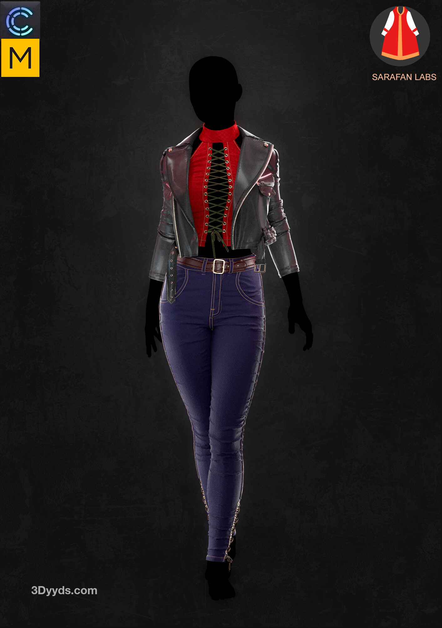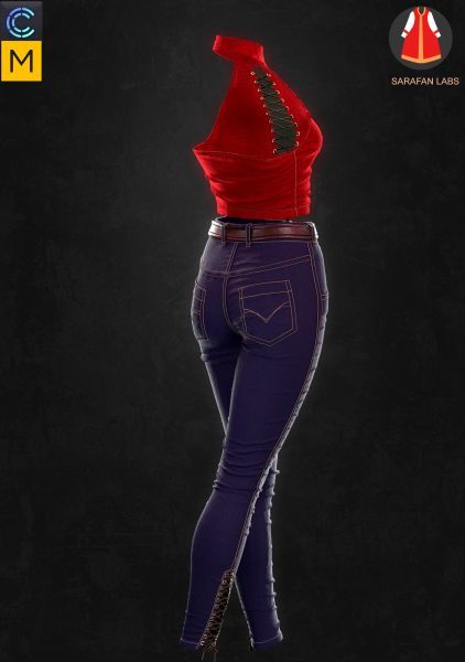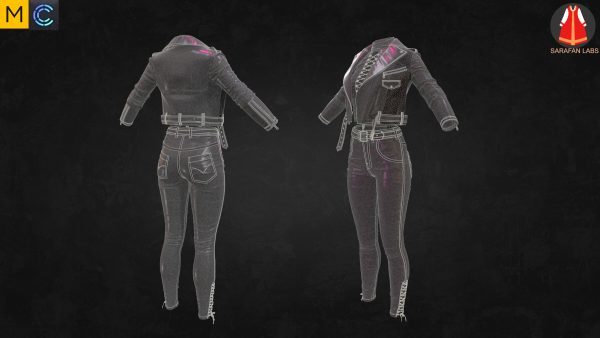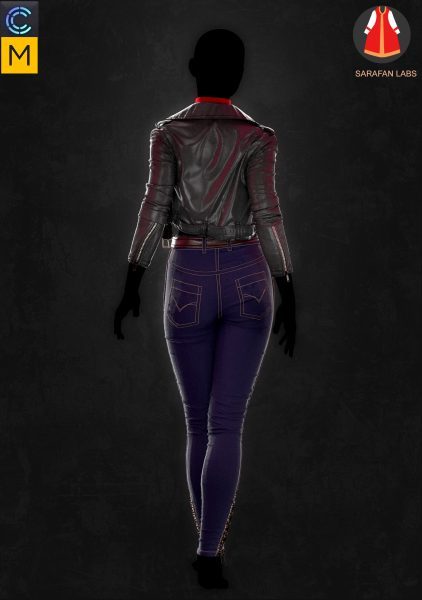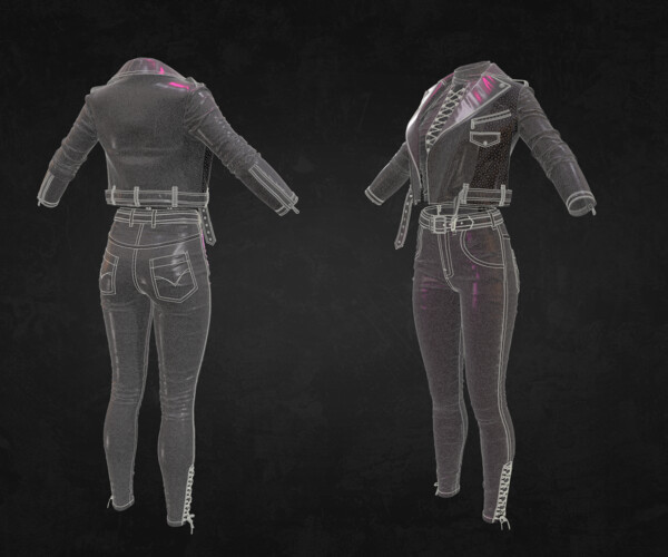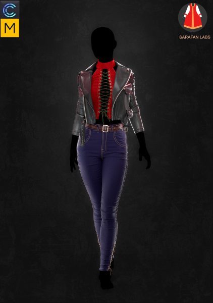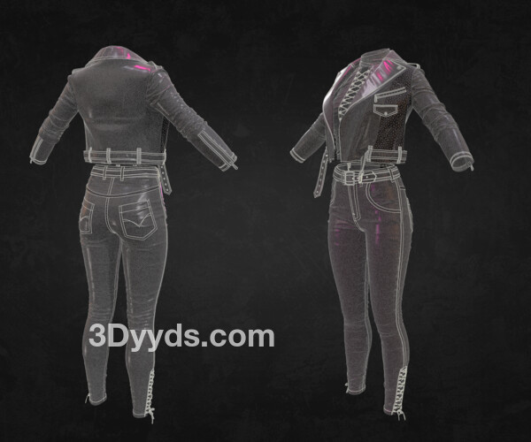MD299-CLO3D女性紧身仔长裤子皮夹克上衣服装3D模型zprj