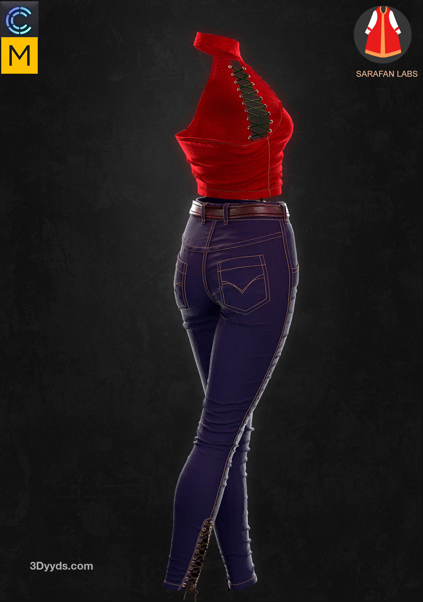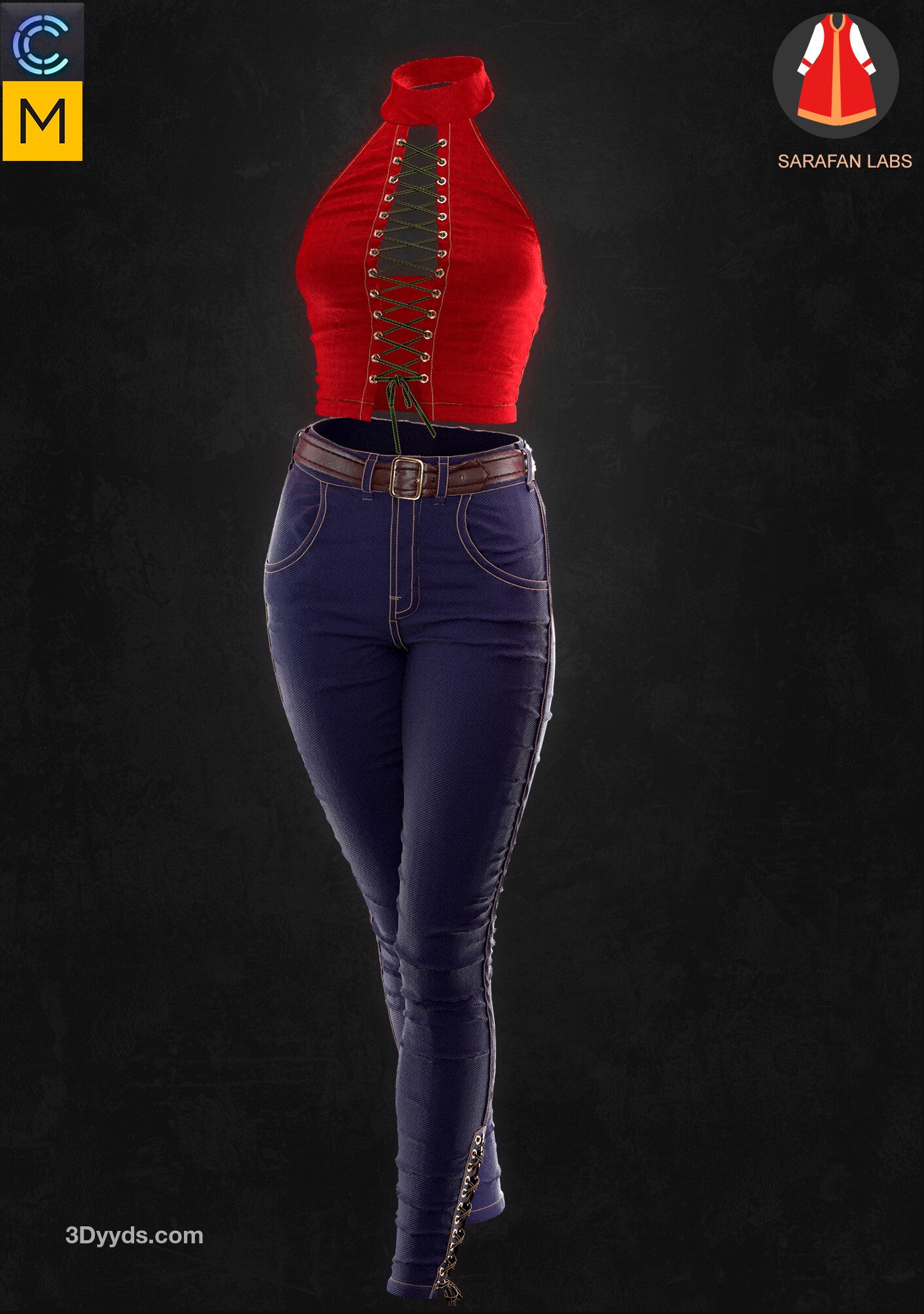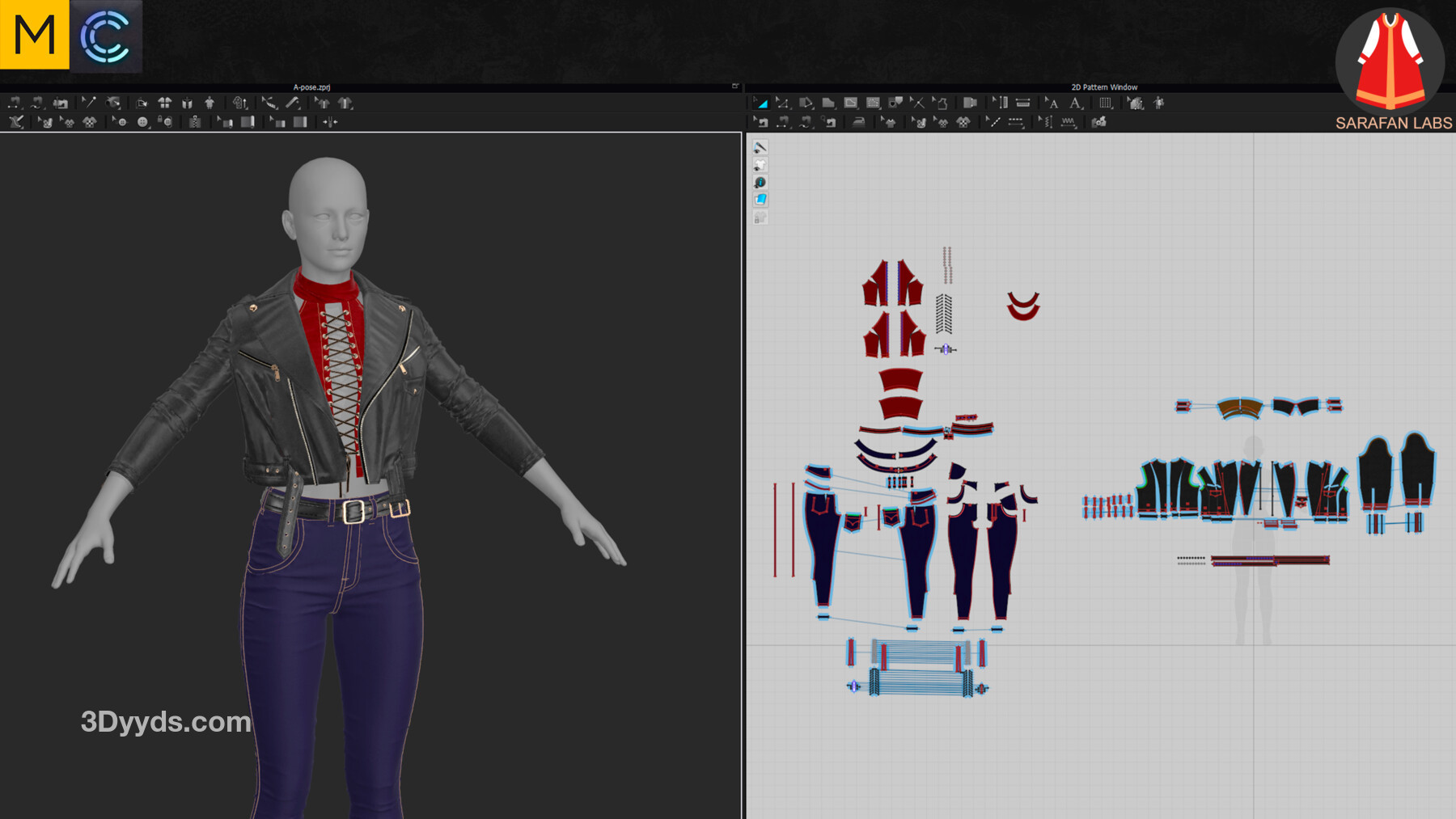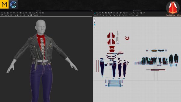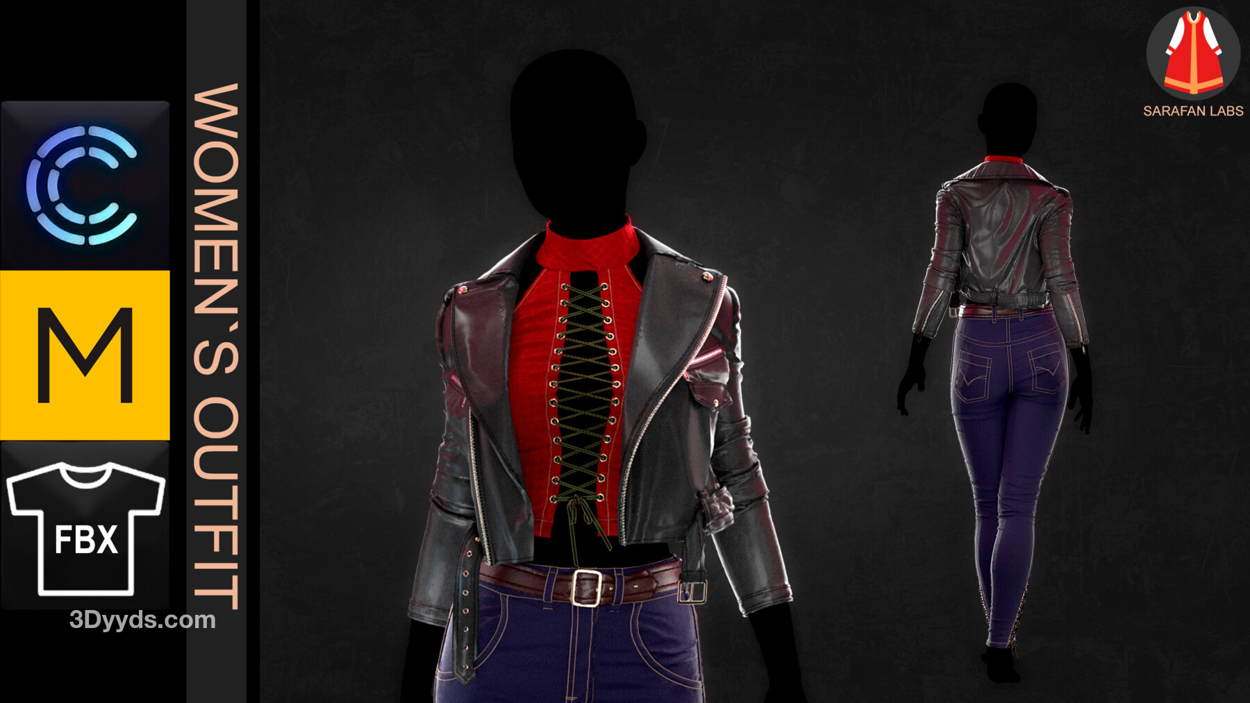 MD299-CLO3D女性紧身仔长裤子皮夹克上衣服装3D模型zprj