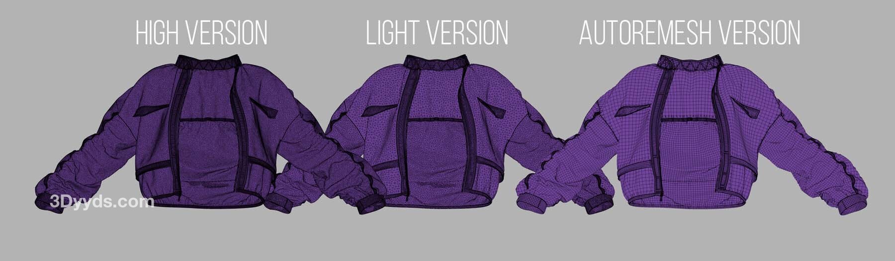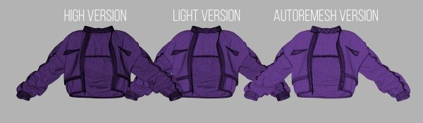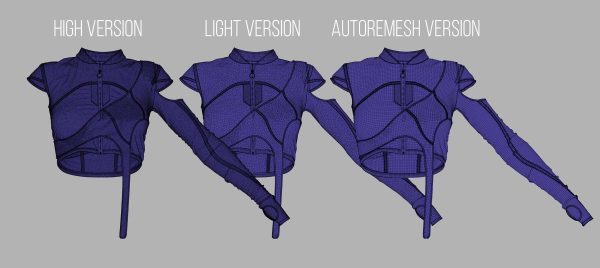 Autoremesh 版本,其中展开的 UV 仅用于选定项目(上衣、夹克、裤子)